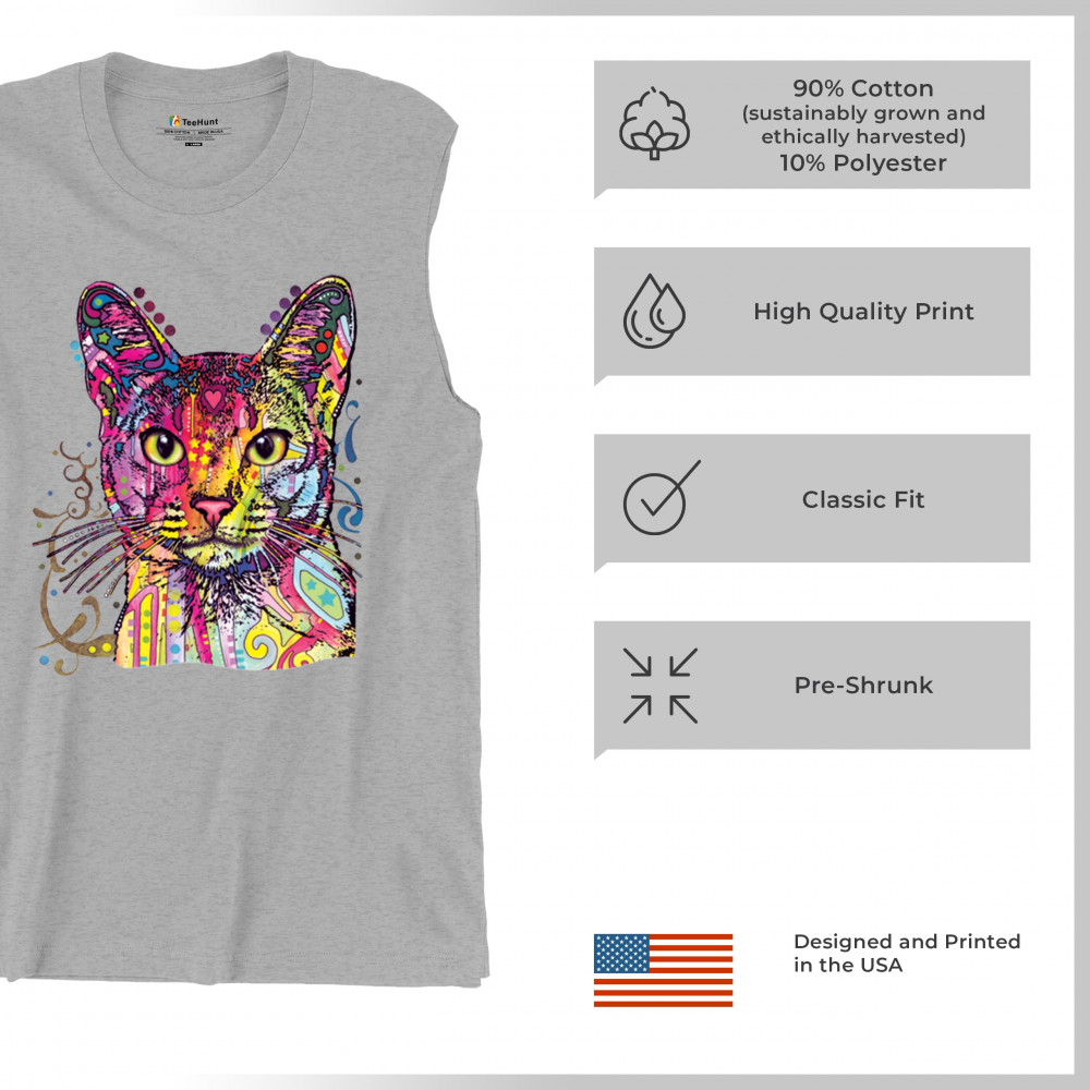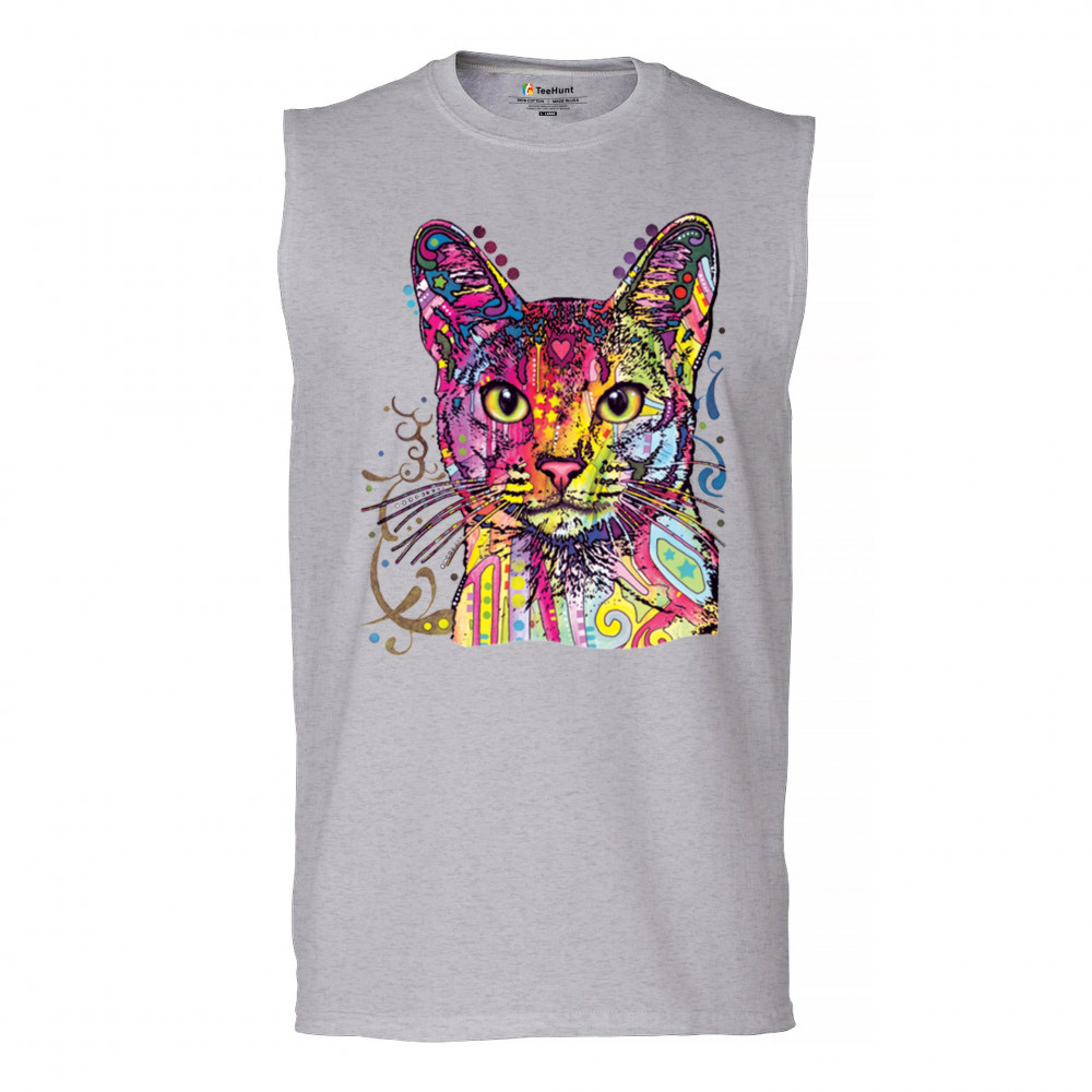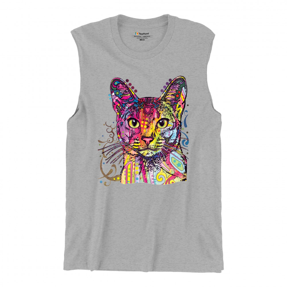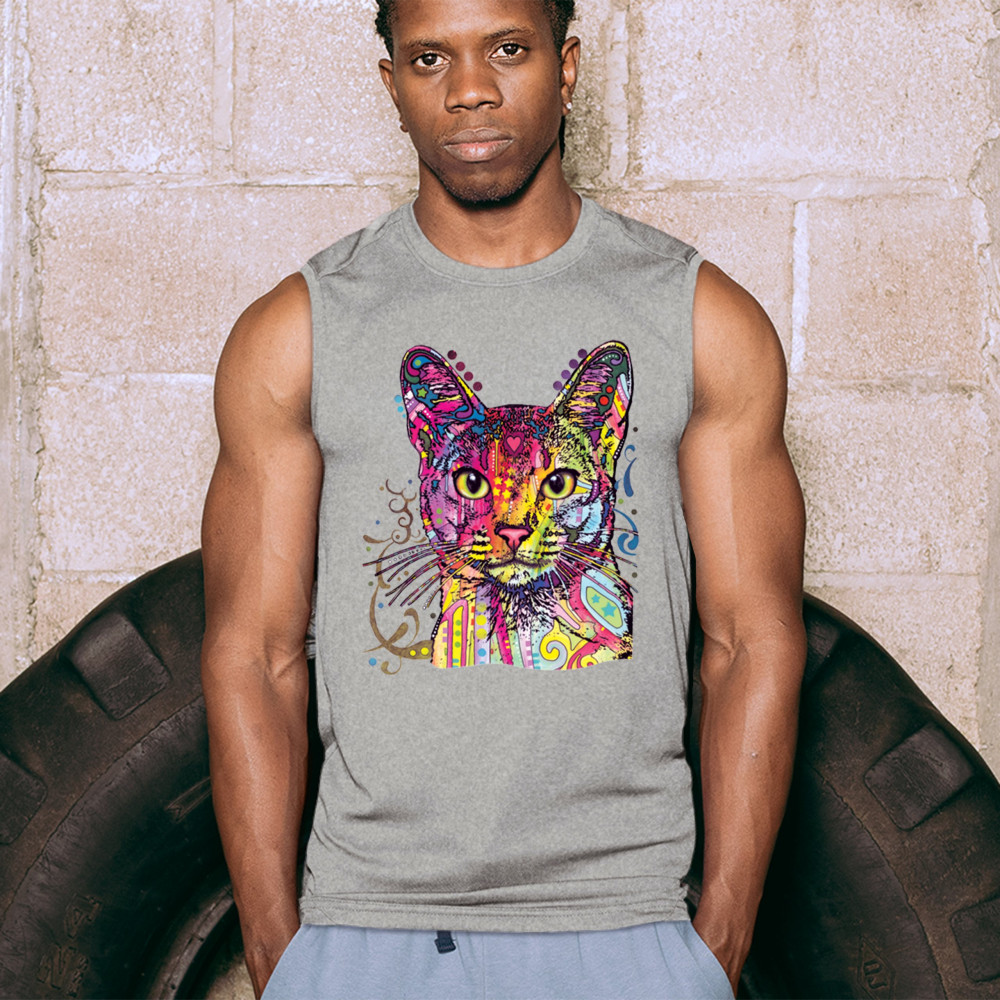 DEAN RUSSO ABYSSINIAN CAT muscle shirt colorful cute kitten pet men's gray