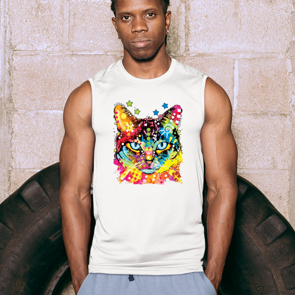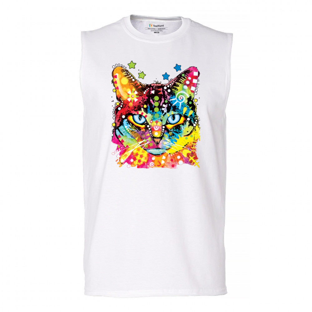 DEAN RUSSO BLUE EYES CAT muscle shirt colorful cute kitten pet men's white