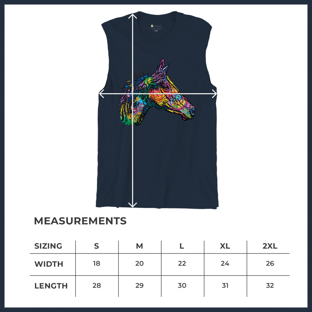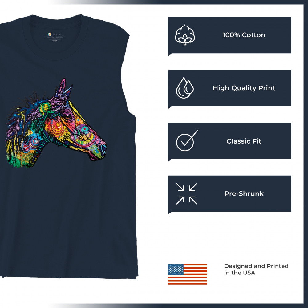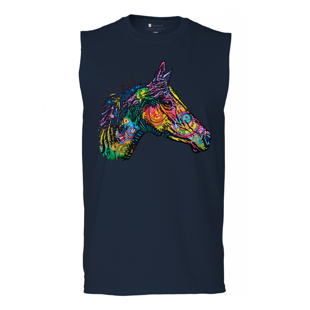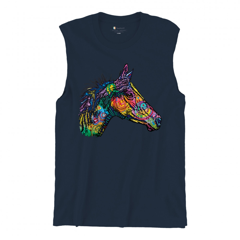 DEAN RUSSO COLORFUL HORSE muscle shirt neon mosaic wild mustang animal men's navy blue