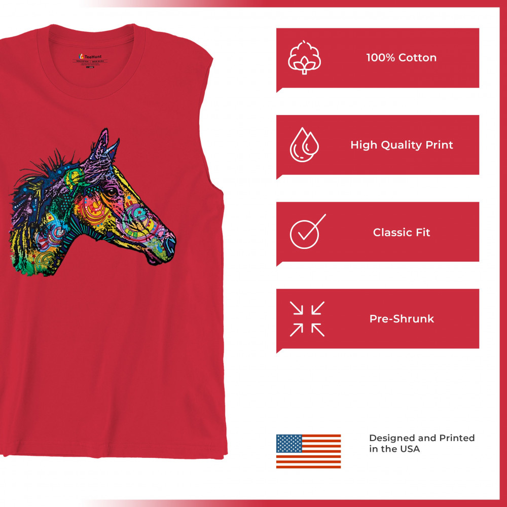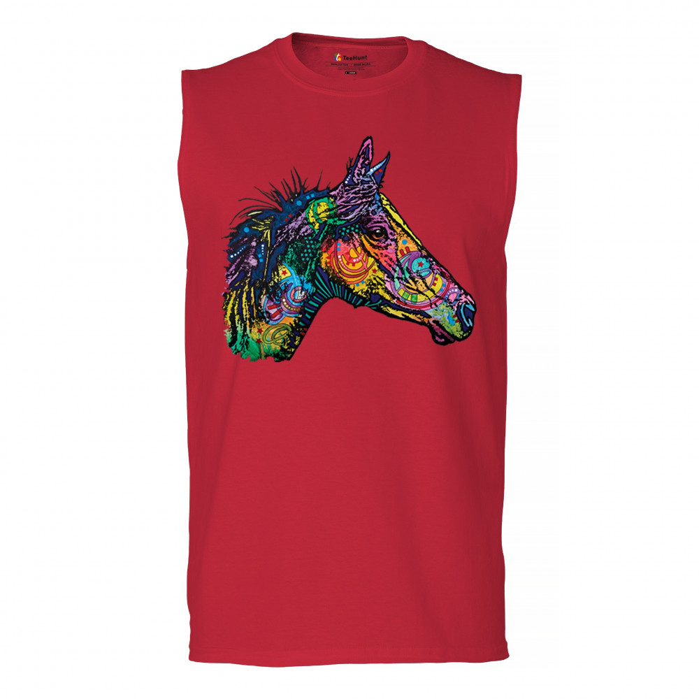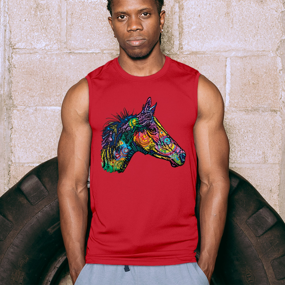 DEAN RUSSO COLORFUL HORSE muscle shirt neon mosaic wild mustang animal men's red