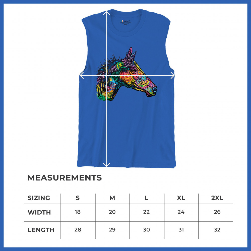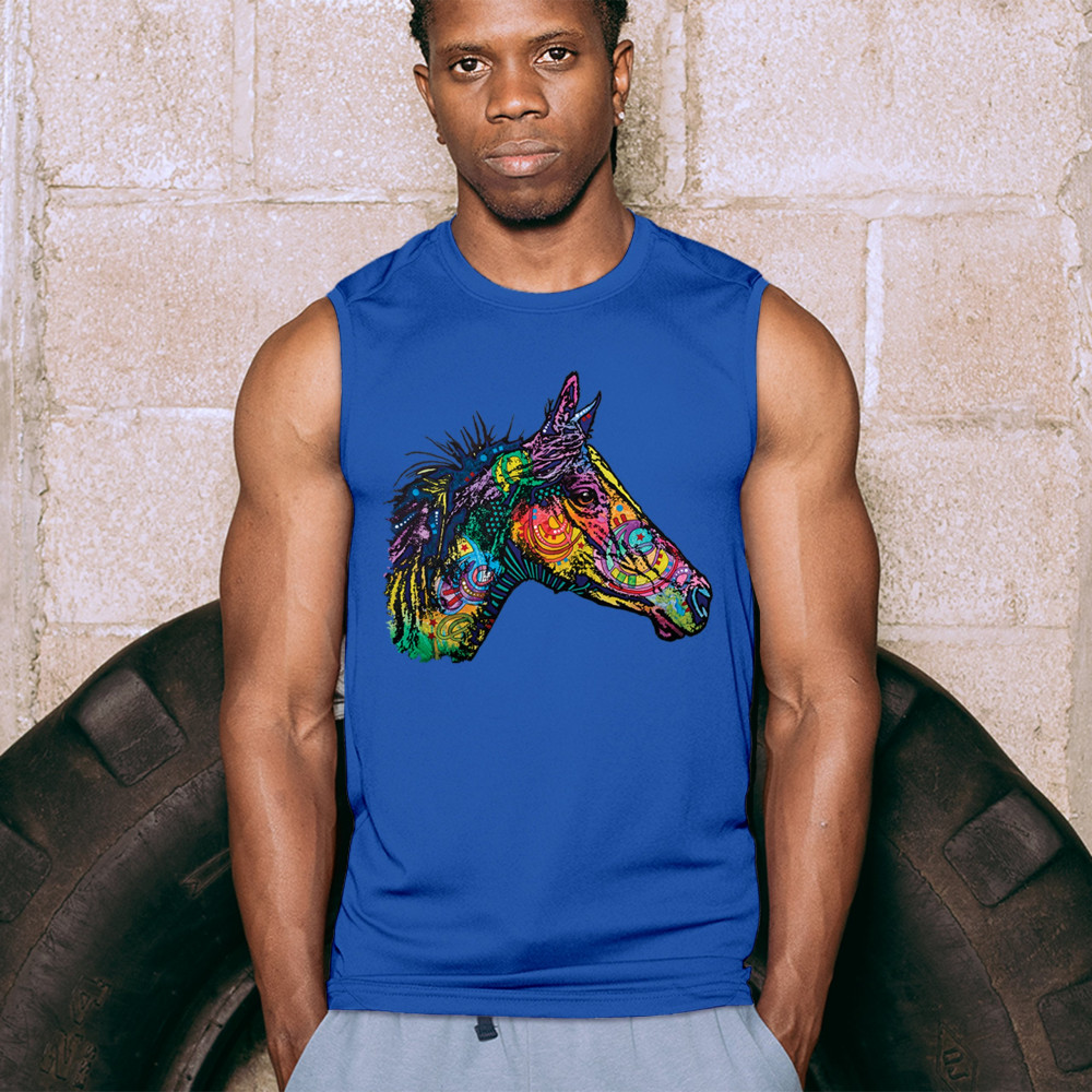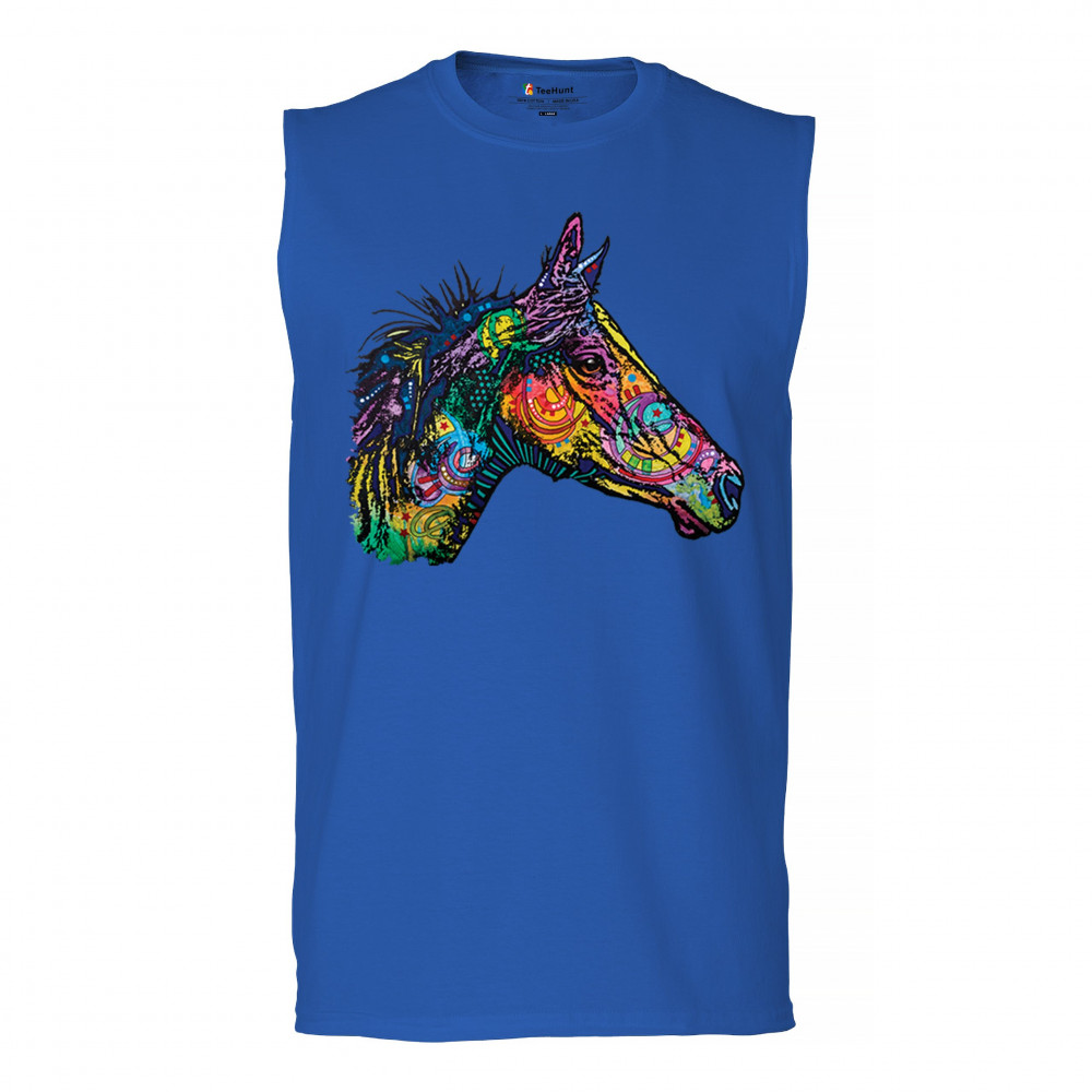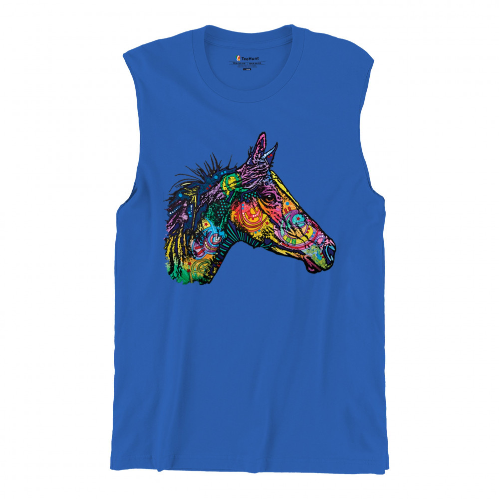 DEAN RUSSO COLORFUL HORSE muscle shirt neon mosaic wild mustang animal men's royal blue