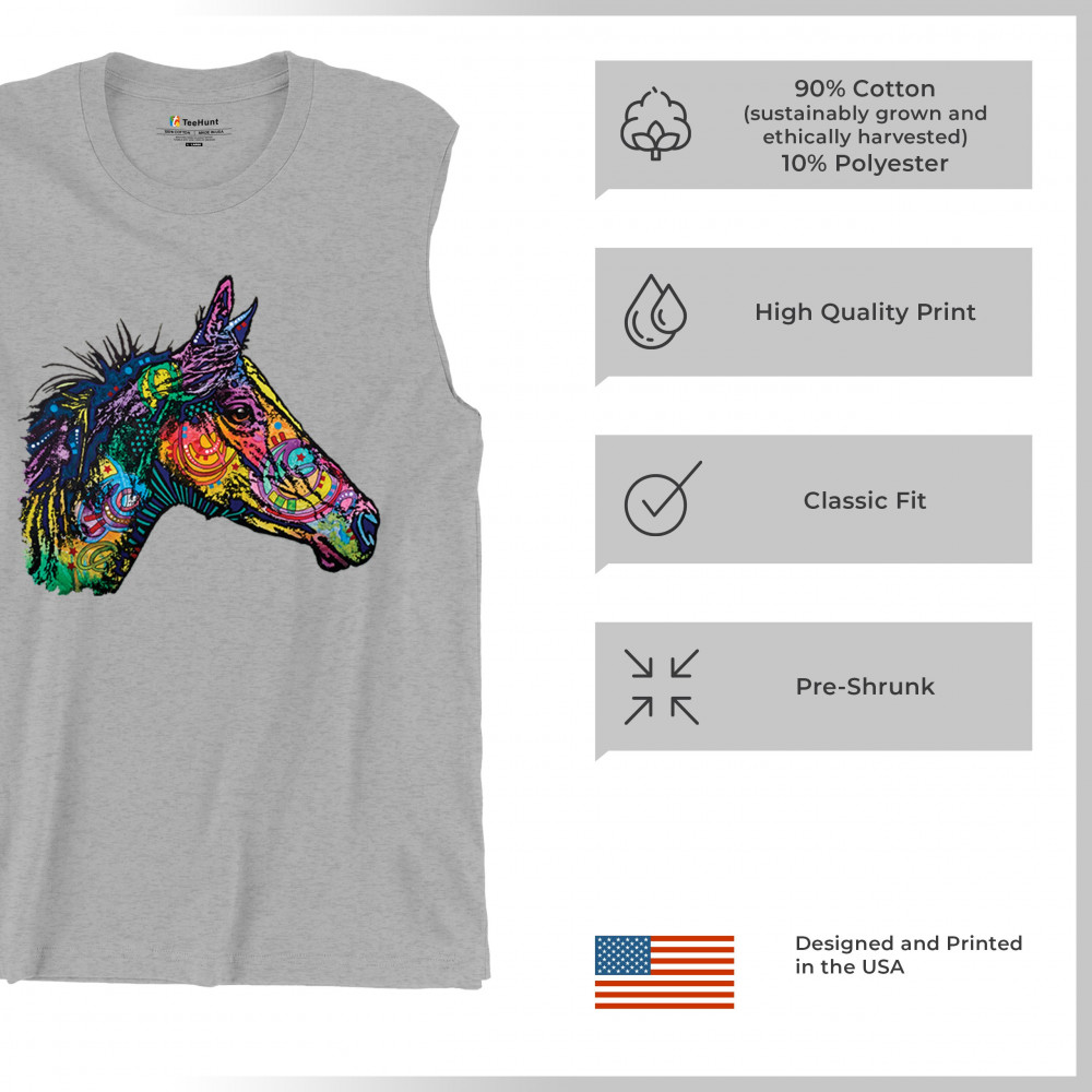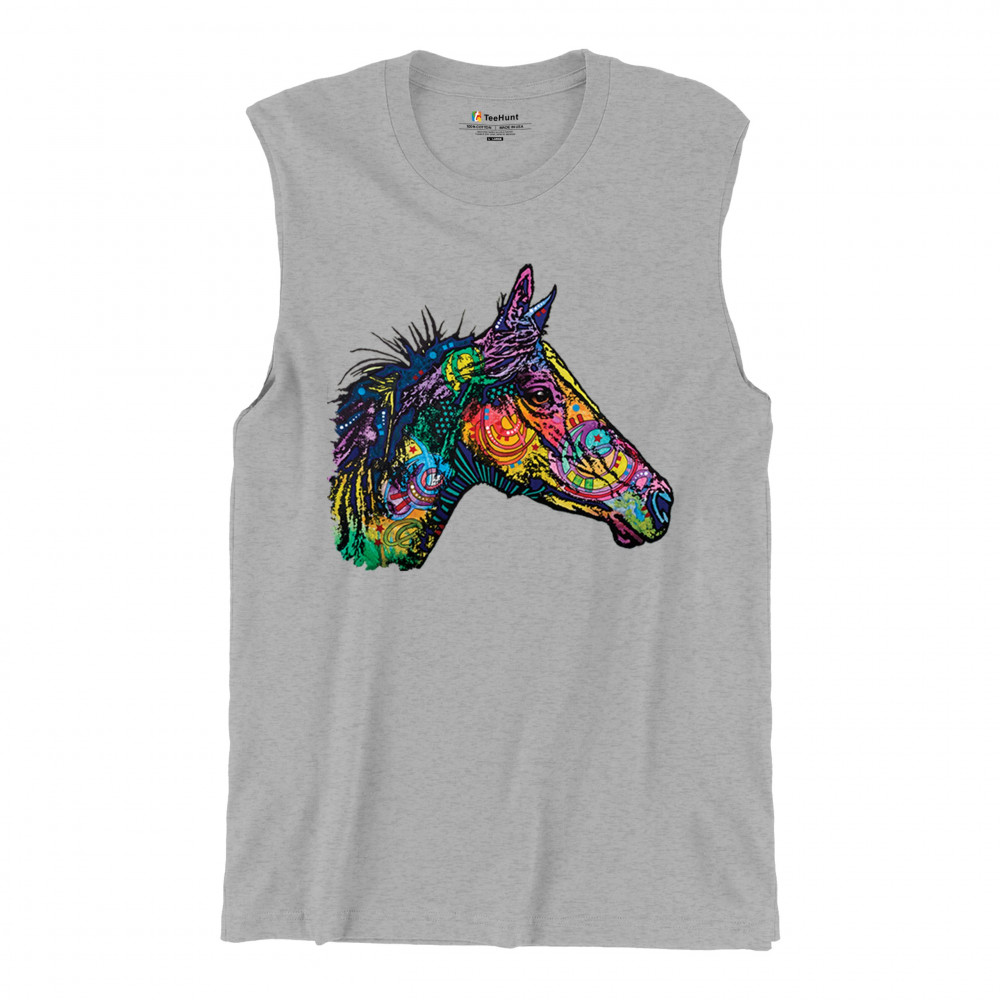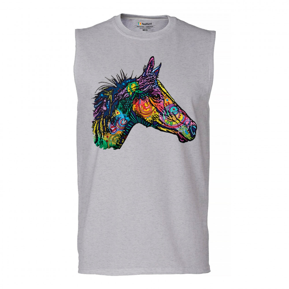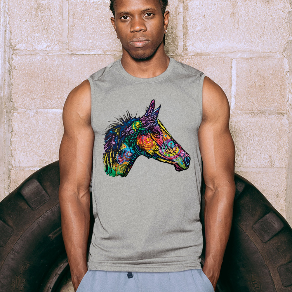 DEAN RUSSO COLORFUL HORSE muscle shirt neon mosaic wild mustang animal men's gray
