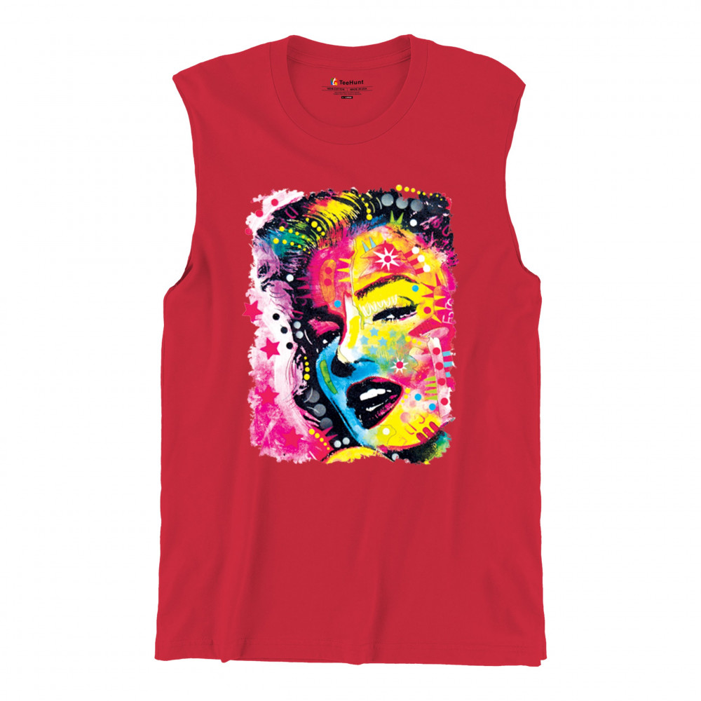 DEAN RUSSO COLORFUL MARILYN muscle shirt neon hot symbol starlet men's red
