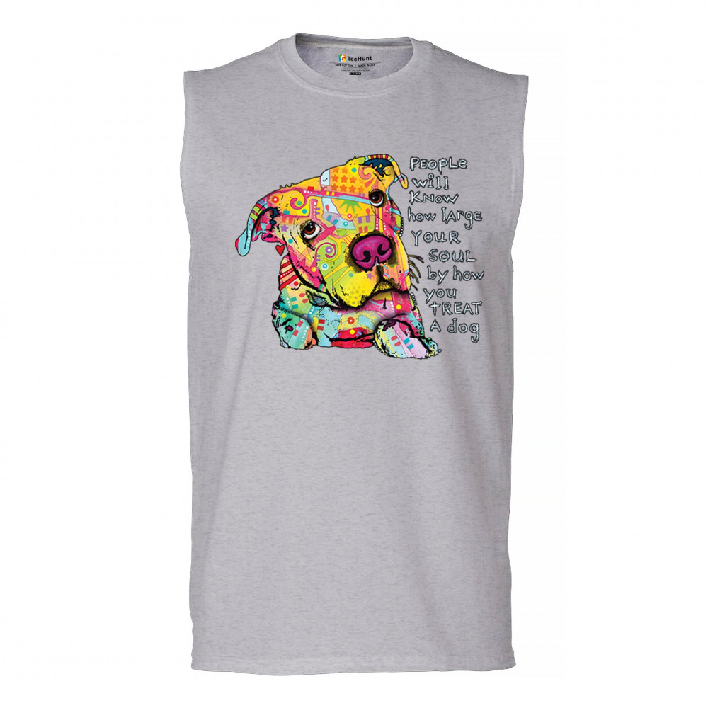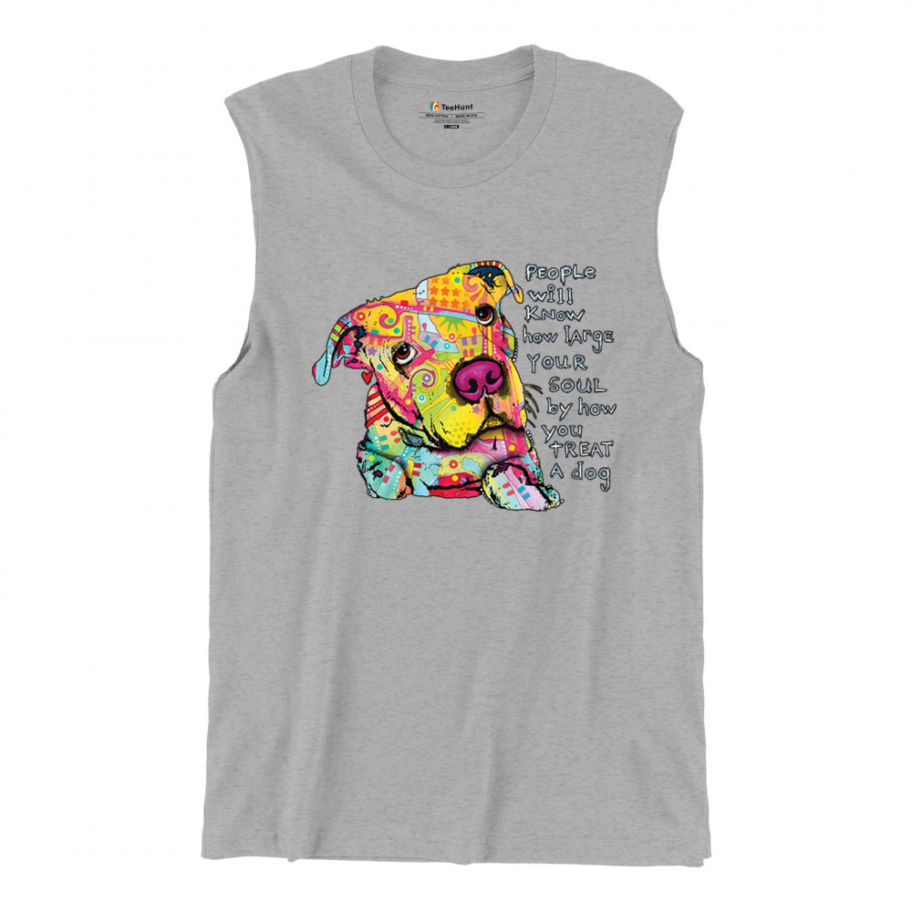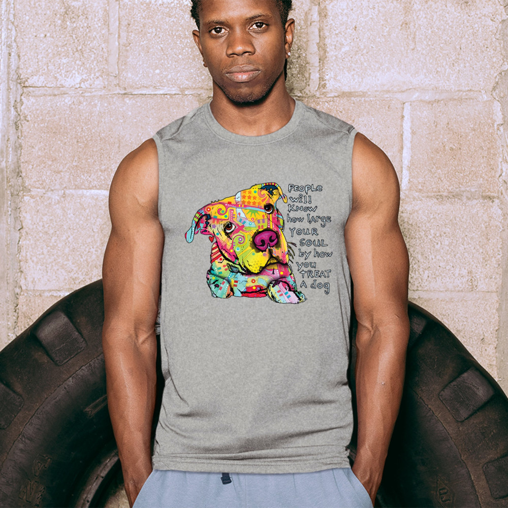 DEAN RUSSO COLORFUL NEON DOG muscle shirt how large your soul is pet men's gray