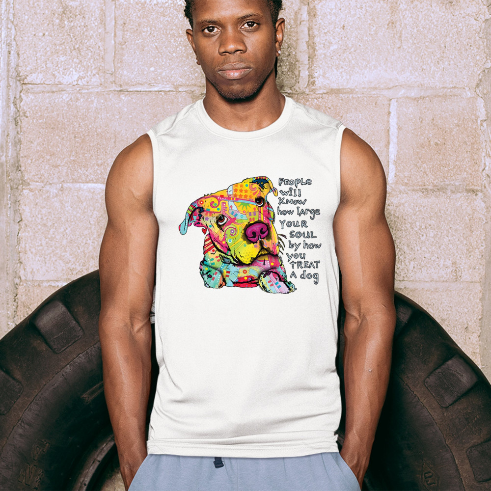 DEAN RUSSO COLORFUL NEON DOG muscle shirt how large your soul is pet men's white