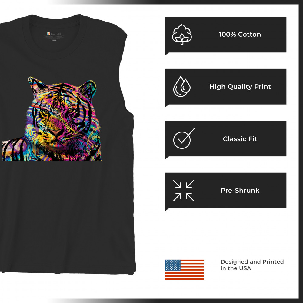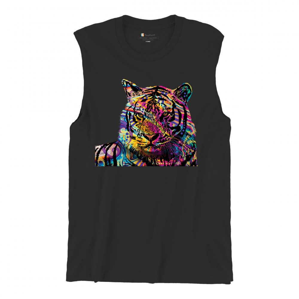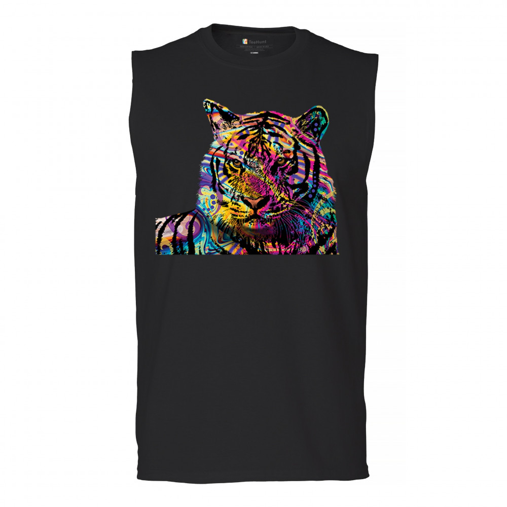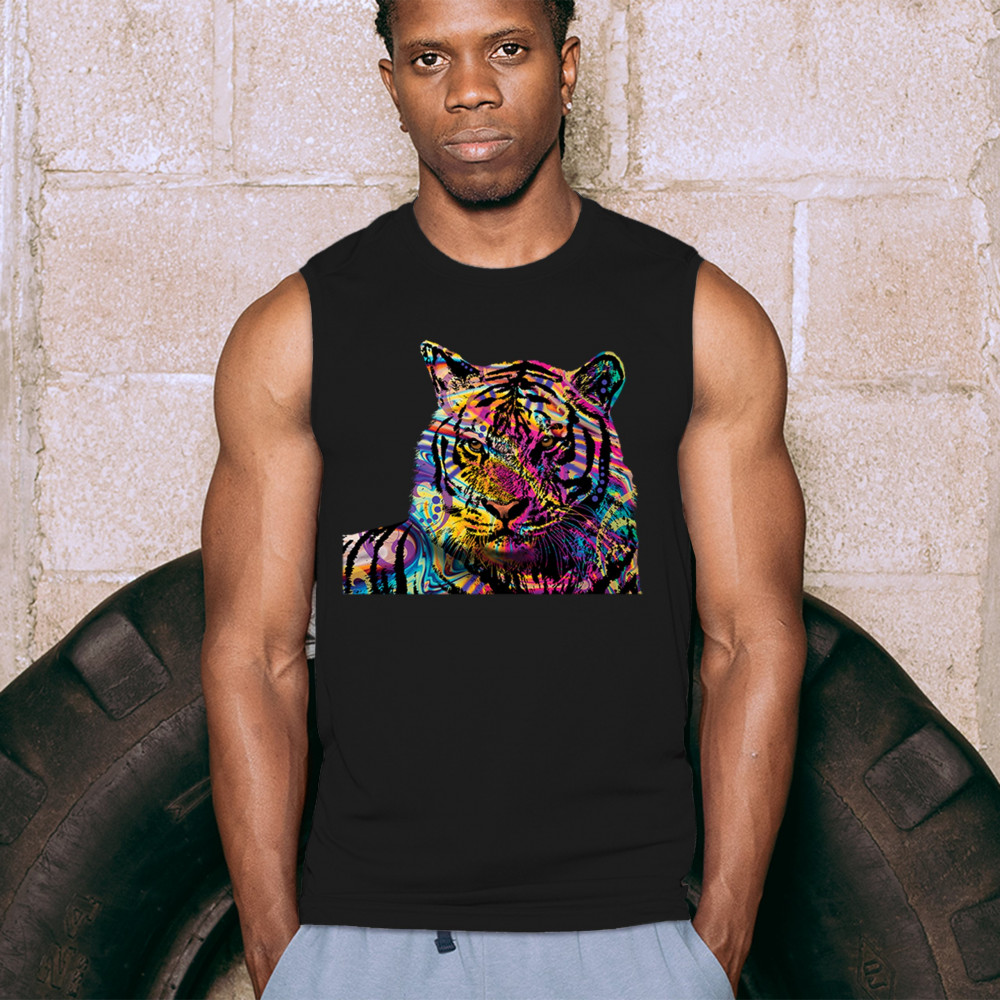 DEAN RUSSO COLORFUL NEON SIBERIAN TIGER muscle shirt wild big cat men's black