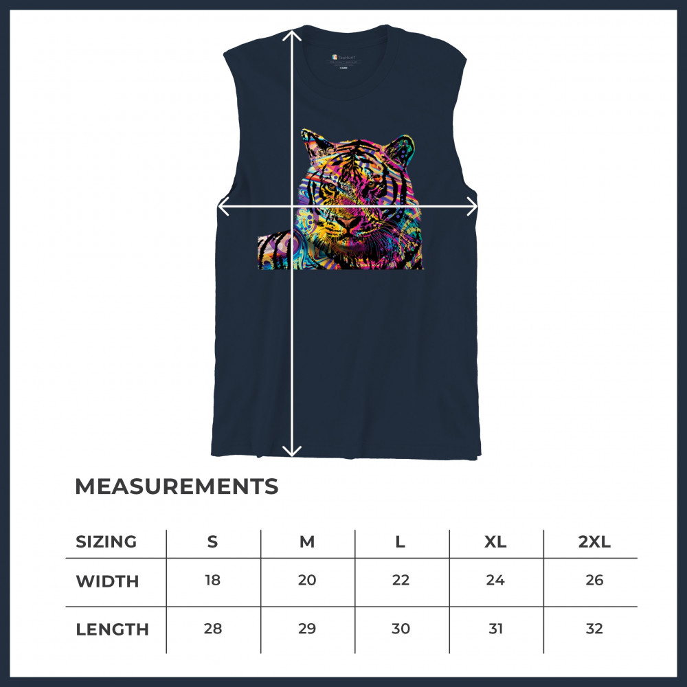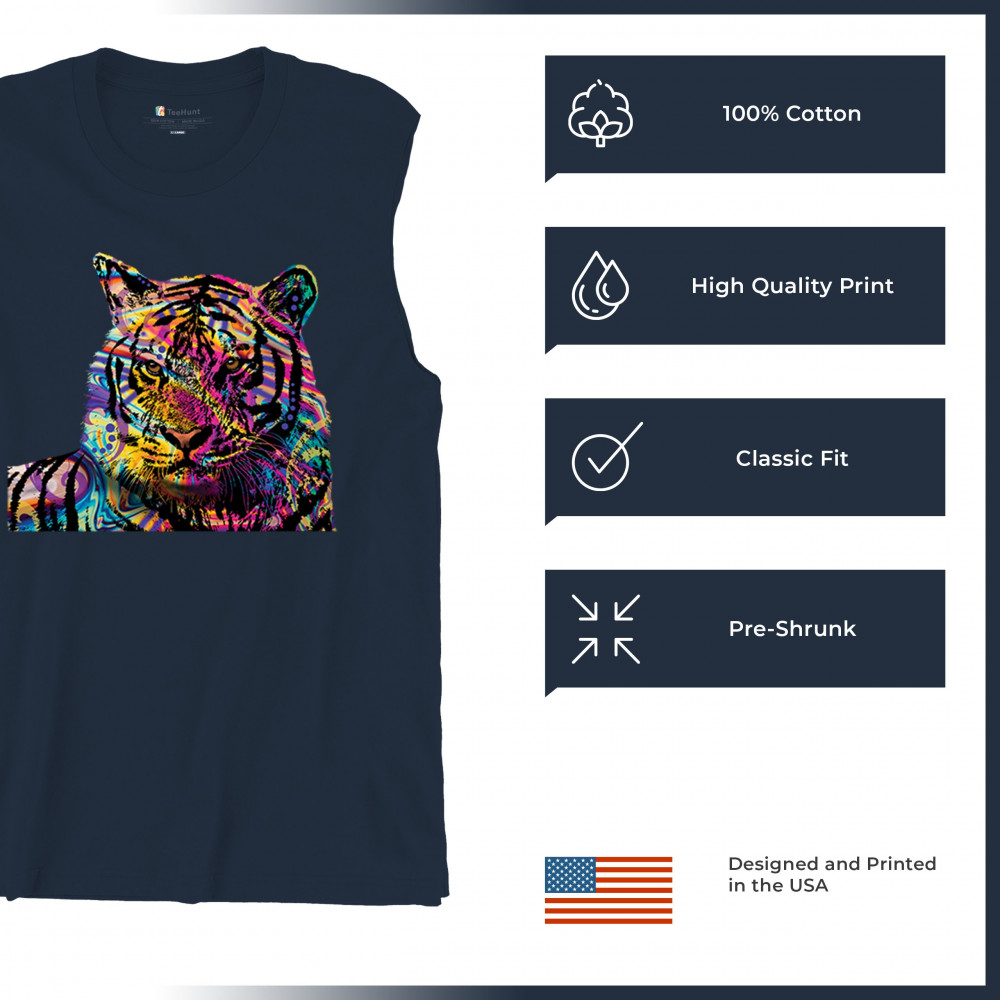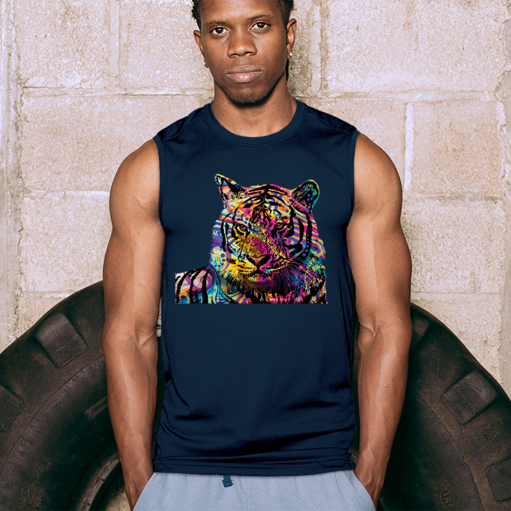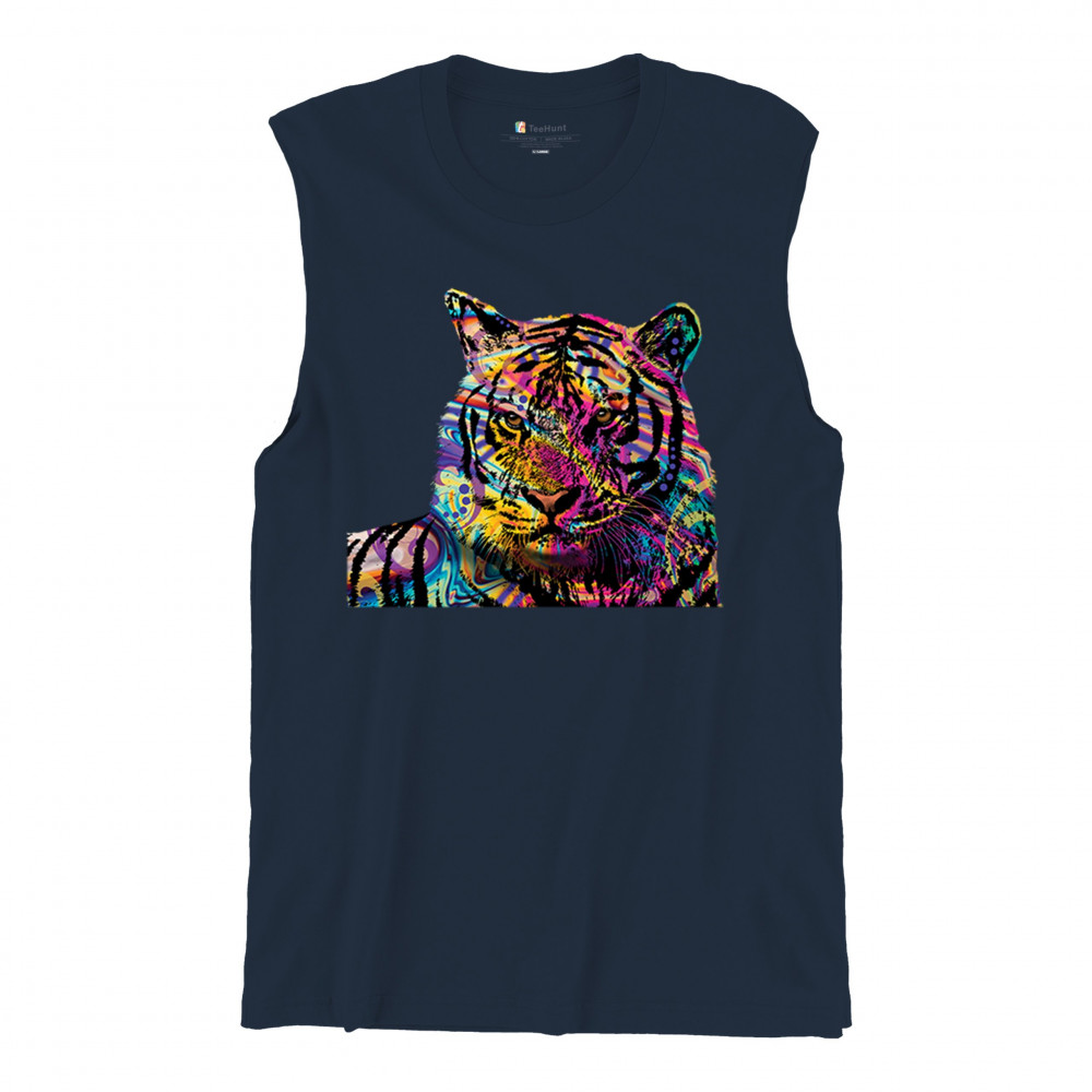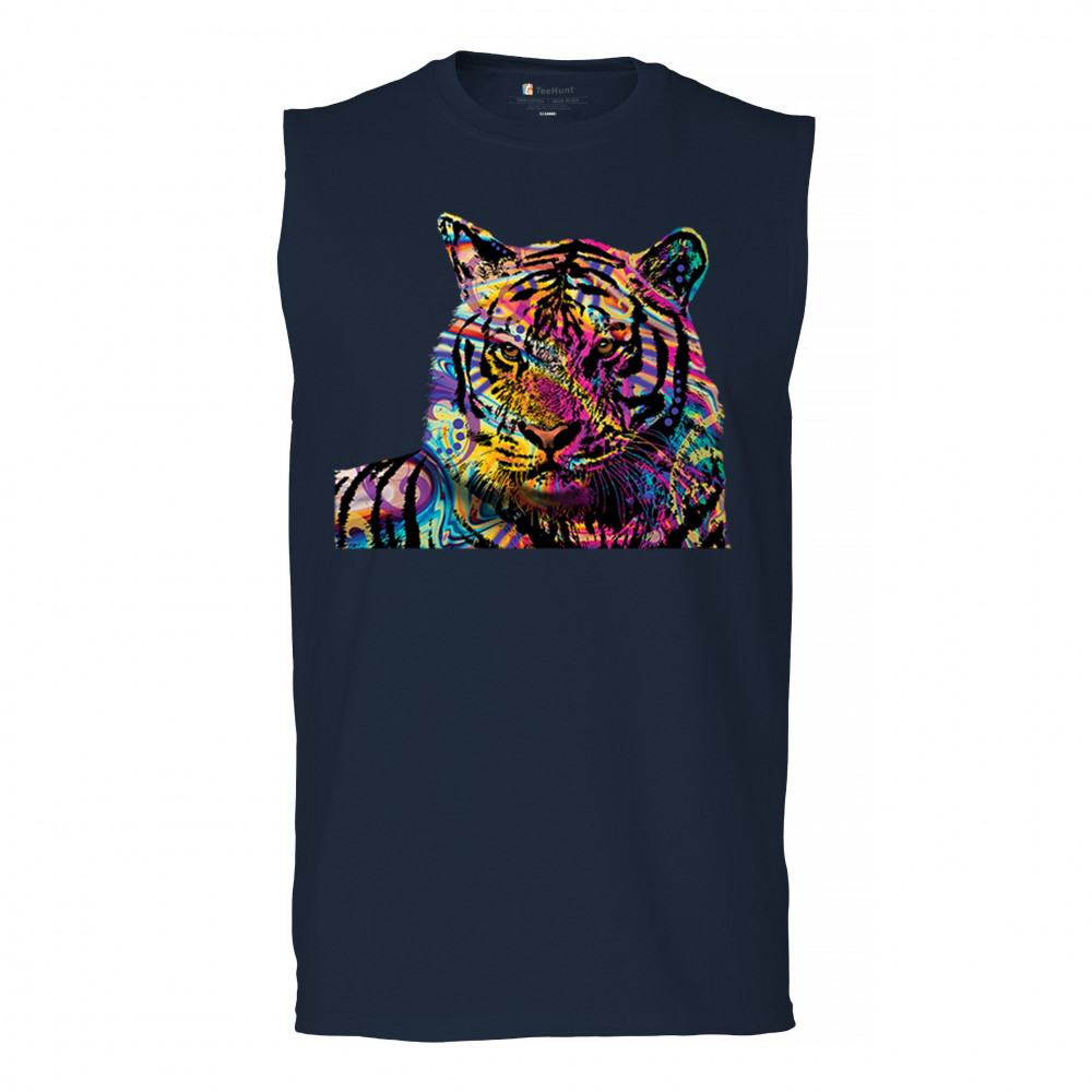 DEAN RUSSO COLORFUL NEON SIBERIAN TIGER muscle shirt wild big cat men's navy blue
