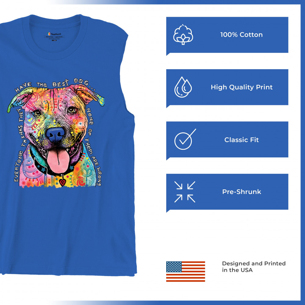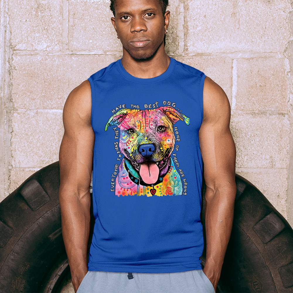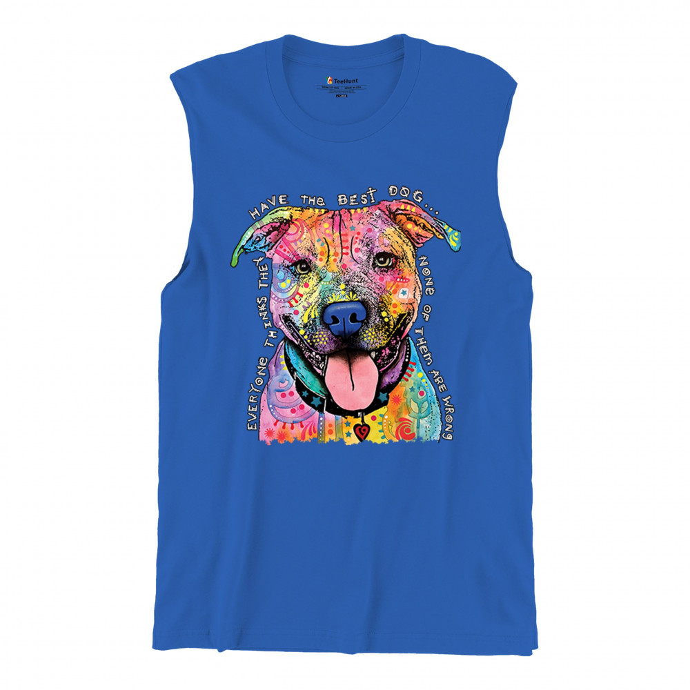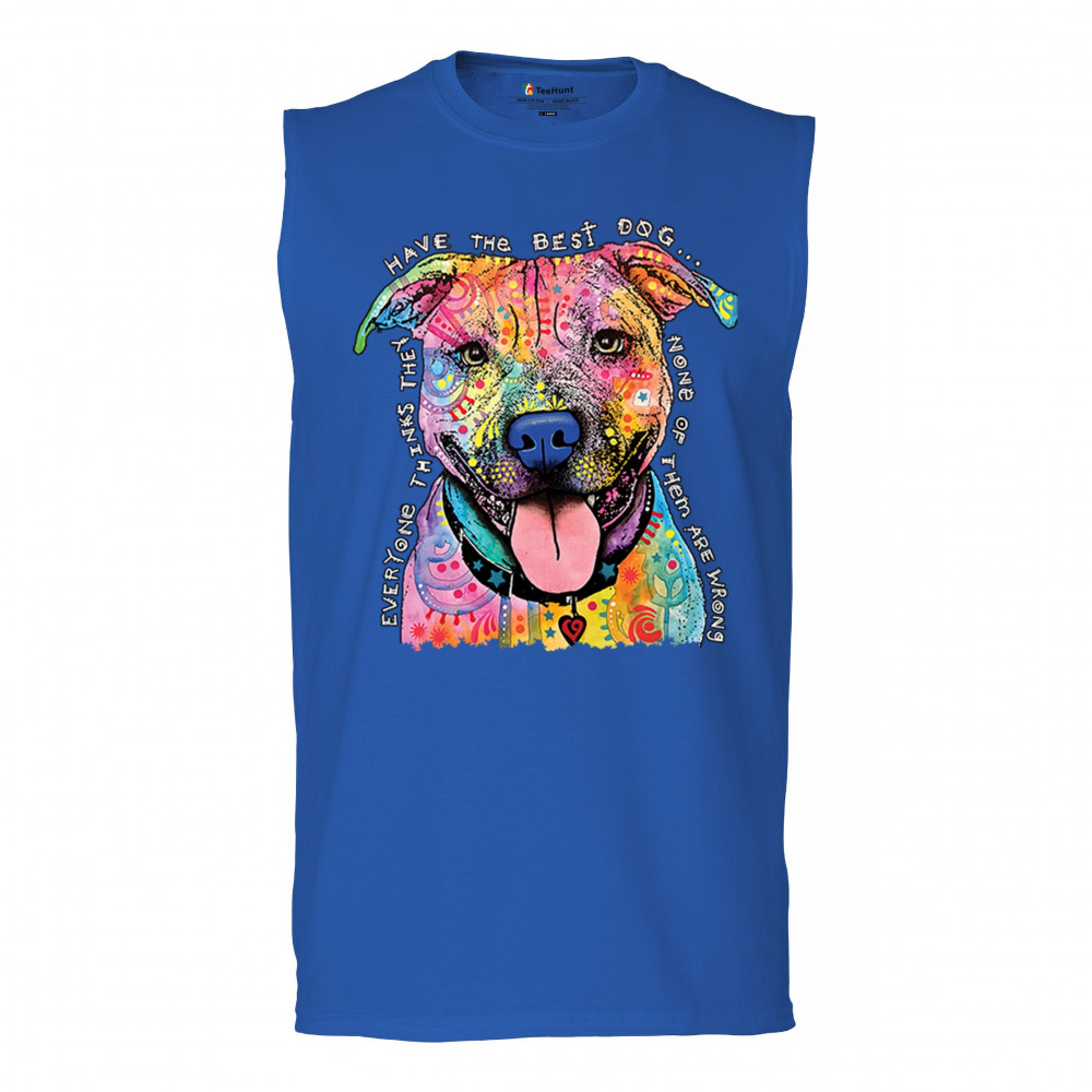 DEAN RUSSO COLORFUL PIT BULL muscle shirt everyone has best dogs men's royal blue