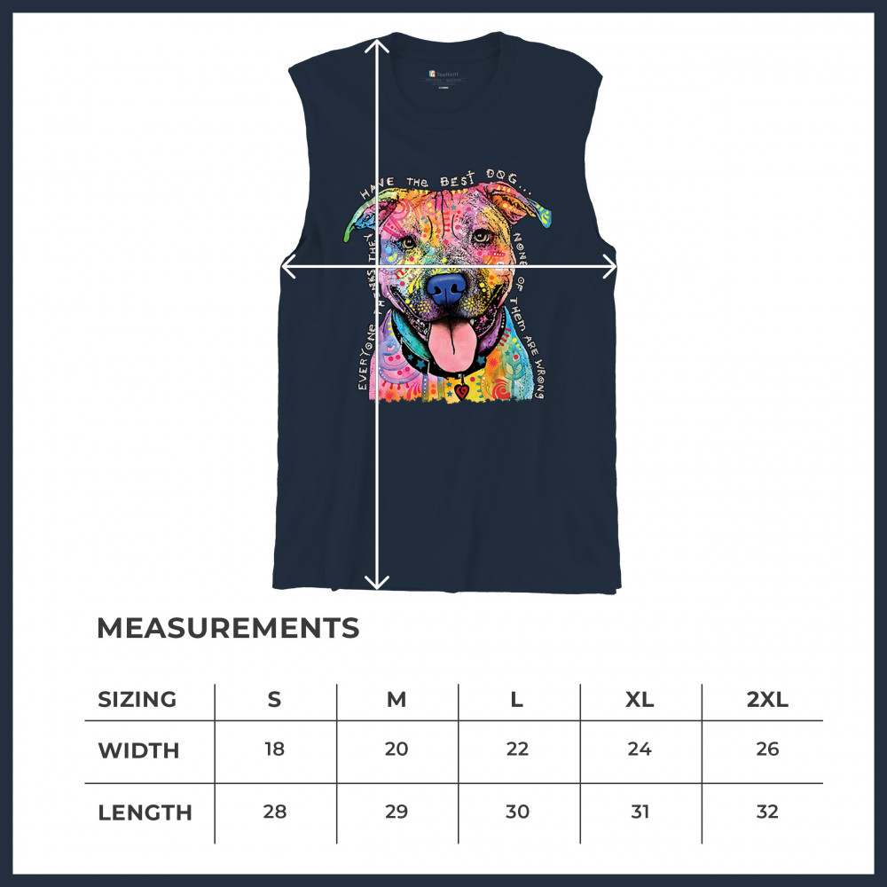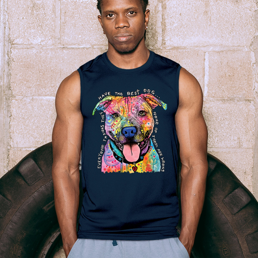 DEAN RUSSO COLORFUL PIT BULL muscle shirt everyone has best dogs men's navy blue