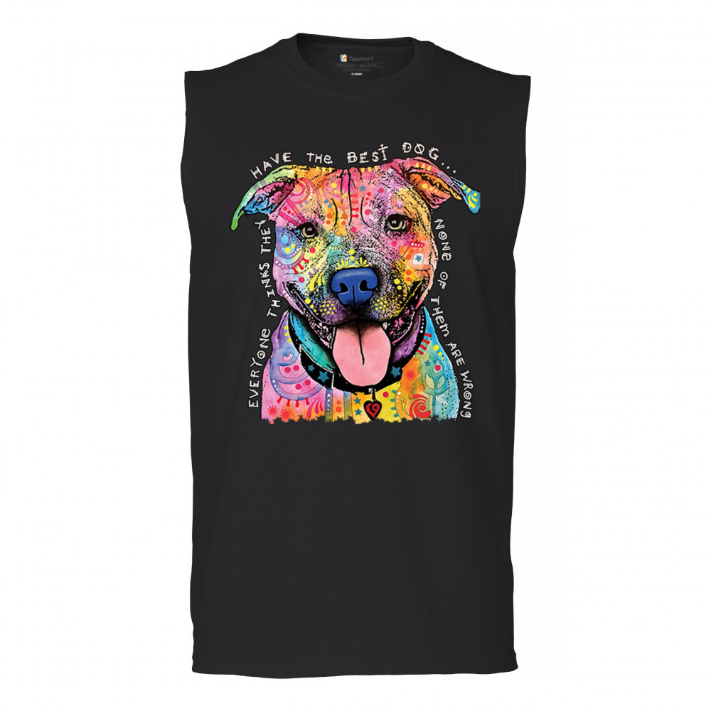 DEAN RUSSO COLORFUL PIT BULL muscle shirt everyone has best dogs men's black