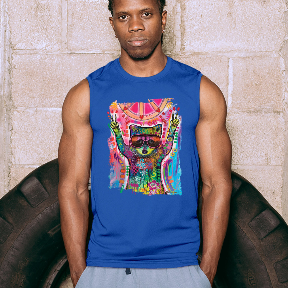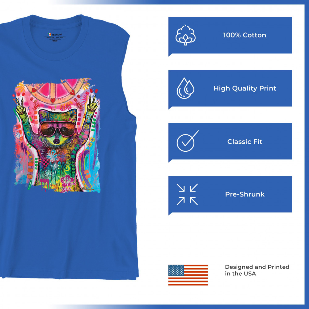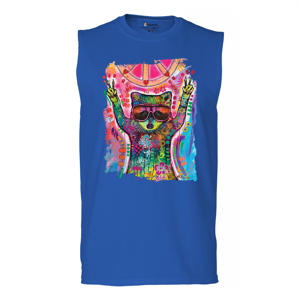 DEAN RUSSO COSMIC TRASH PANDA muscle shirt funny weird hippie men's royal blue
