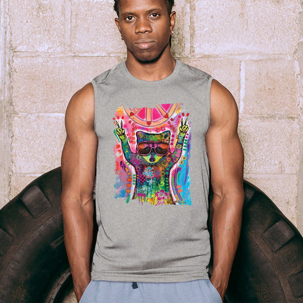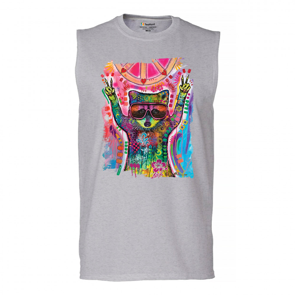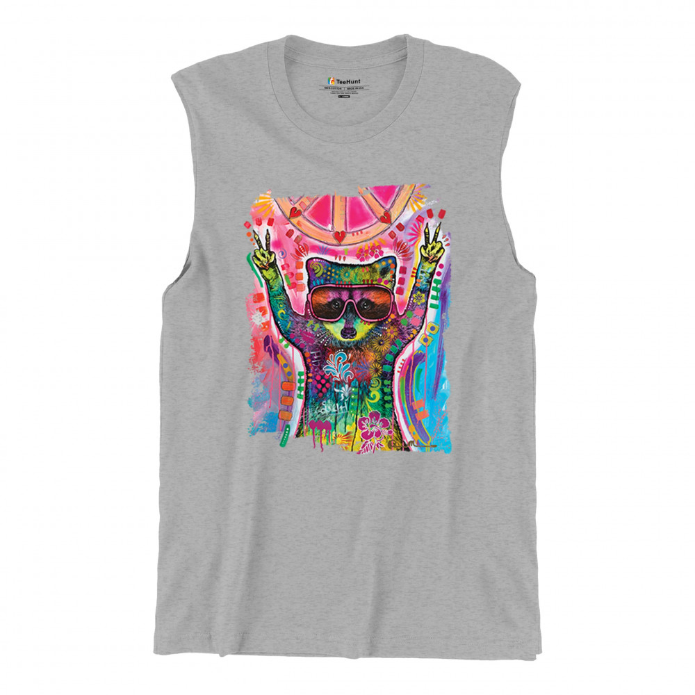 DEAN RUSSO COSMIC TRASH PANDA muscle shirt funny weird hippie men's gray