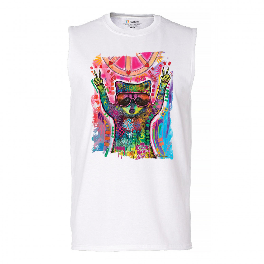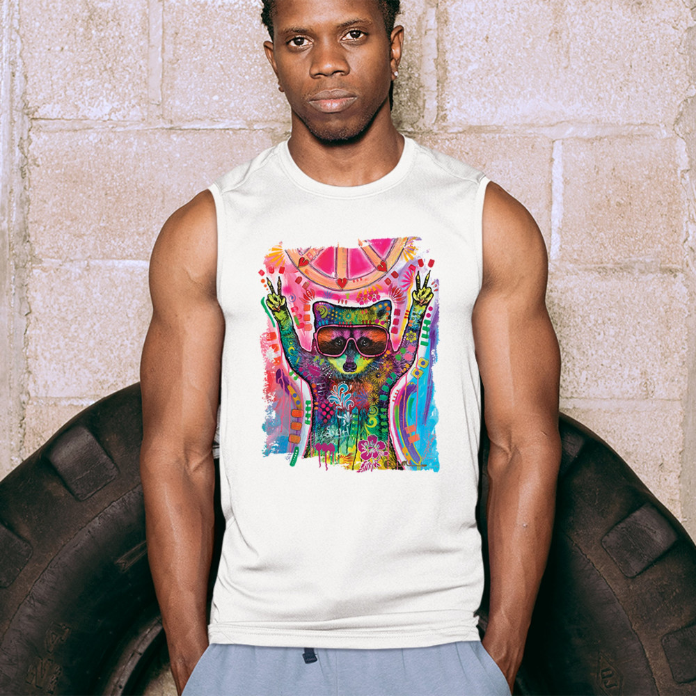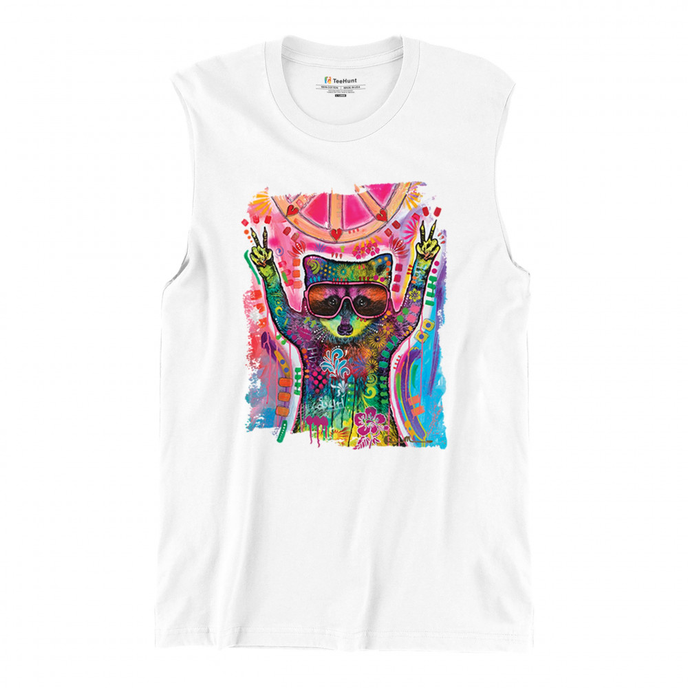 DEAN RUSSO COSMIC TRASH PANDA muscle shirt funny weird hippie men's white