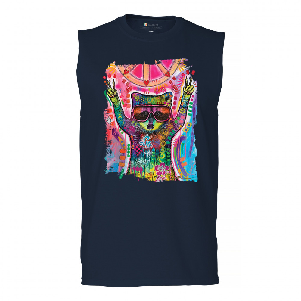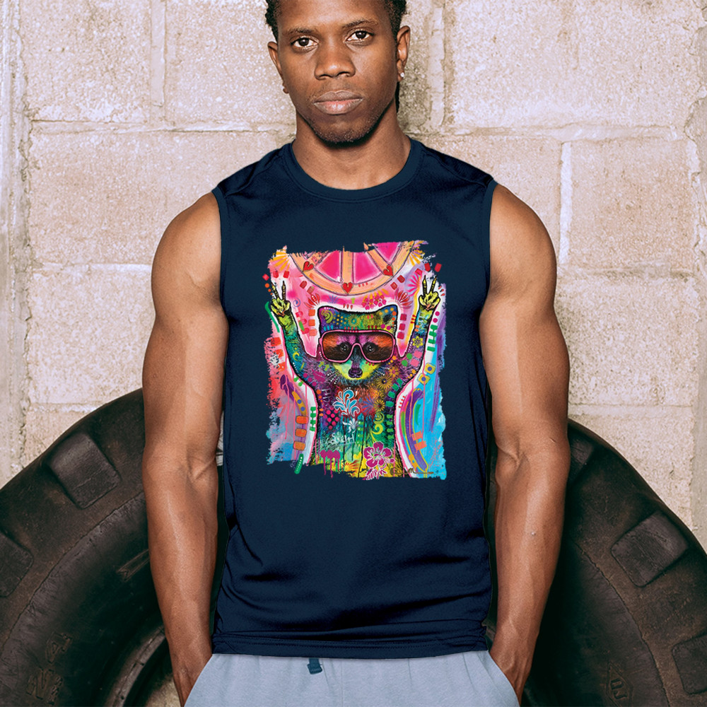 DEAN RUSSO COSMIC TRASH PANDA muscle shirt funny weird hippie men's navy blue