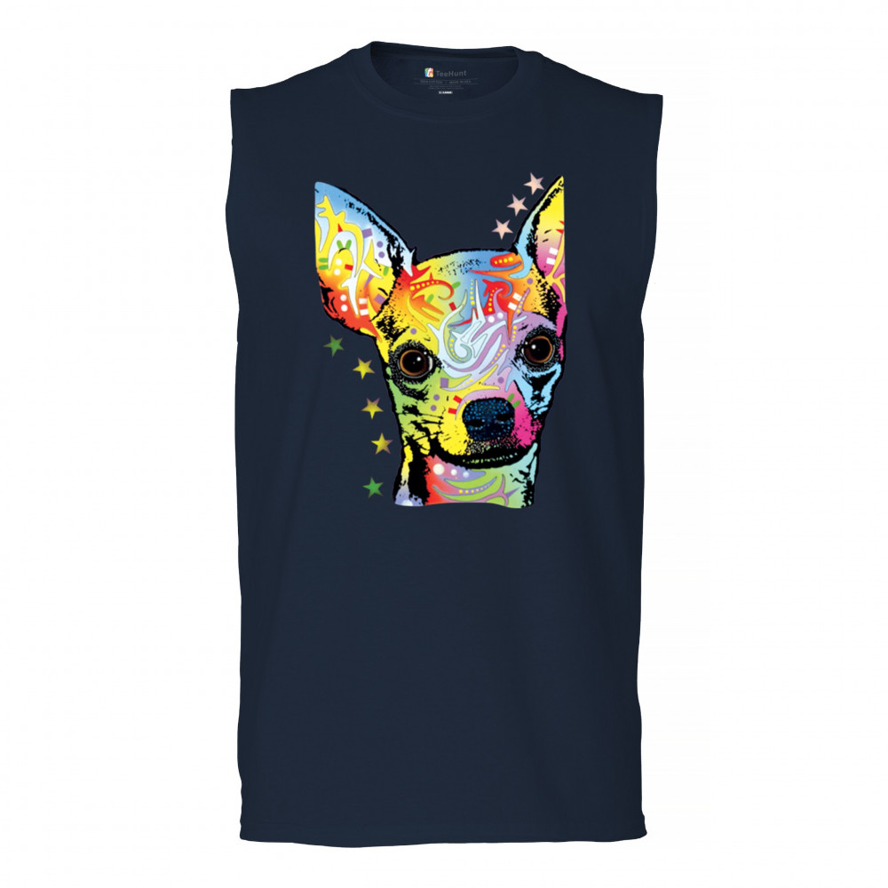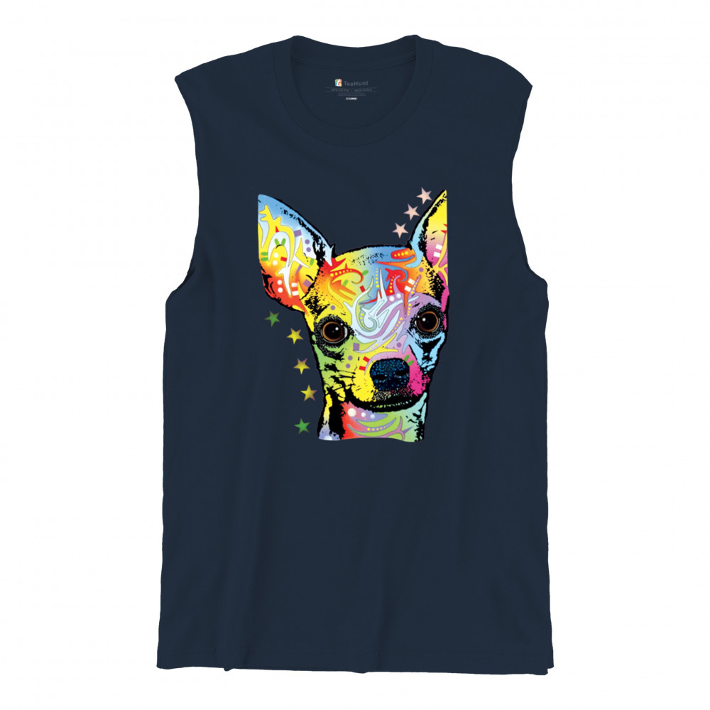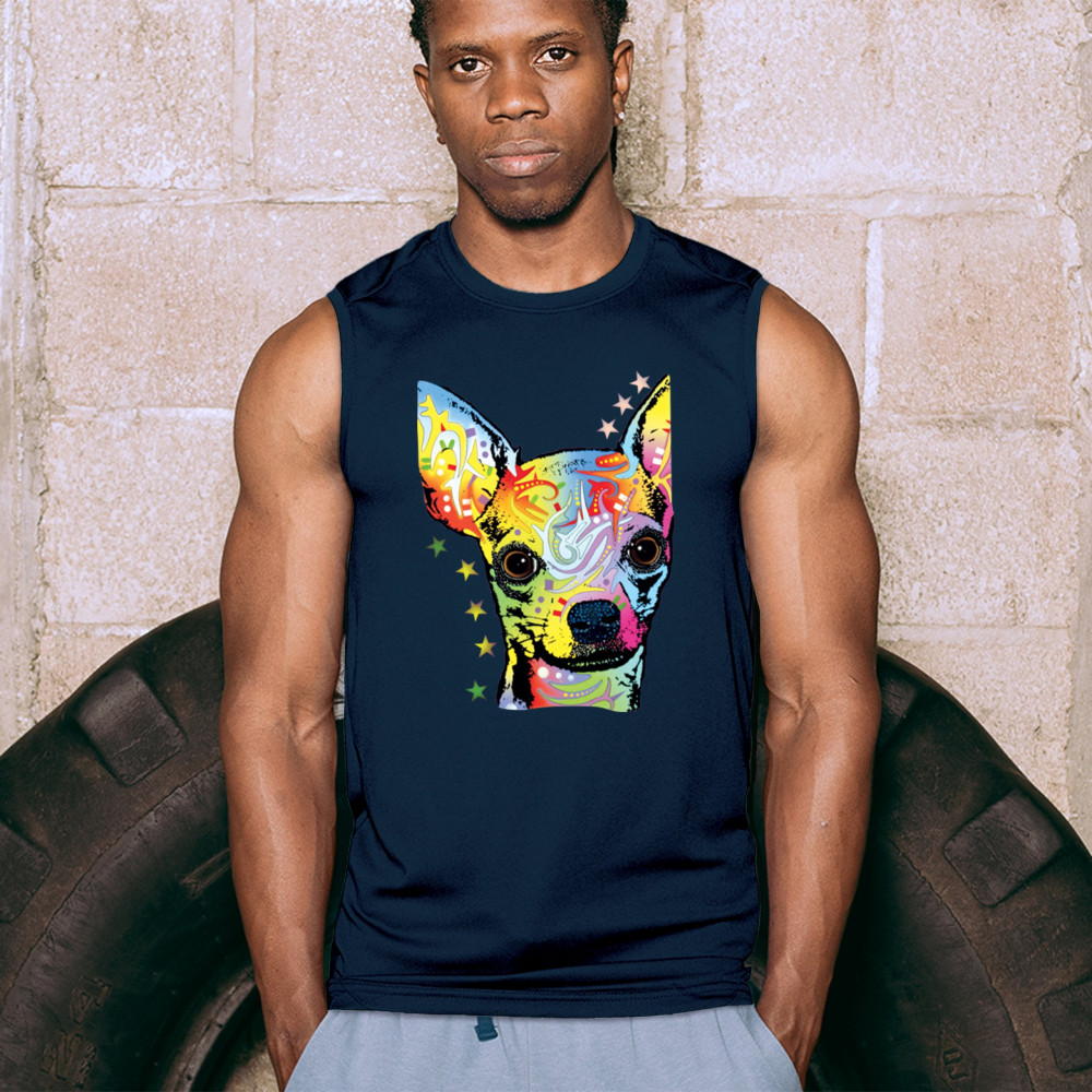 DEAN RUSSO CUTE CHIHUAHUA muscle shirt neon colorful small dog pet men's navy blue