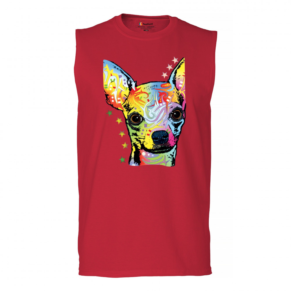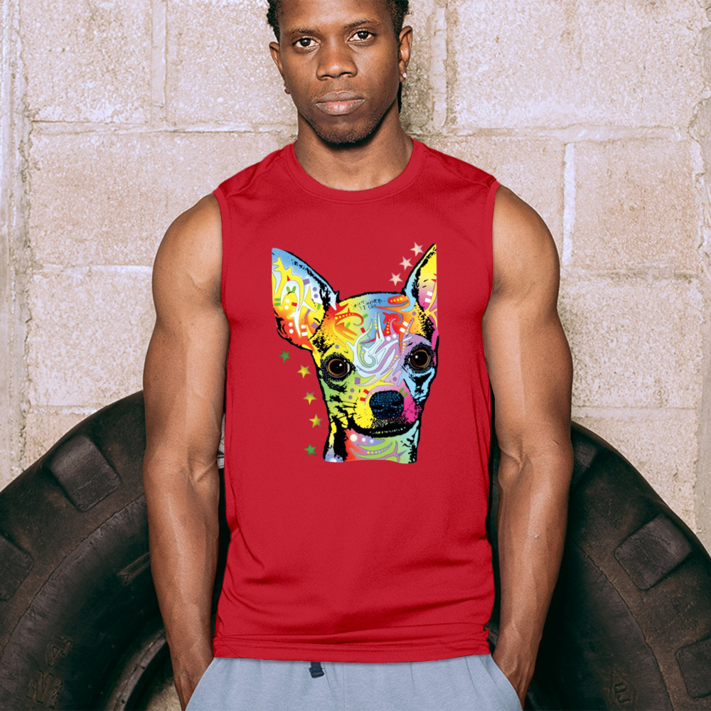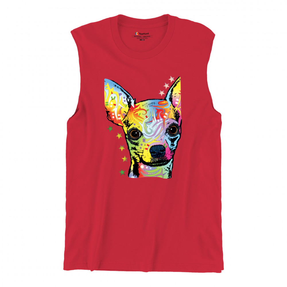 DEAN RUSSO CUTE CHIHUAHUA muscle shirt neon colorful small dog pet men's red