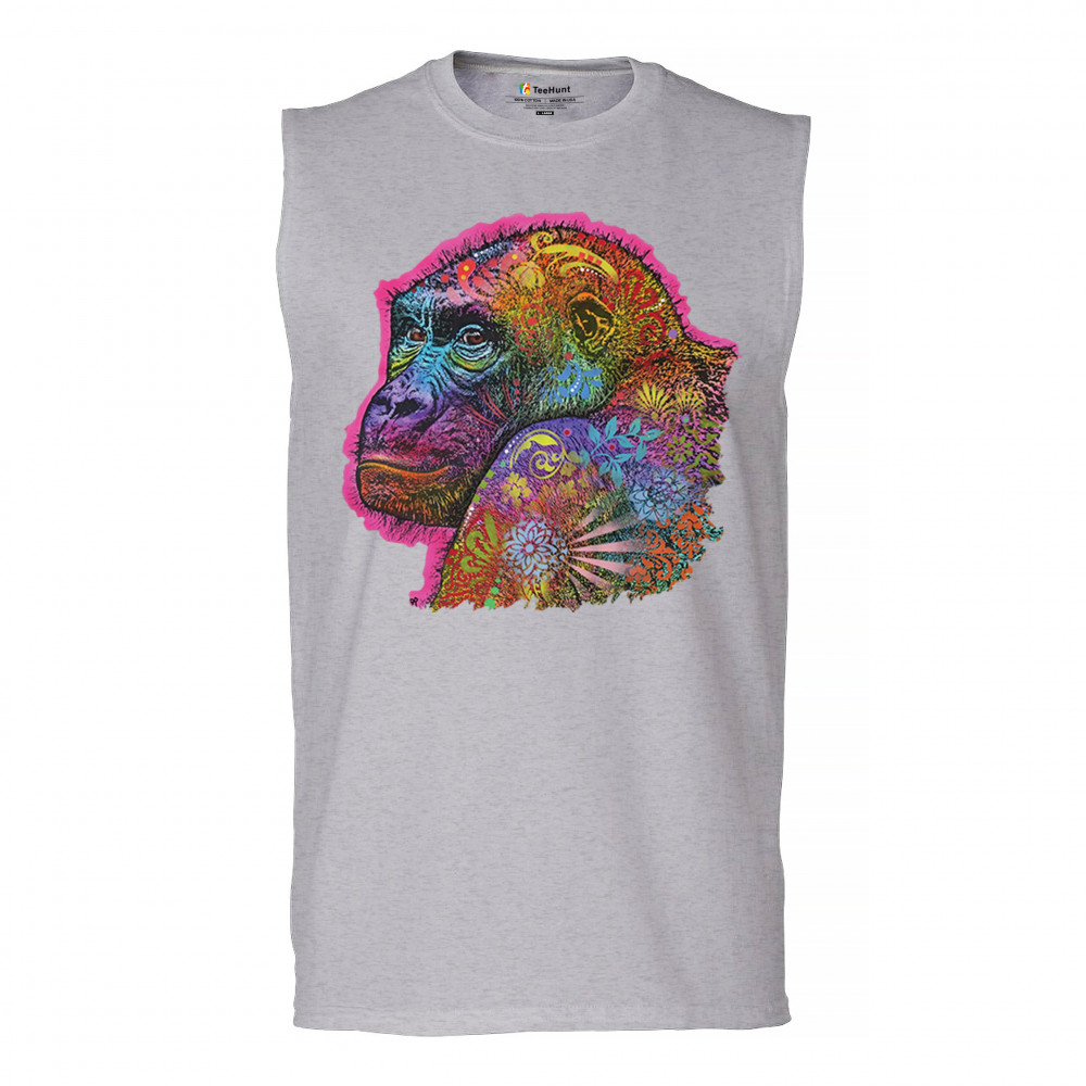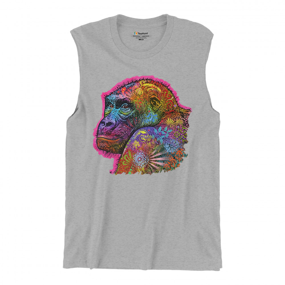 DEAN RUSSO CUTE GORILLA muscle shirt colorful neon silverback ape art men's gray