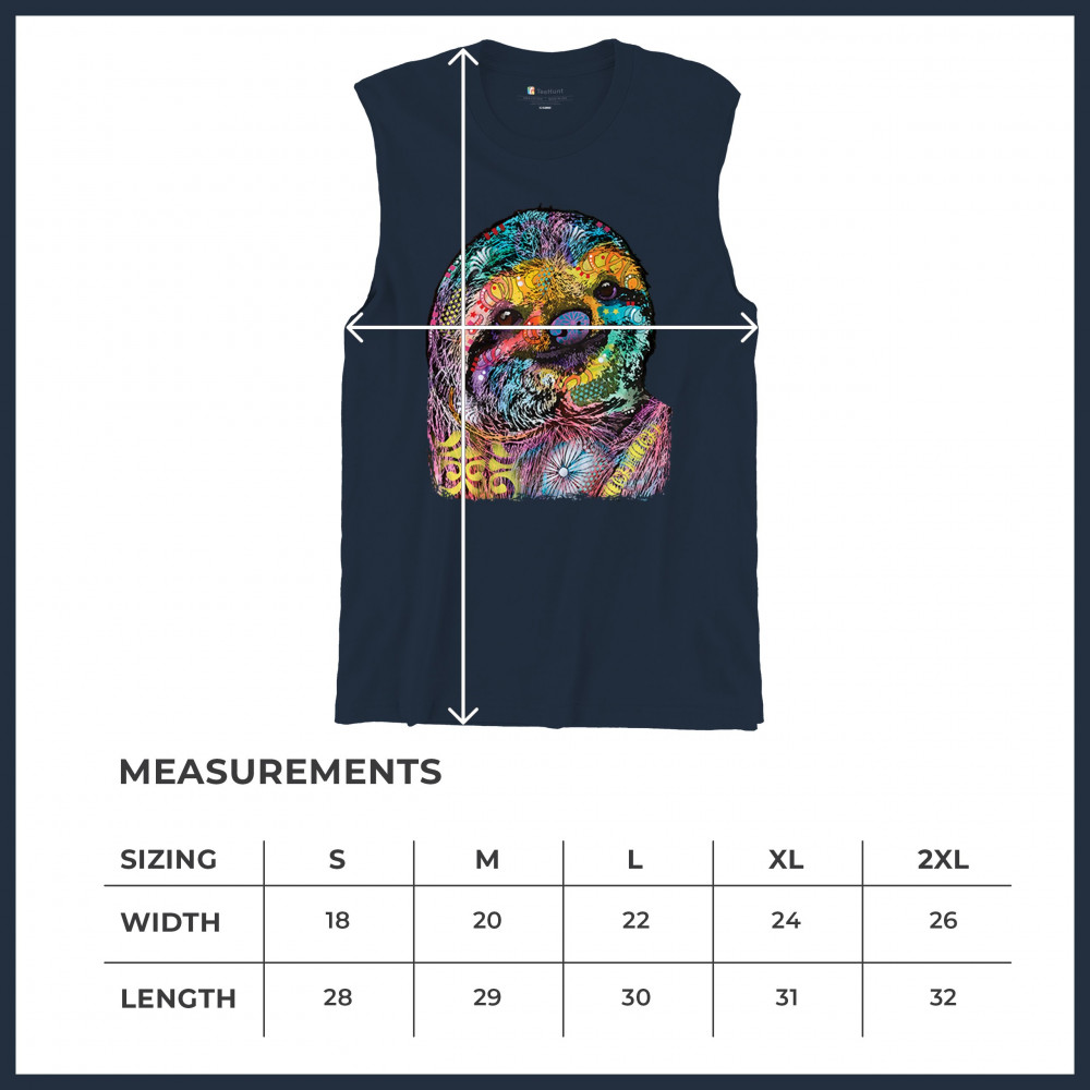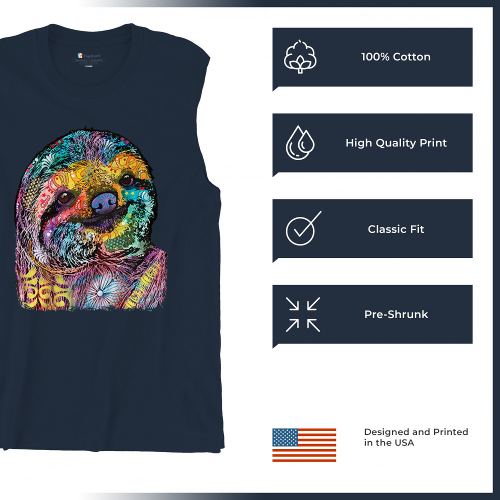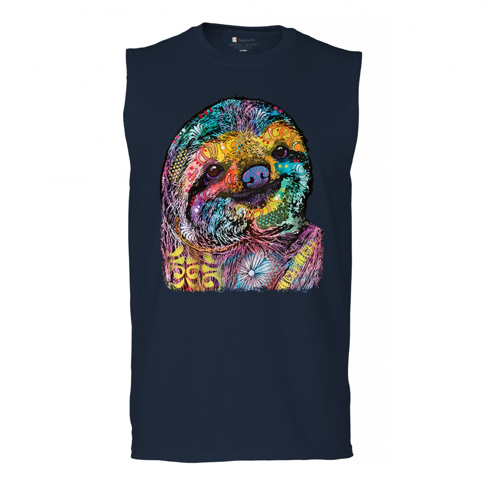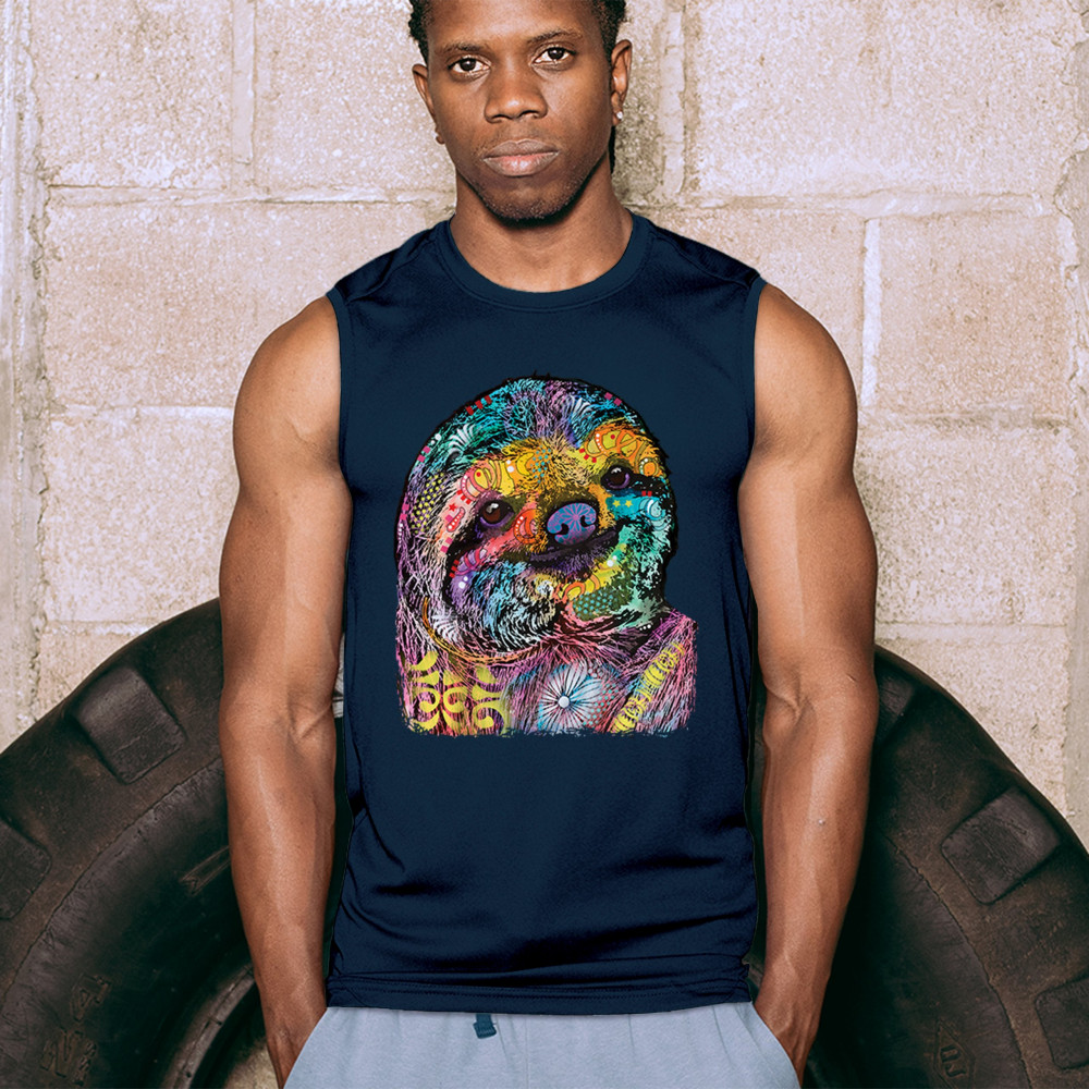 DEAN RUSSO CUTE LAZY SLOTH muscle shirt funny wild life colorful men's navy blue