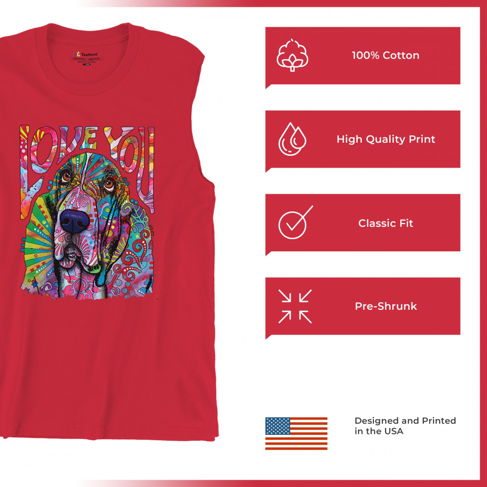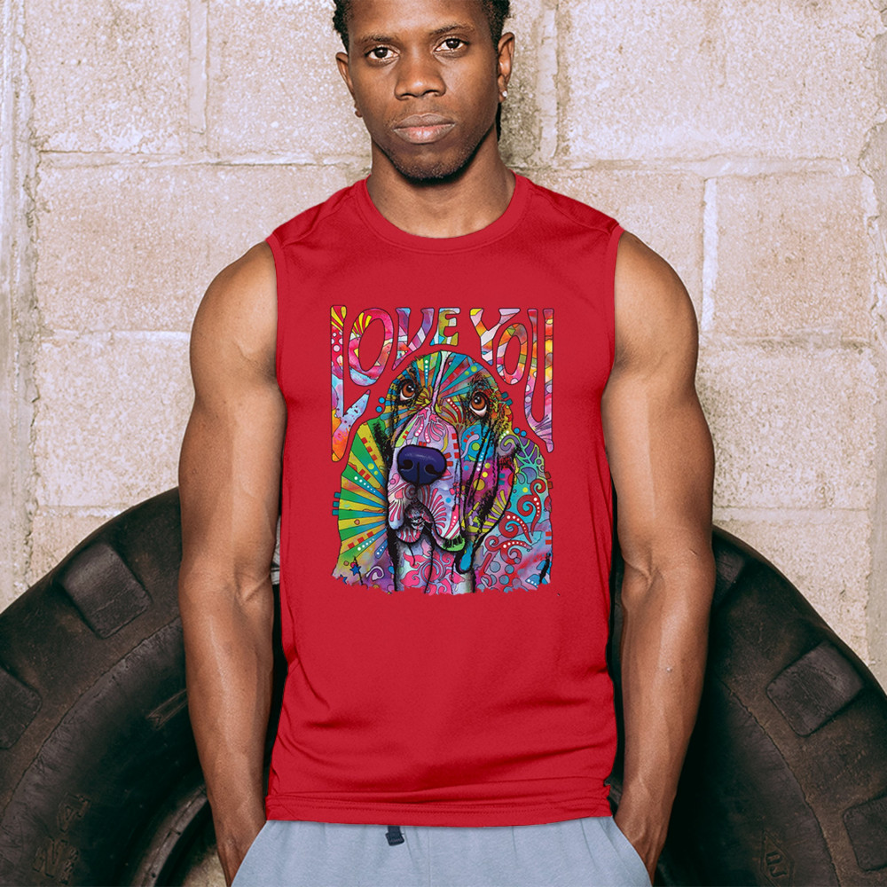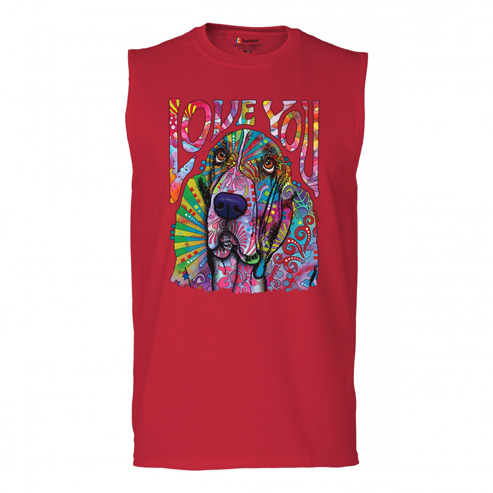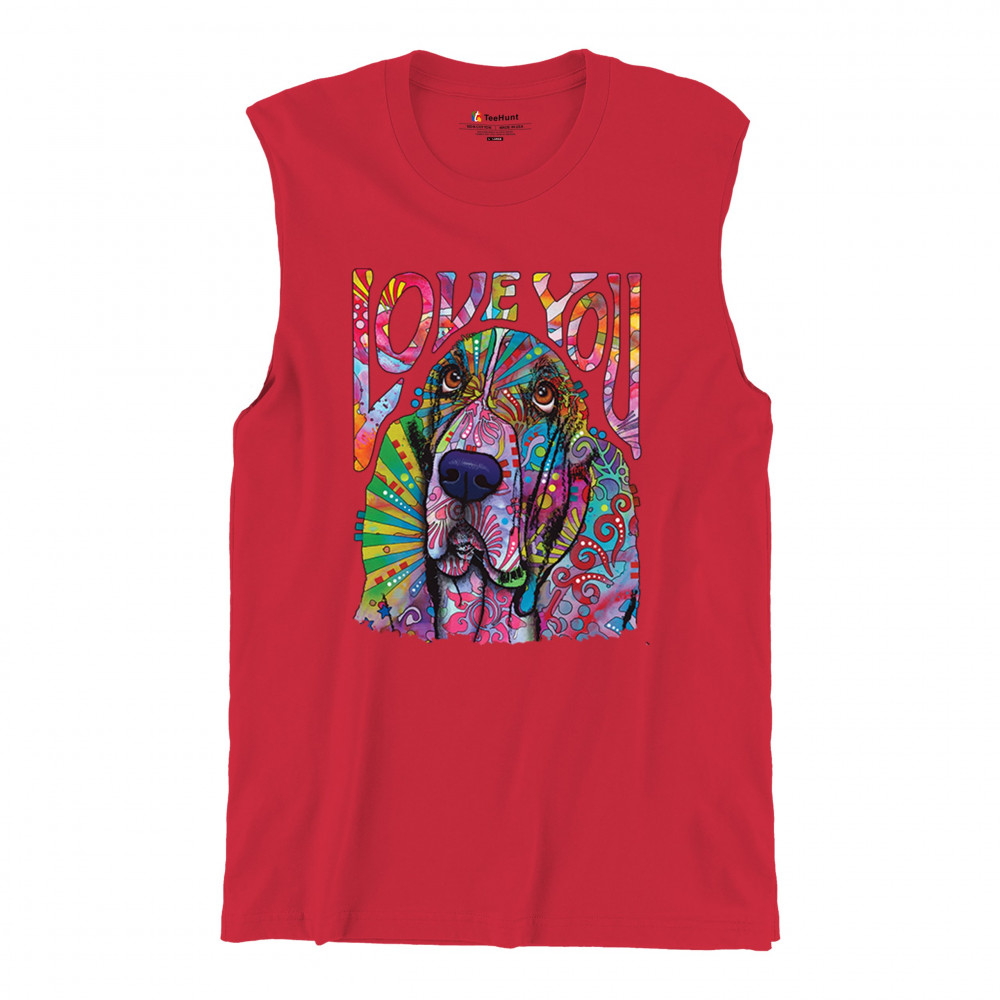 DEAN RUSSO CUTE LOVE YOU BASSET muscle shirt colorful dog neon pet men's red
