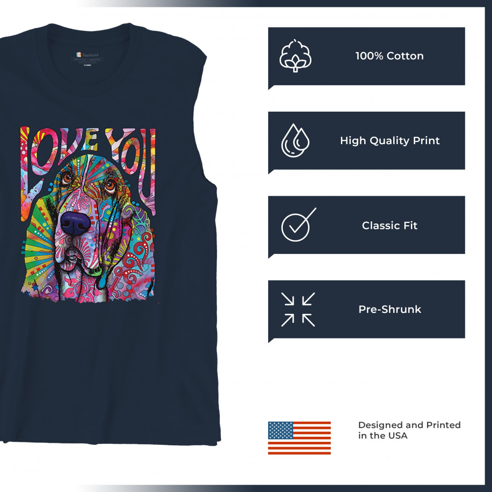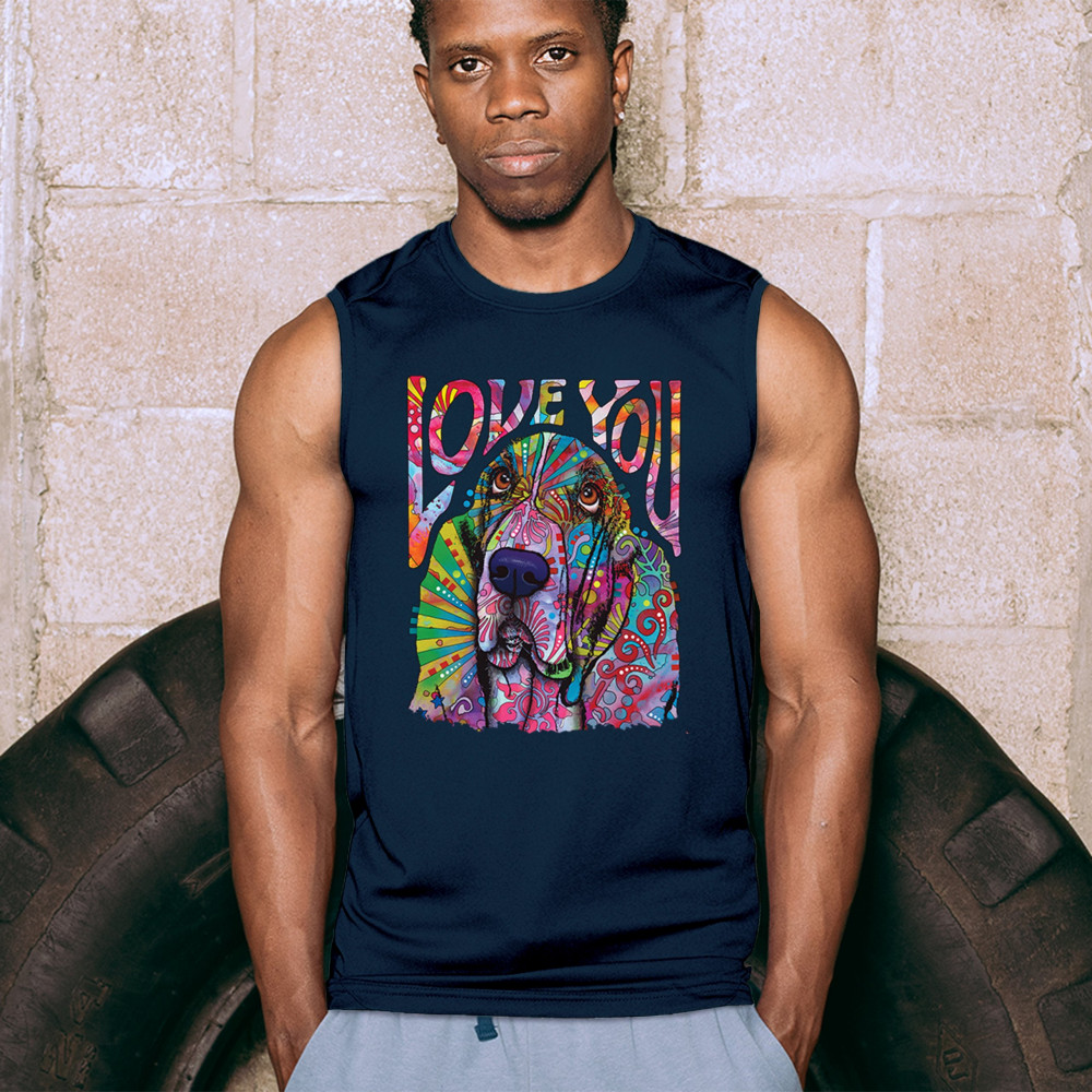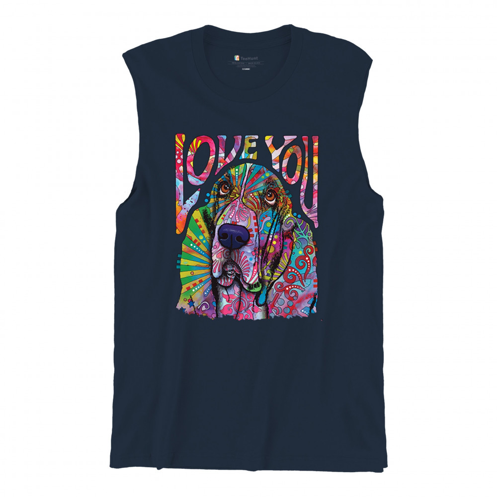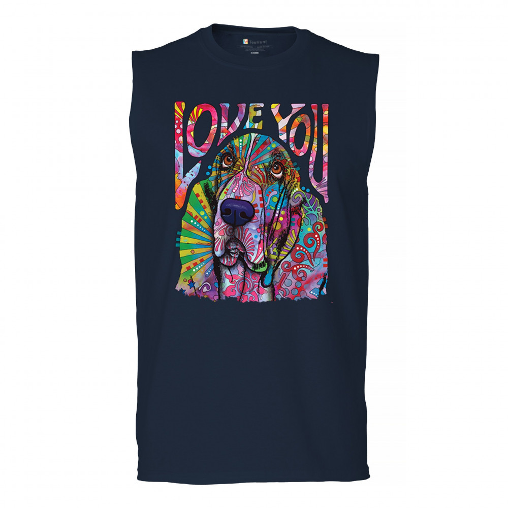 DEAN RUSSO CUTE LOVE YOU BASSET muscle shirt colorful dog neon pet men's navy blue
