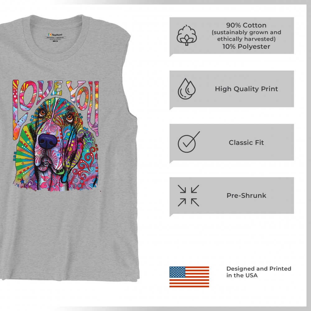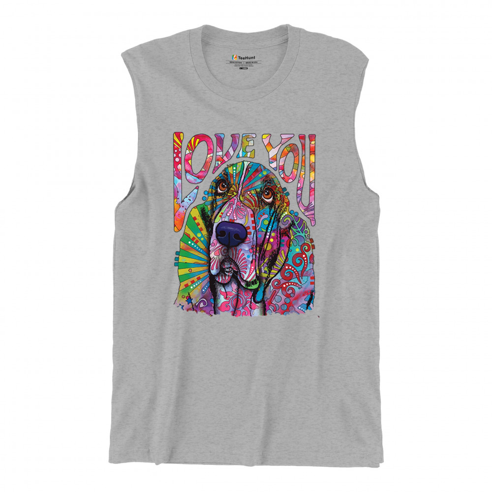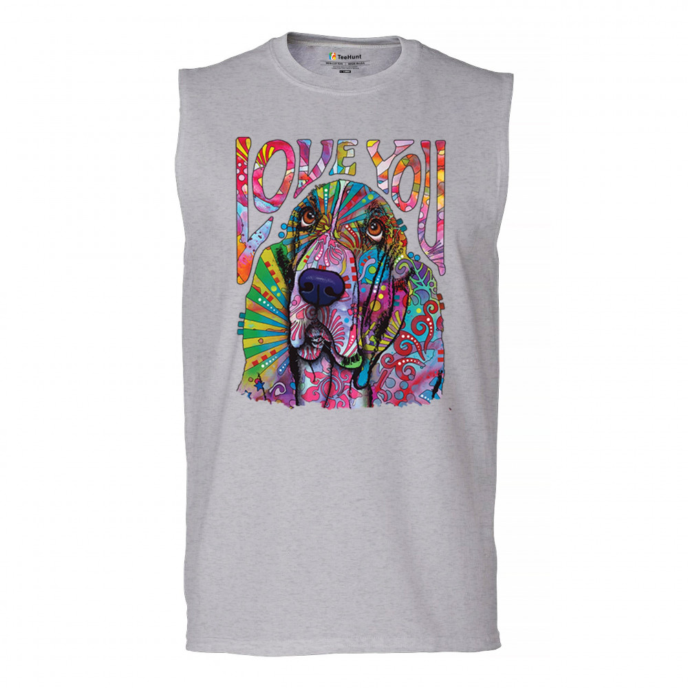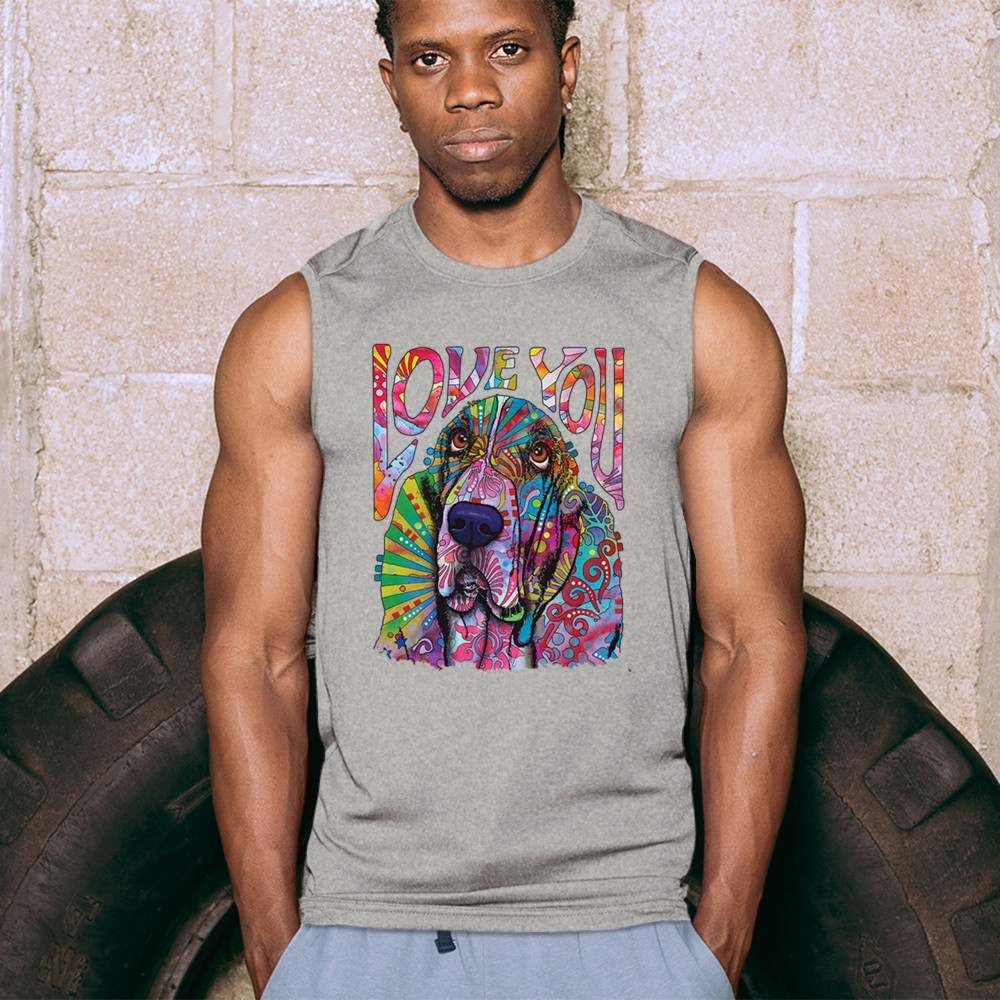 DEAN RUSSO CUTE LOVE YOU BASSET muscle shirt colorful dog neon pet men's gray