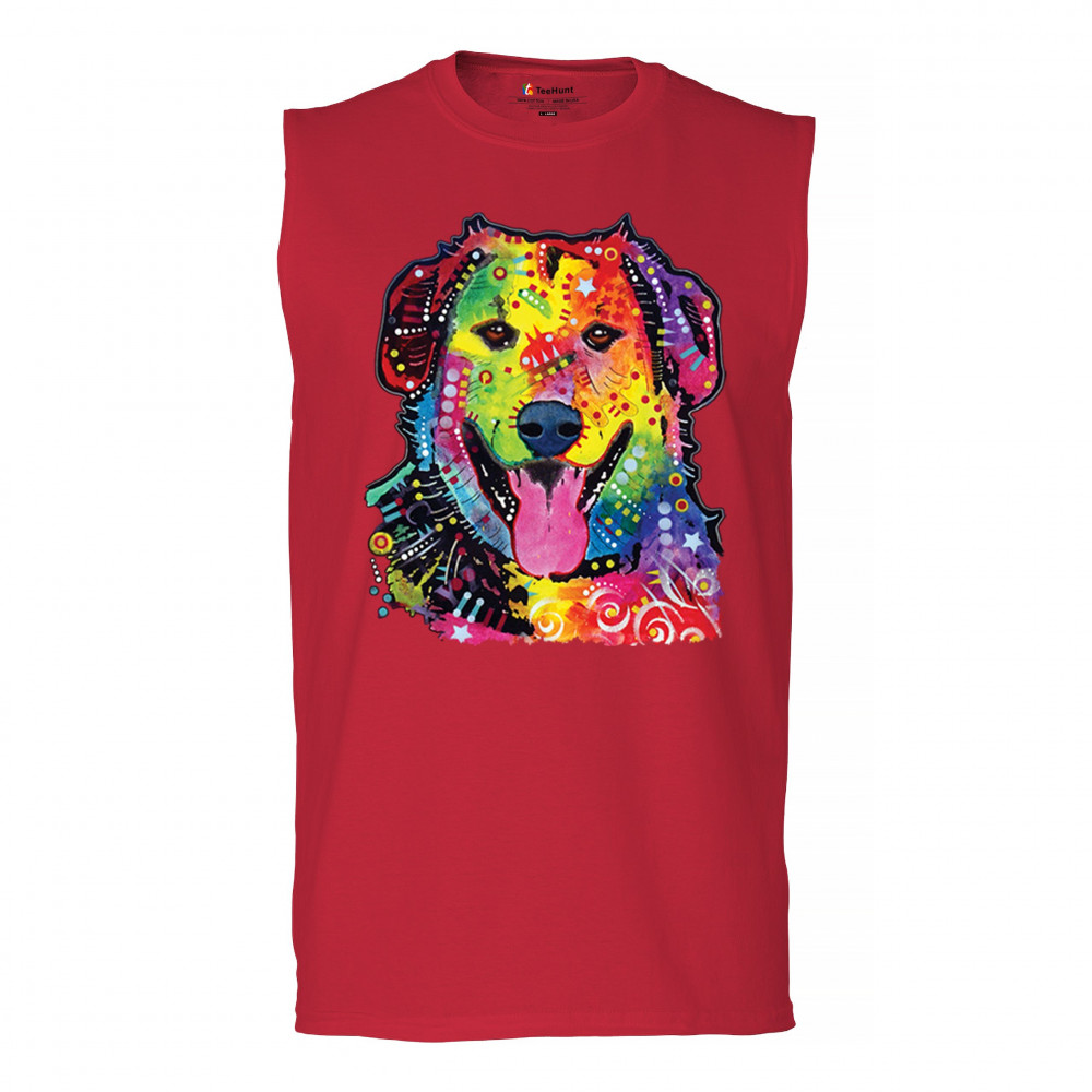 DEAN RUSSO CUTE NEON DOG muscle shirt rescue adopt a pet colorful pet men's red