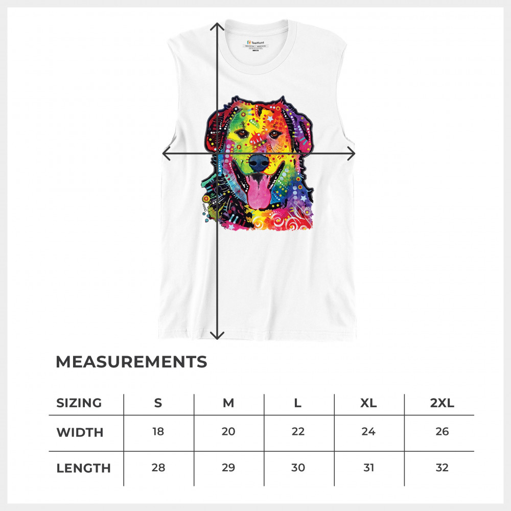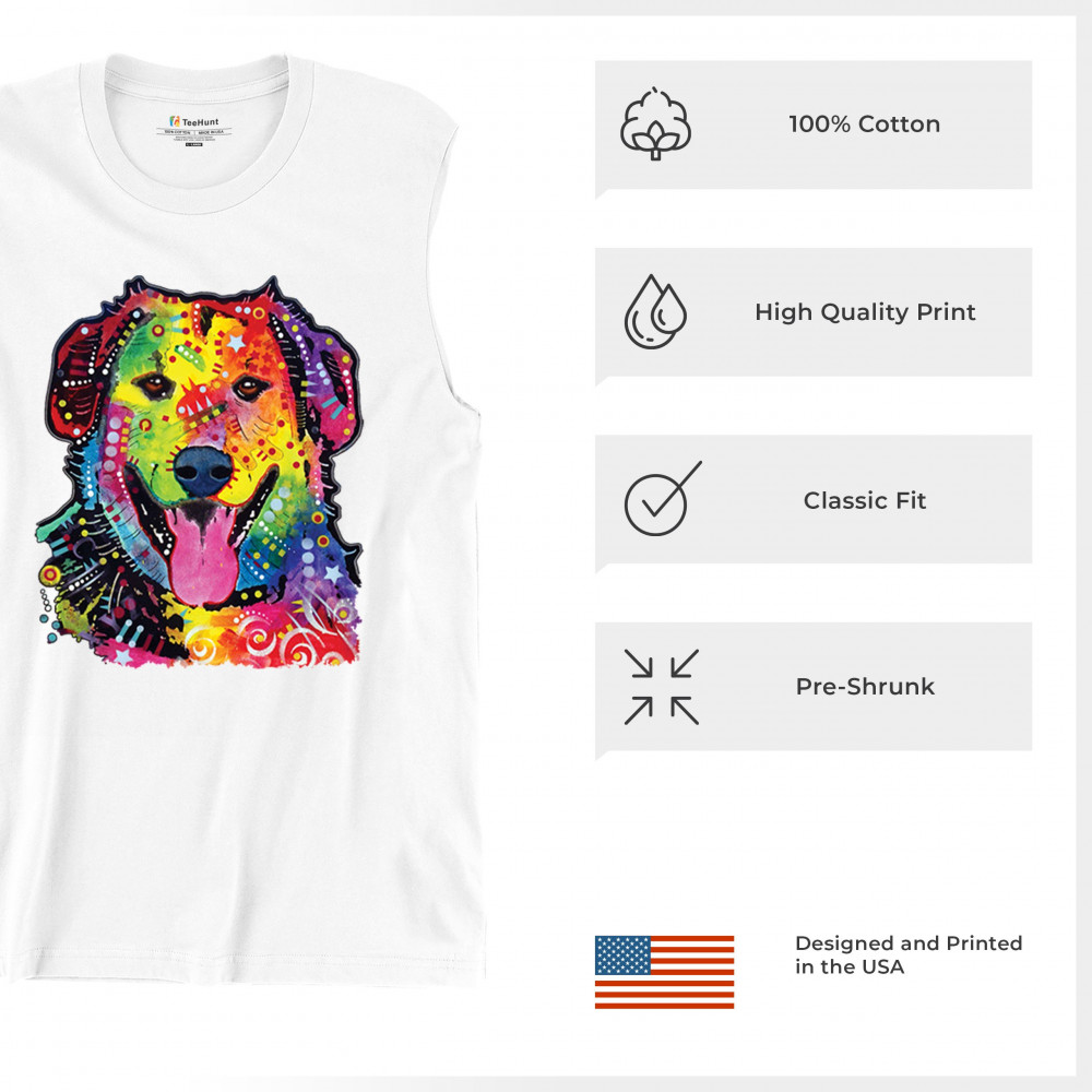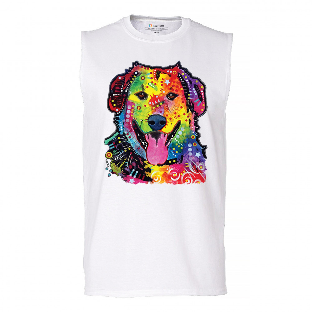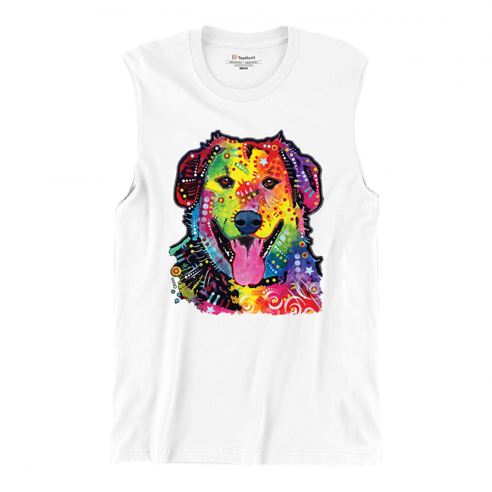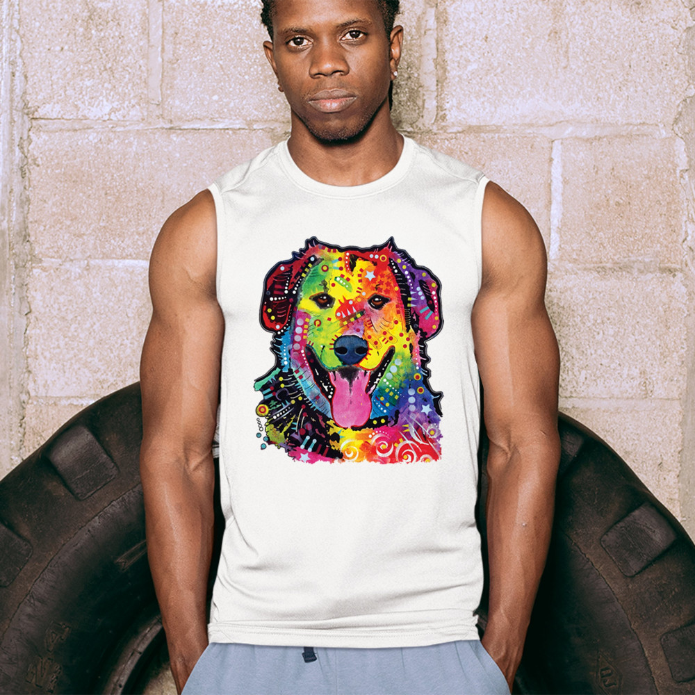 DEAN RUSSO CUTE NEON DOG muscle shirt rescue adopt a pet colorful pet men's white