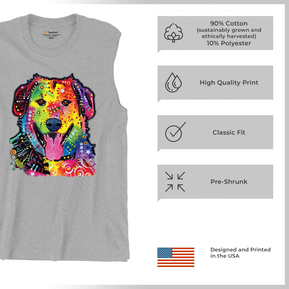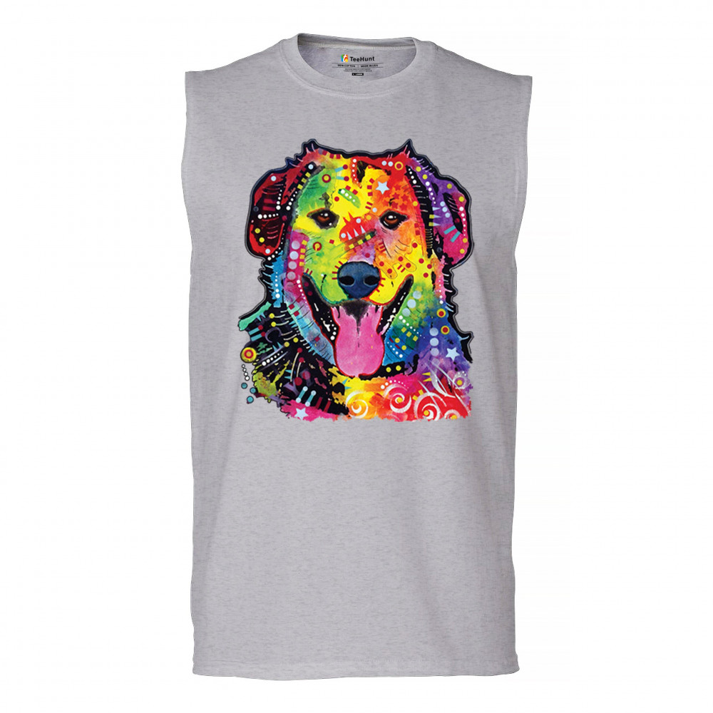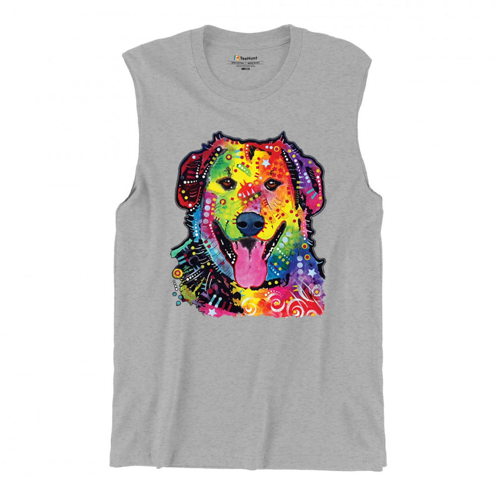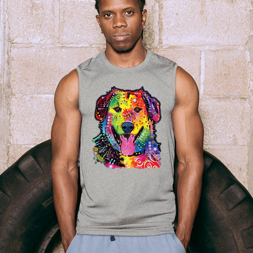 DEAN RUSSO CUTE NEON DOG muscle shirt rescue adopt a pet colorful pet men's gray