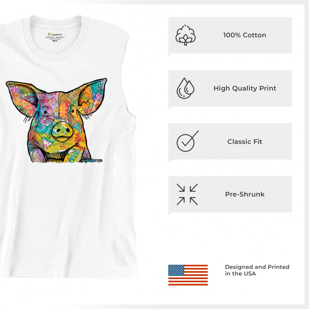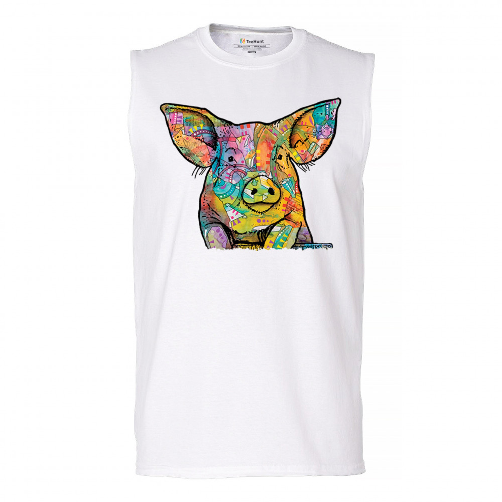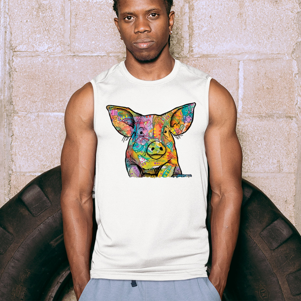 DEAN RUSSO FUNNY CUTE PIG muscle shirt farm piglet lover barn men's white