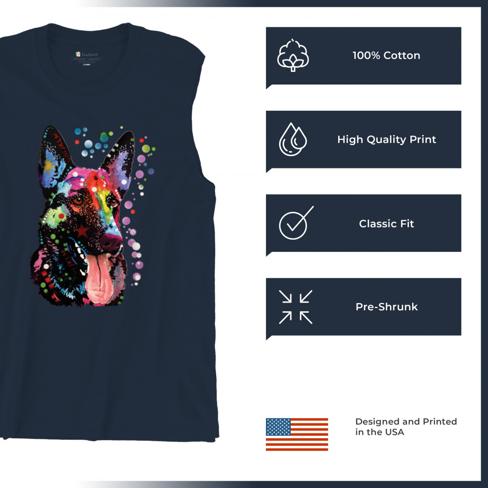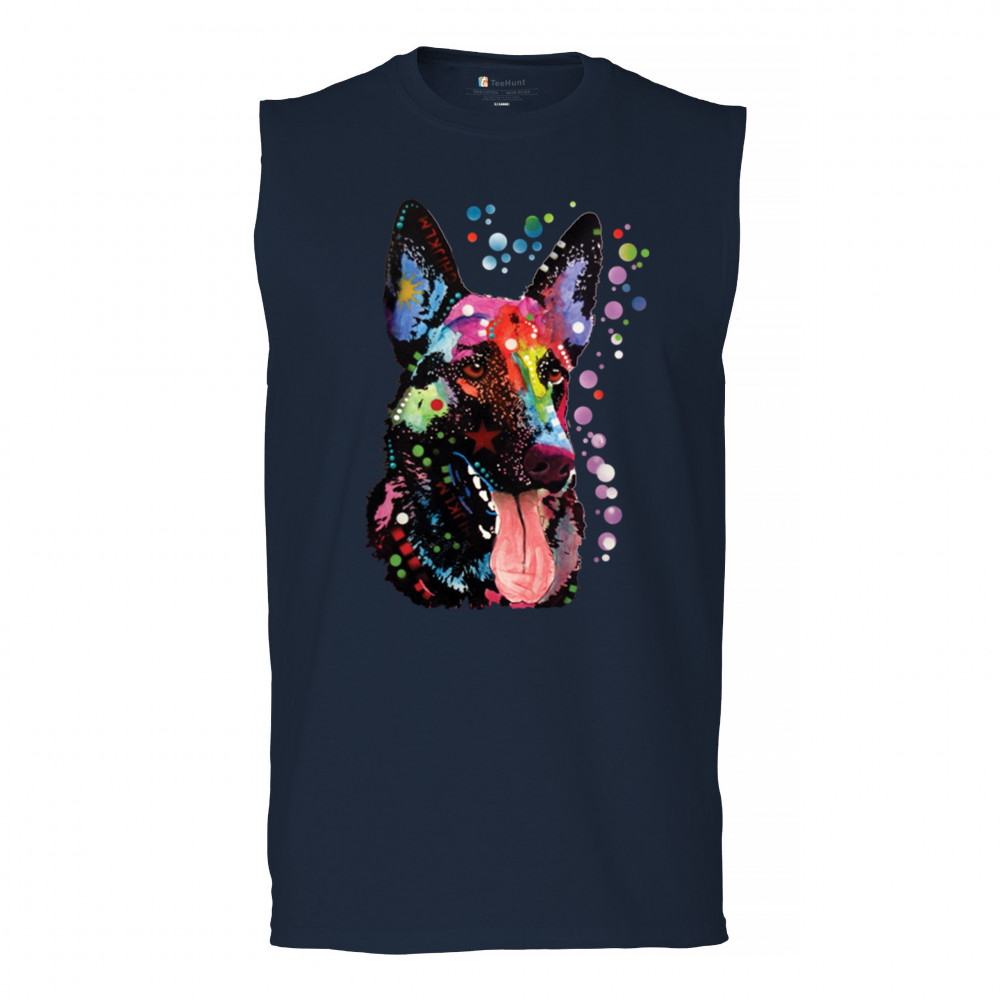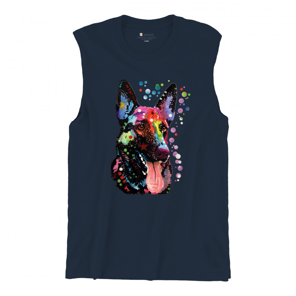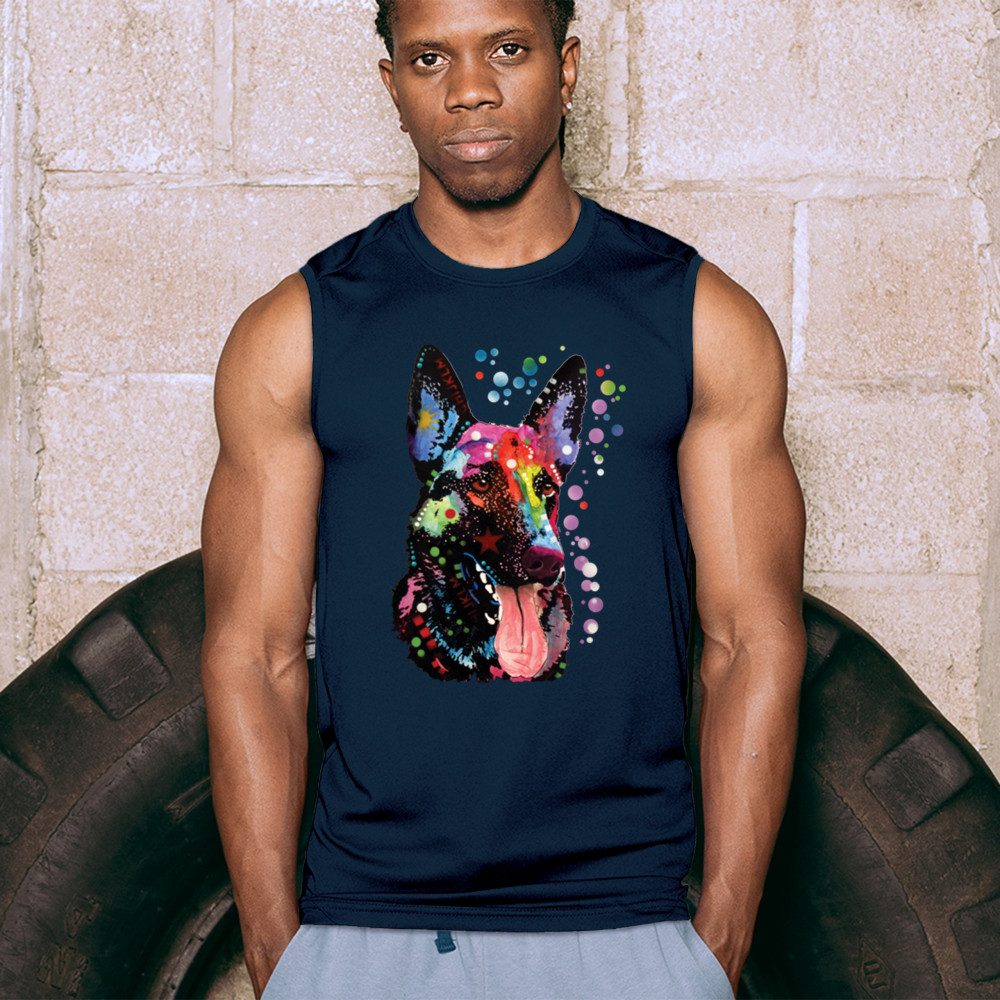 DEAN RUSSO GERMAN SHEPHERD muscle shirt colorful dog best friend men's navy blue