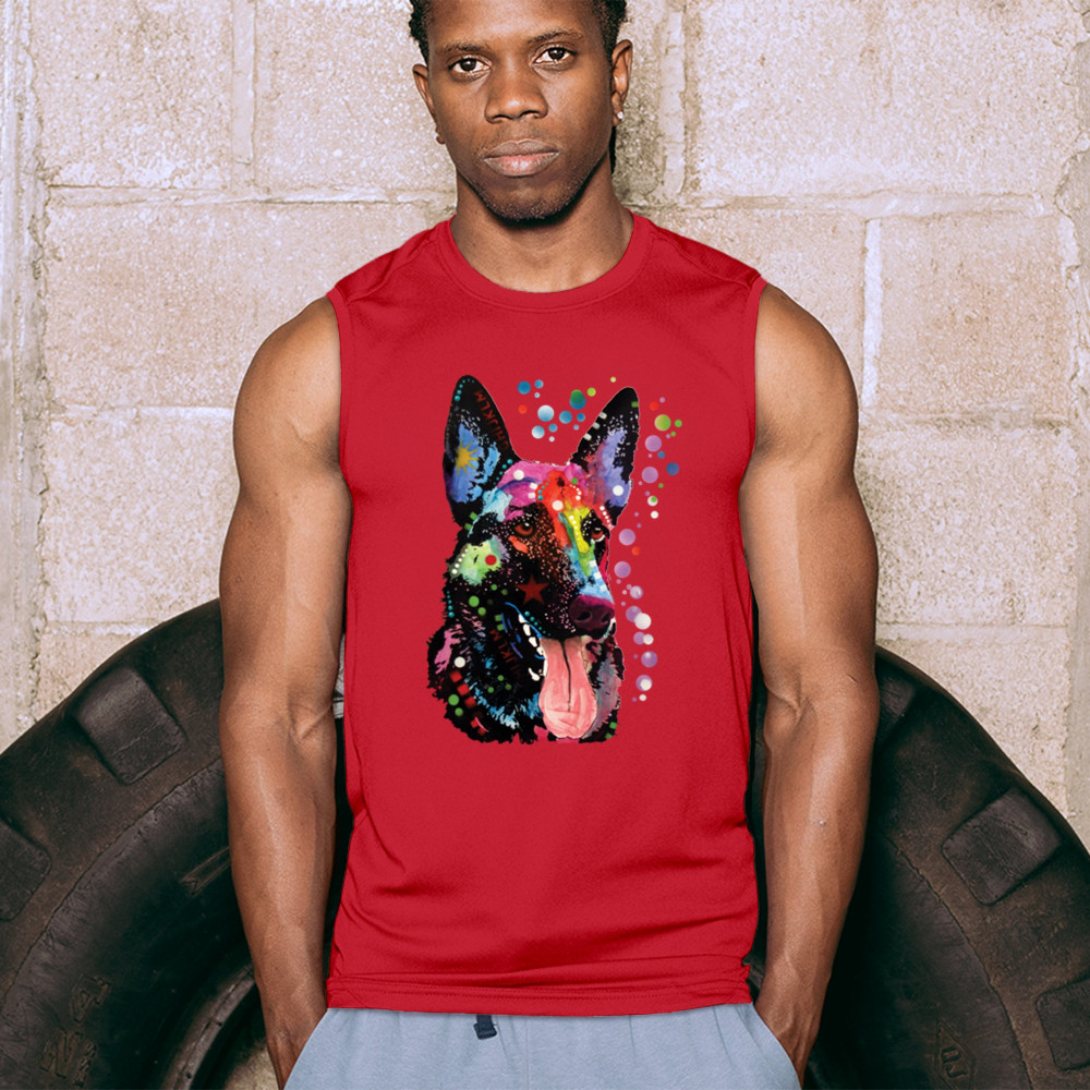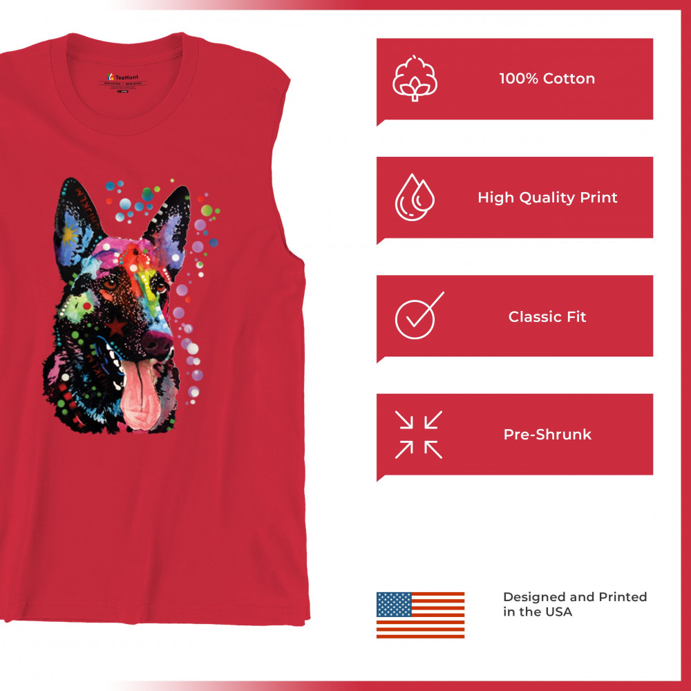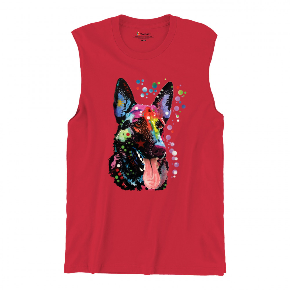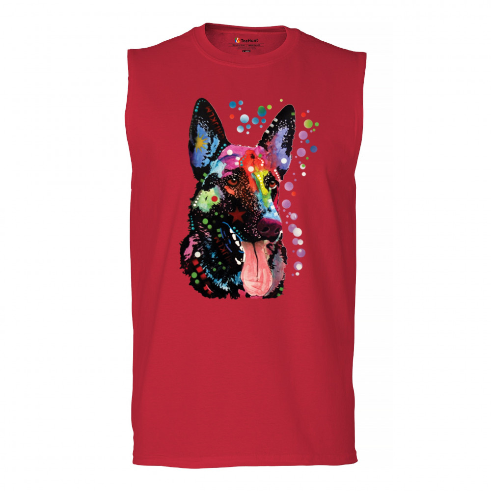 DEAN RUSSO GERMAN SHEPHERD muscle shirt colorful dog best friend men's red
