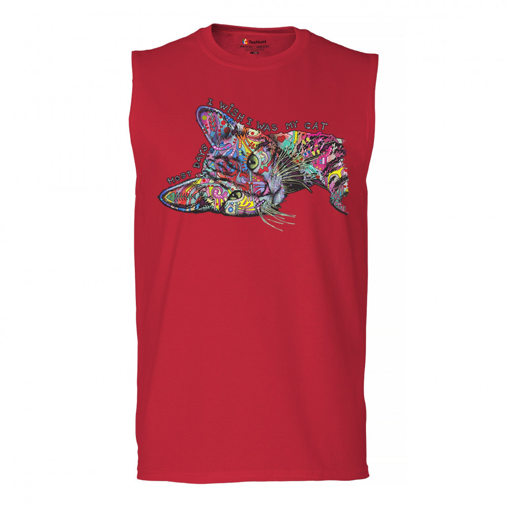 DEAN RUSSO MOST DAYS I WISH I WAS MY CAT muscle shirt cute kitten meow men's red