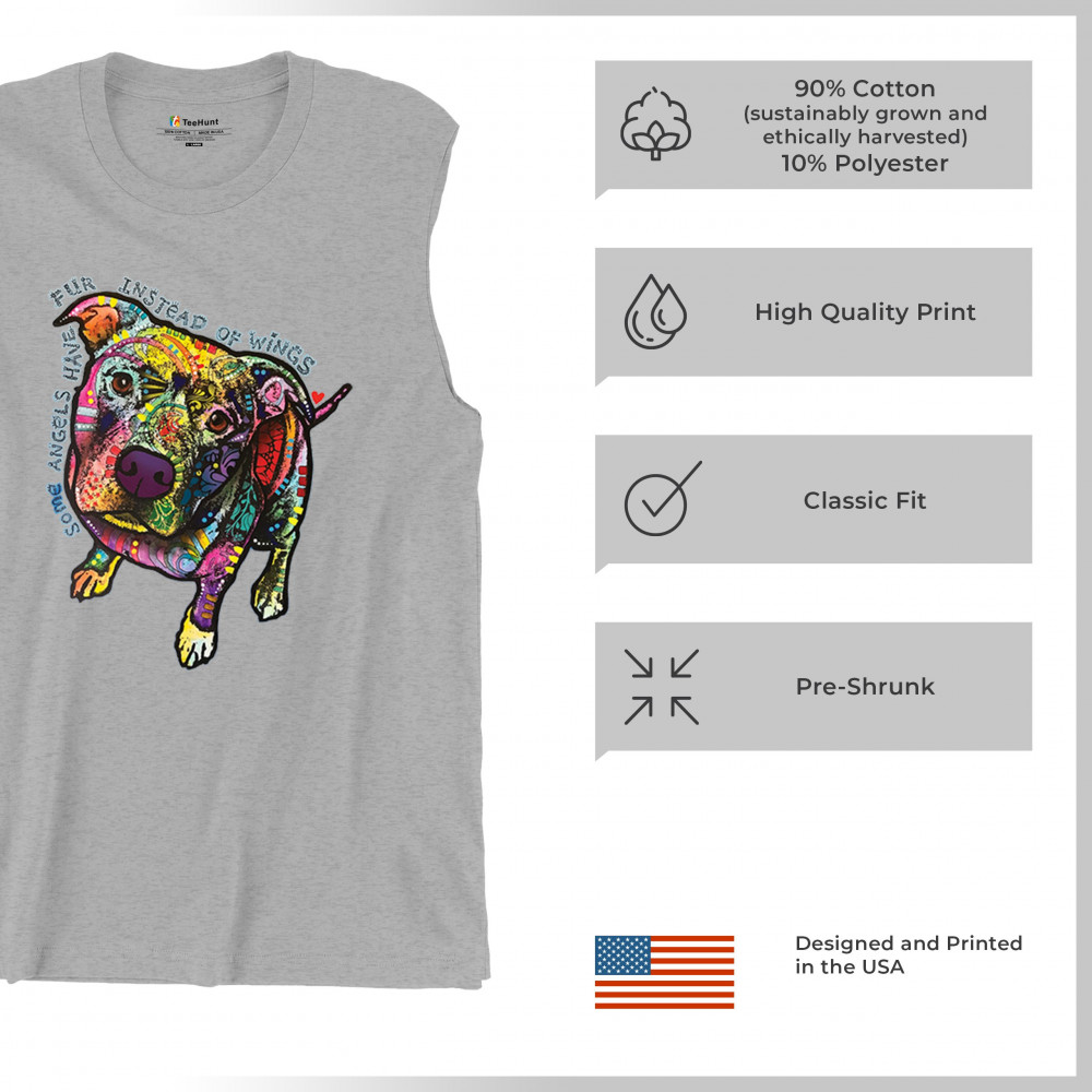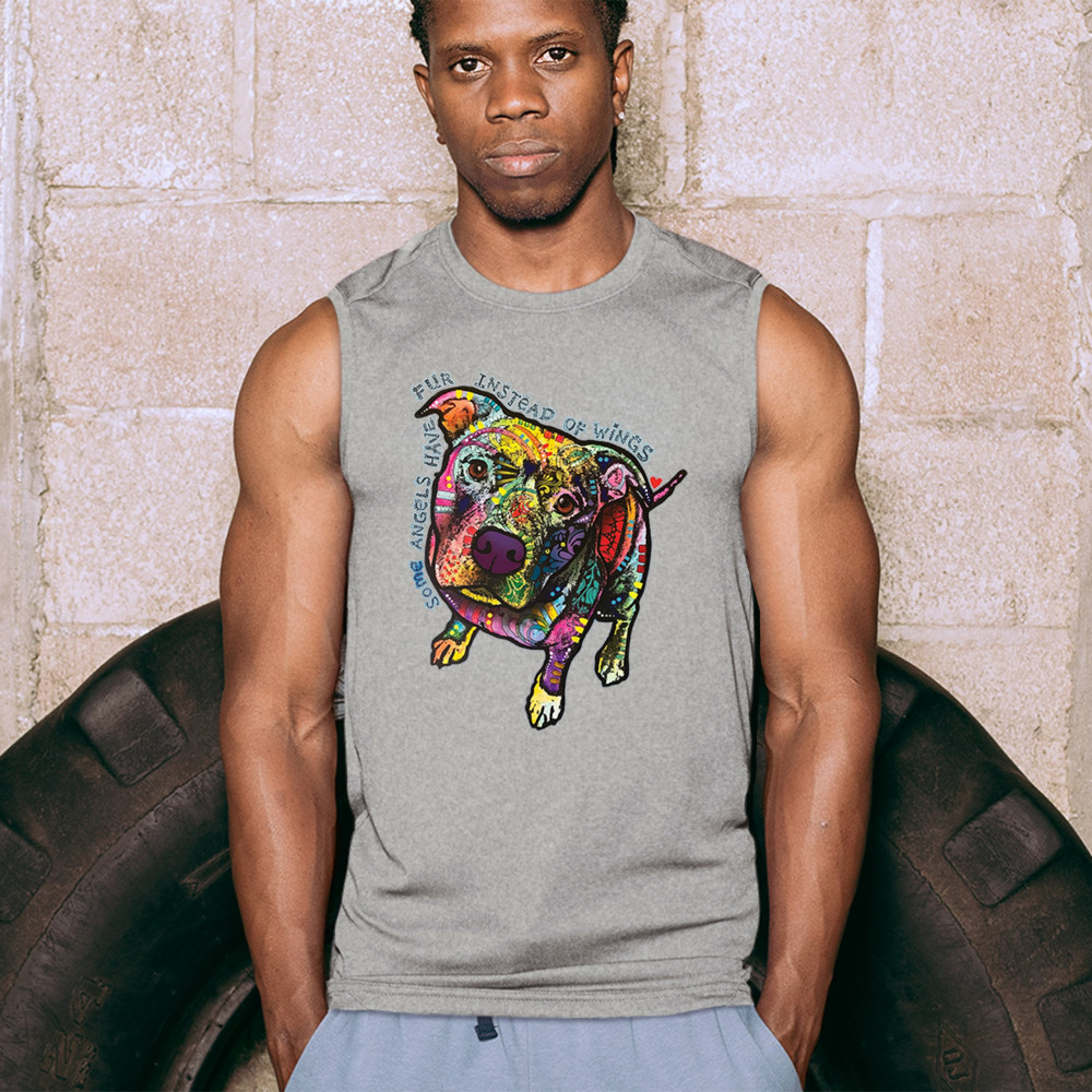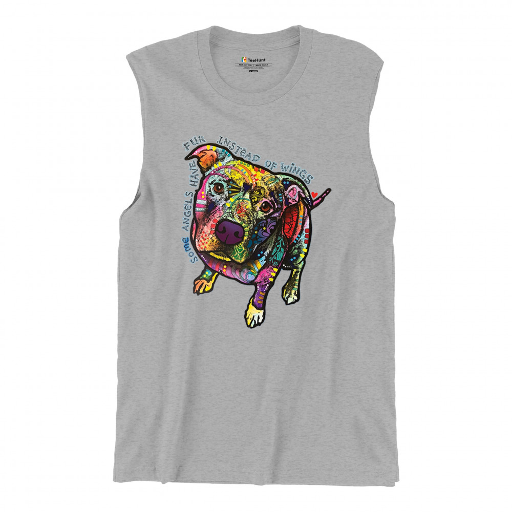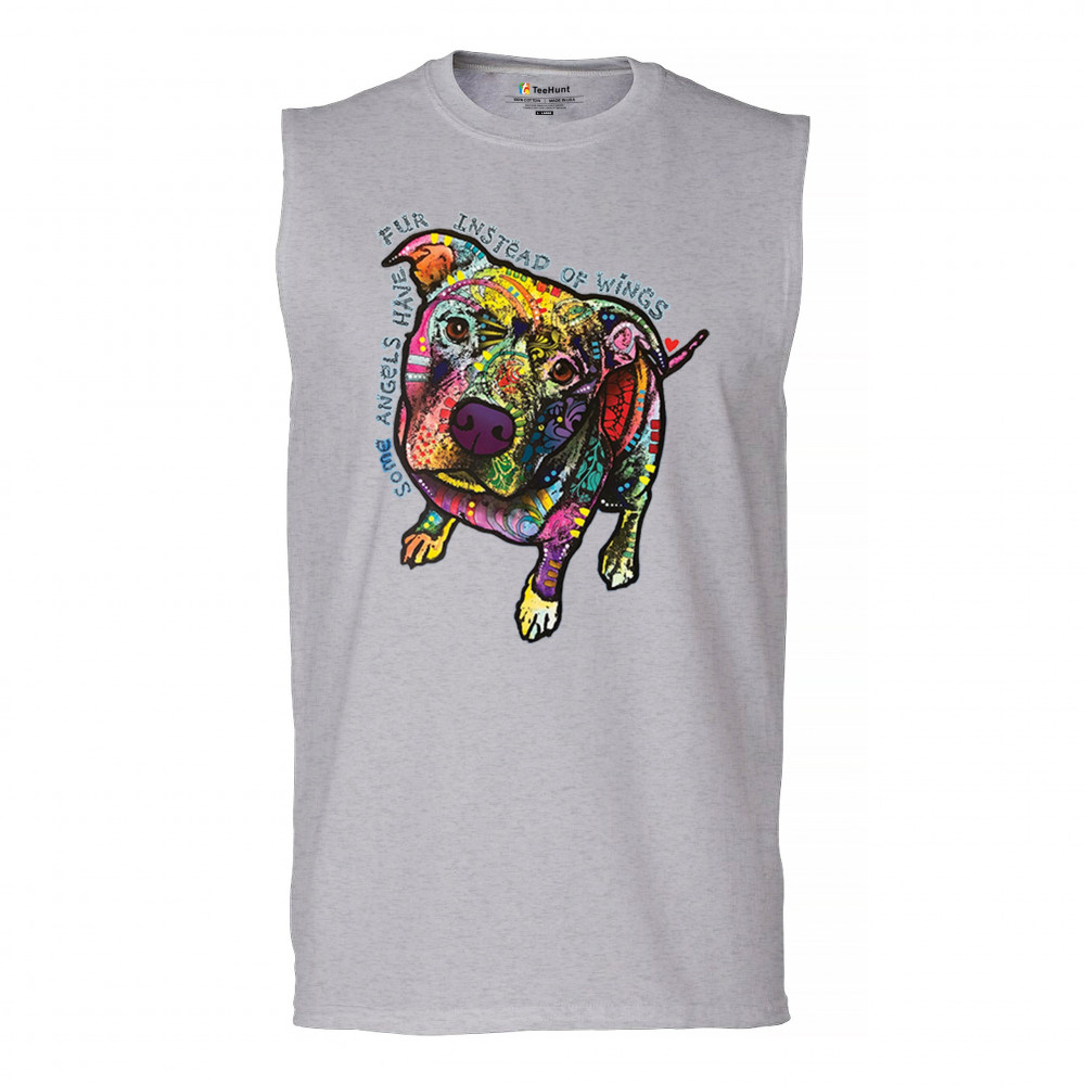DEAN RUSSO PIT BULL muscle shirt some angels have fur instead of wings men's gray
