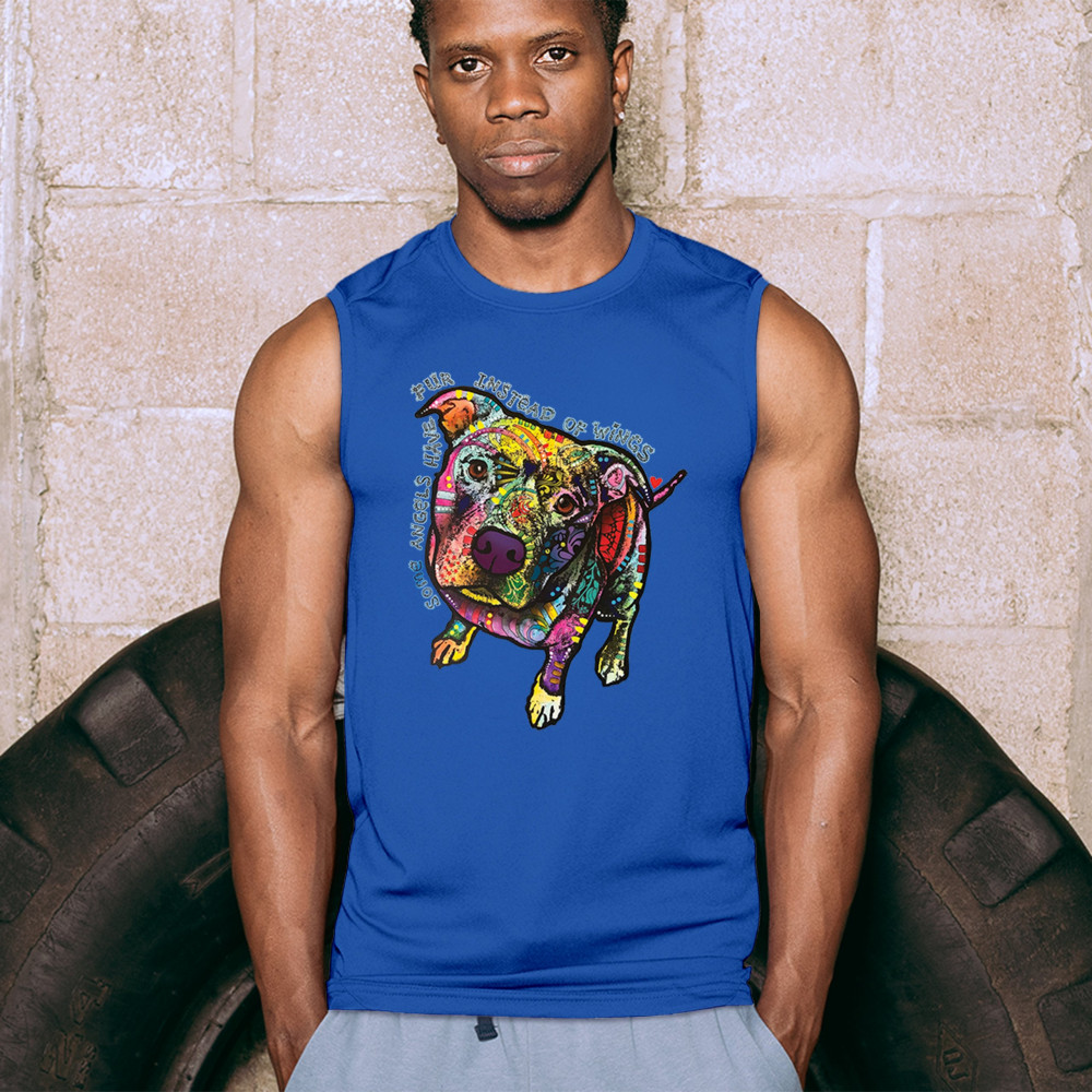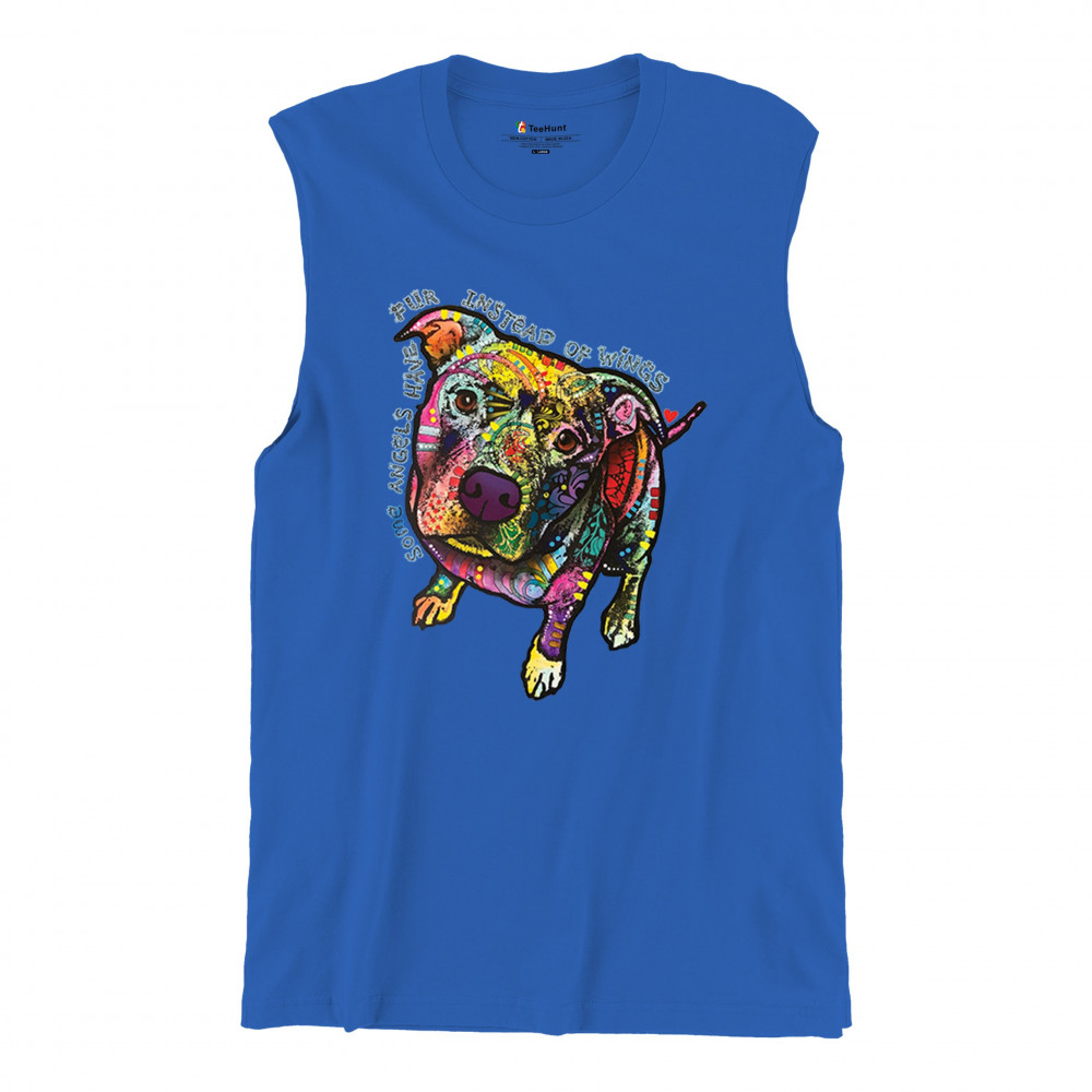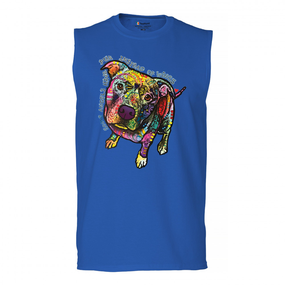 DEAN RUSSO PIT BULL muscle shirt some angels have fur instead of wings men's royal blue