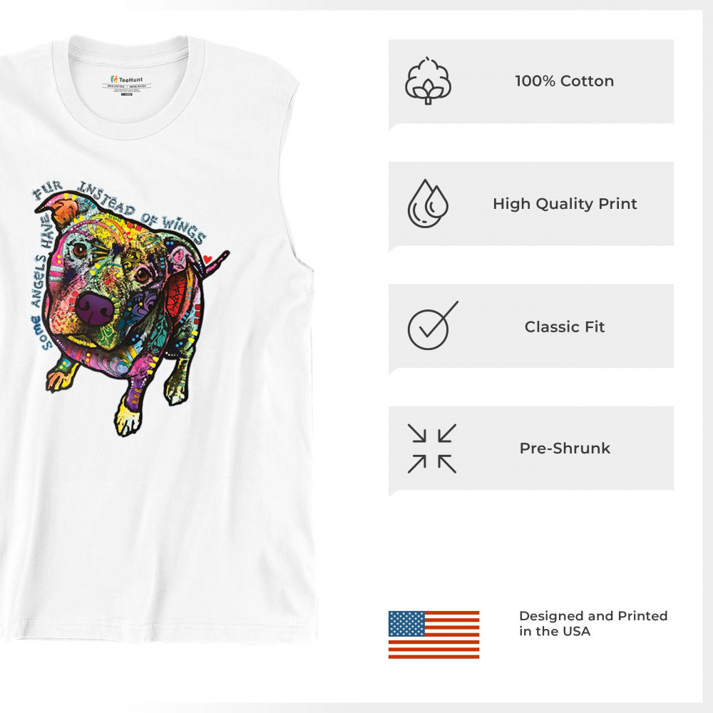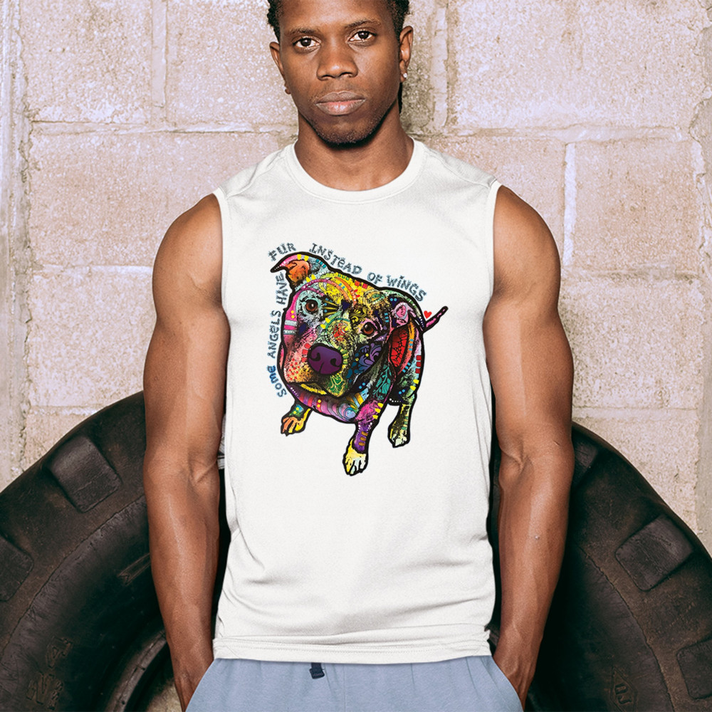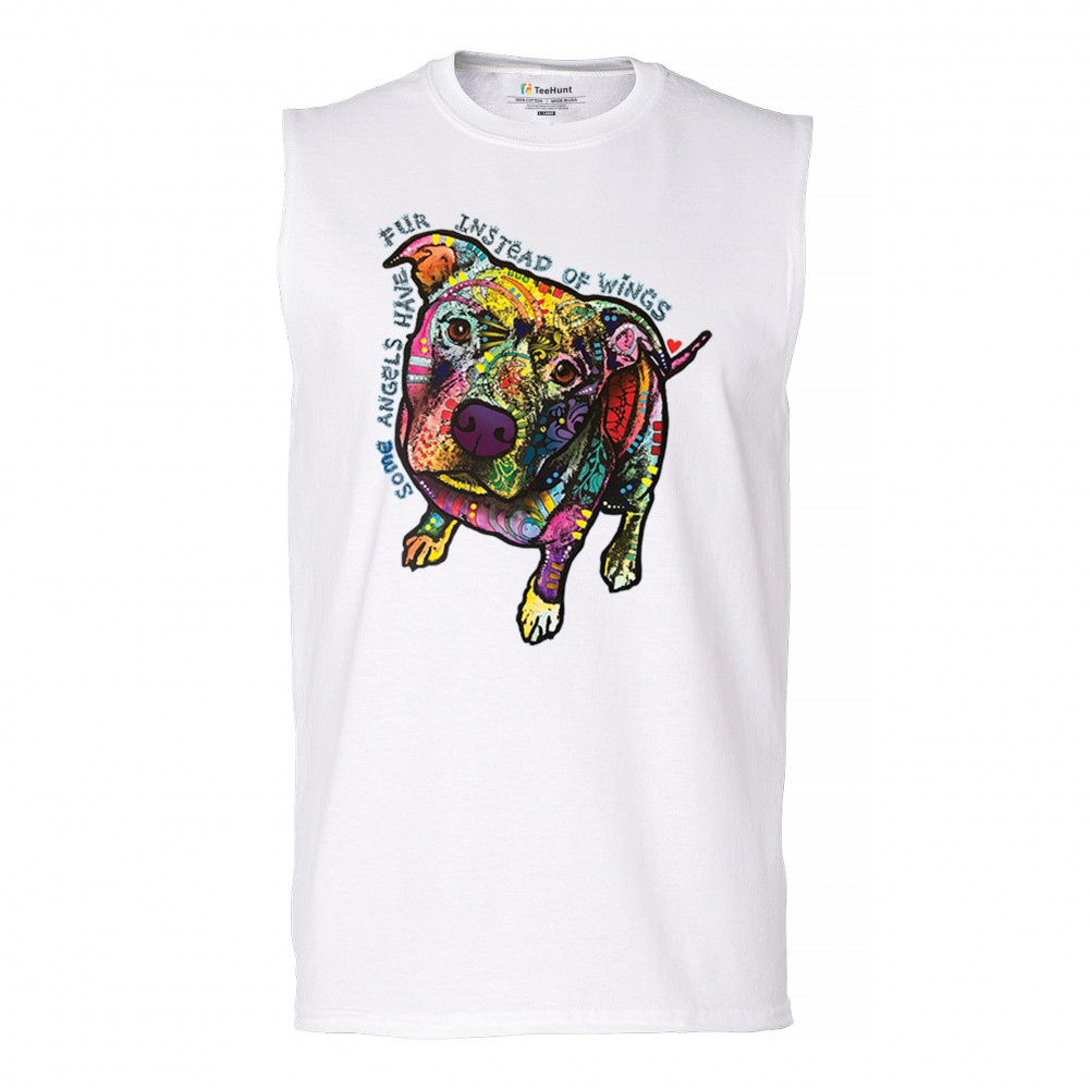 DEAN RUSSO PIT BULL muscle shirt some angels have fur instead of wings men's white