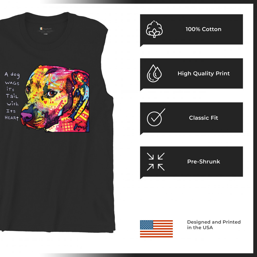 DEAN RUSSO PIT BULL muscle shirt dog wags its tail with its heart men's black