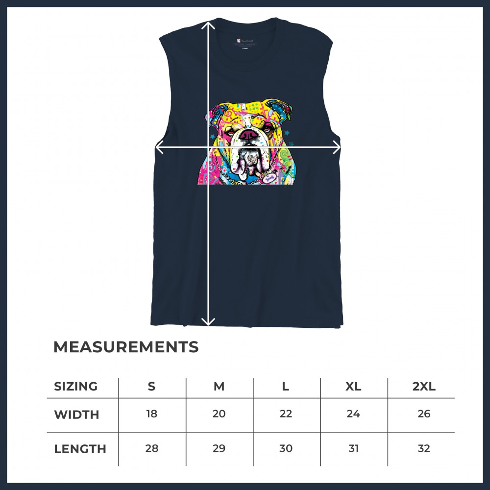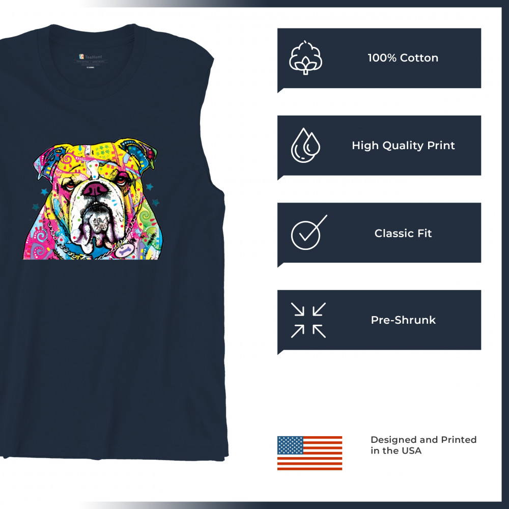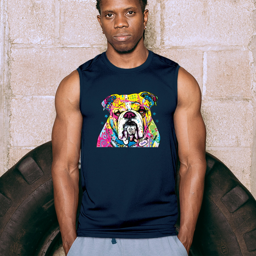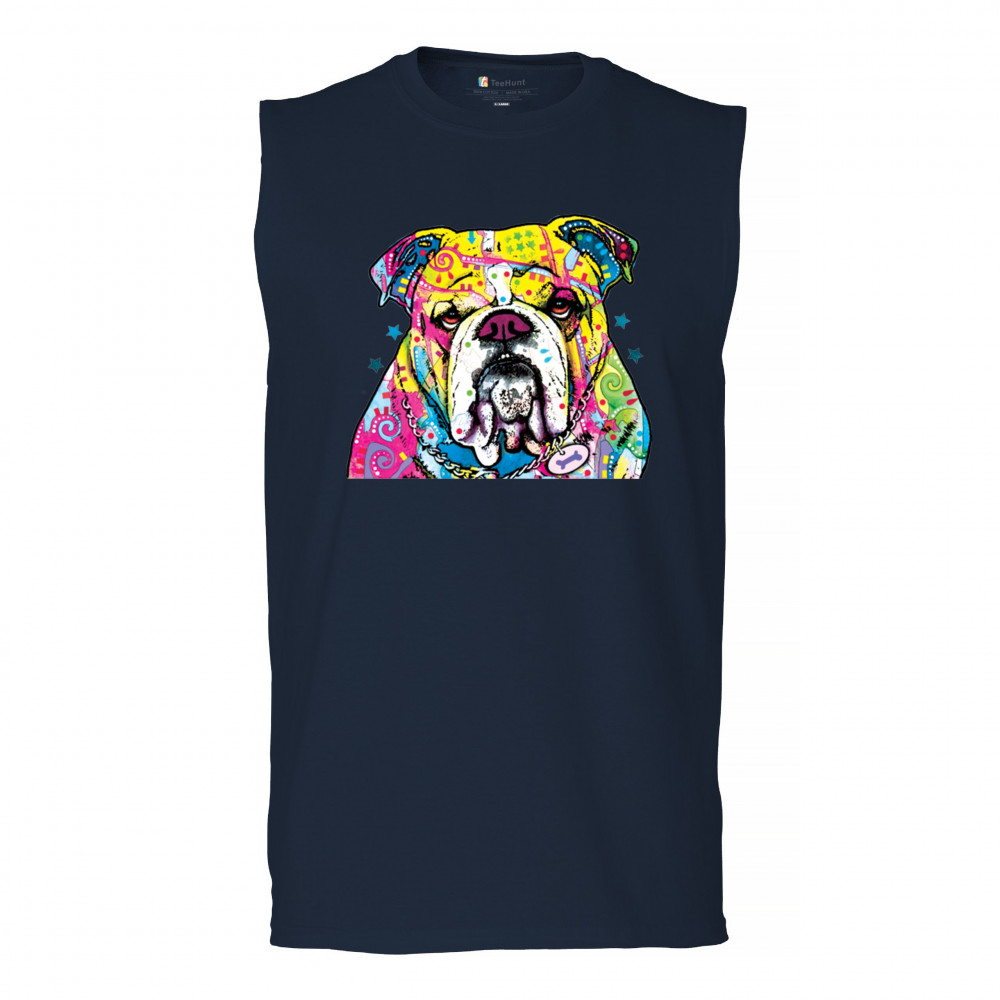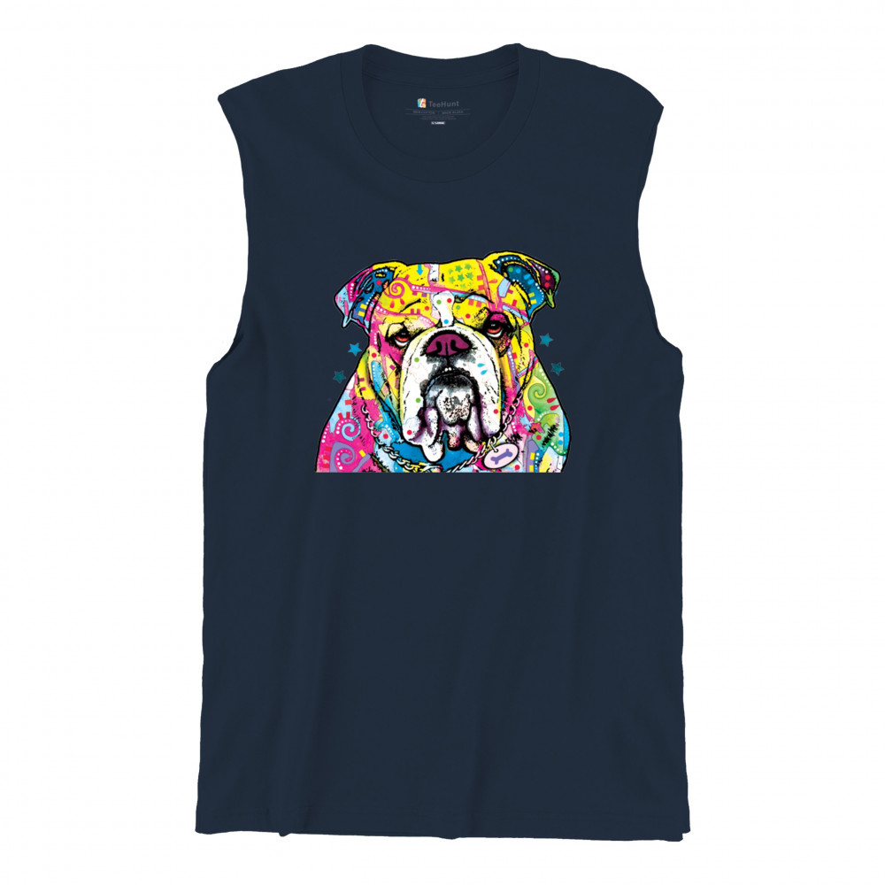 DEAN RUSSO SERIOUS BULLDOG muscle shirt colorful dog best friend men's navy blue