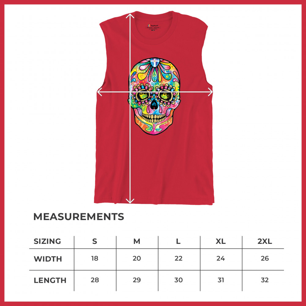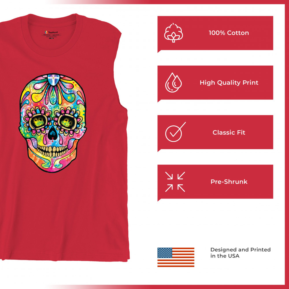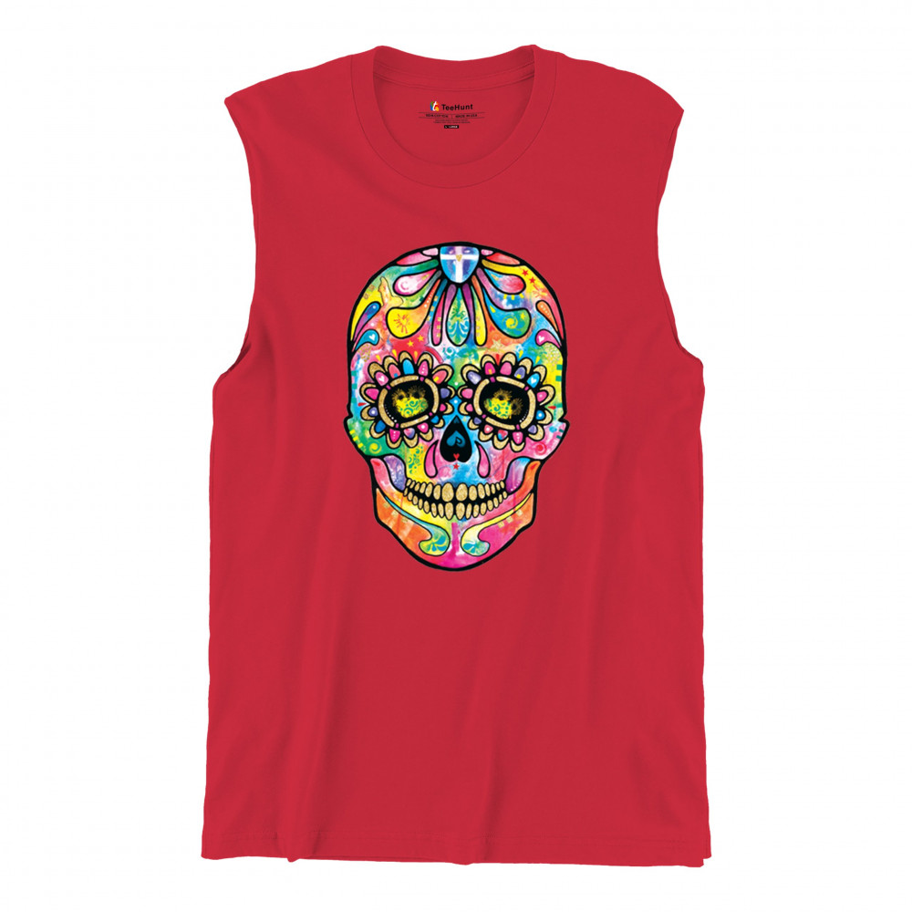 DEAN RUSSO SUGAR SKULL muscle shirt day of the dead neon calavera men's red