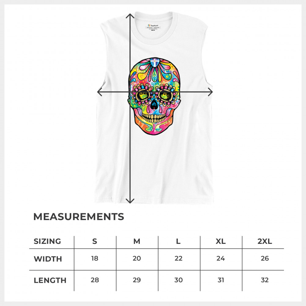 DEAN RUSSO SUGAR SKULL muscle shirt day of the dead neon calavera men's white