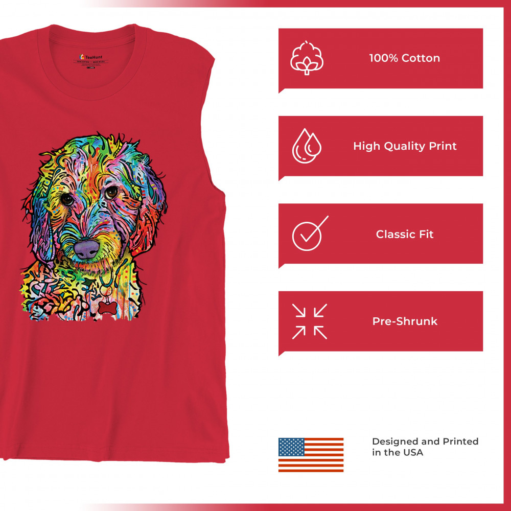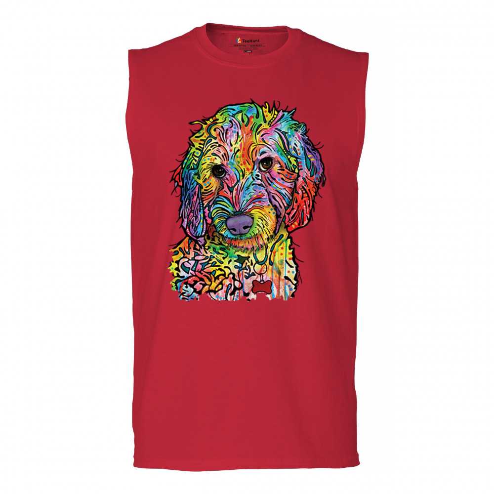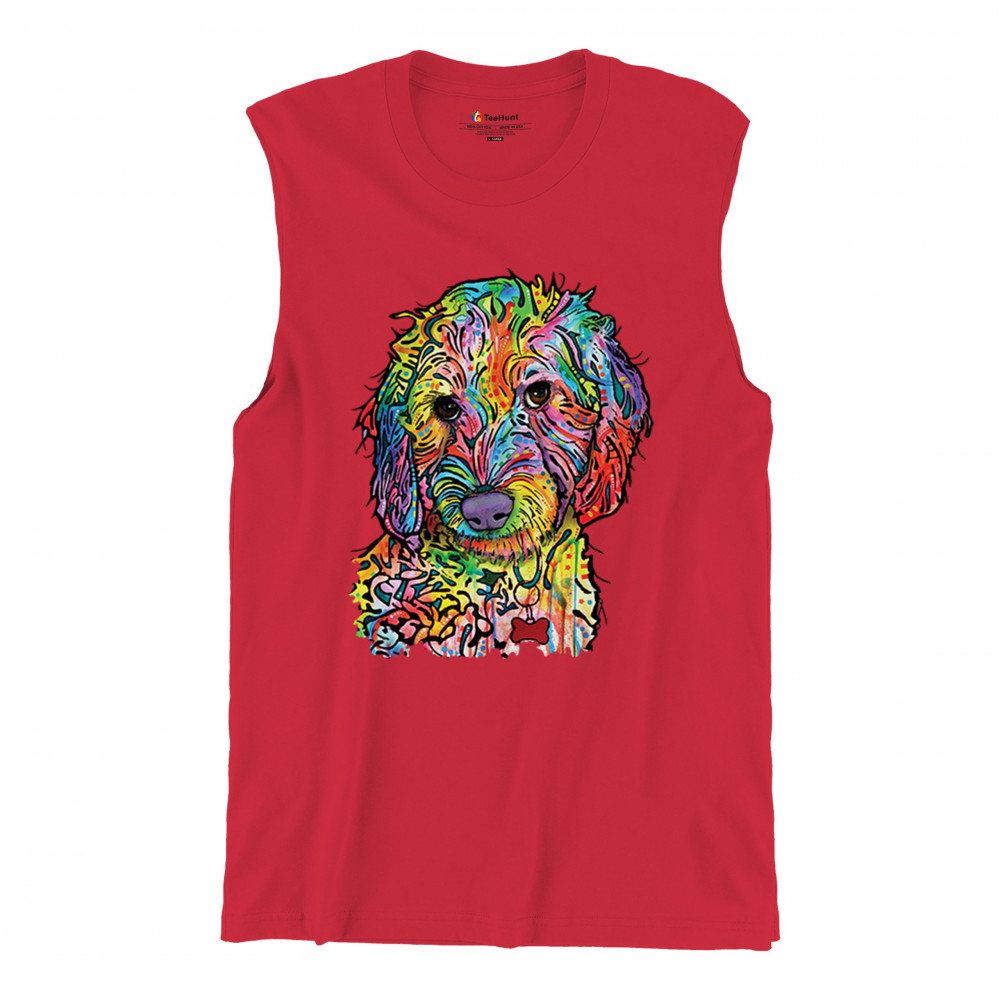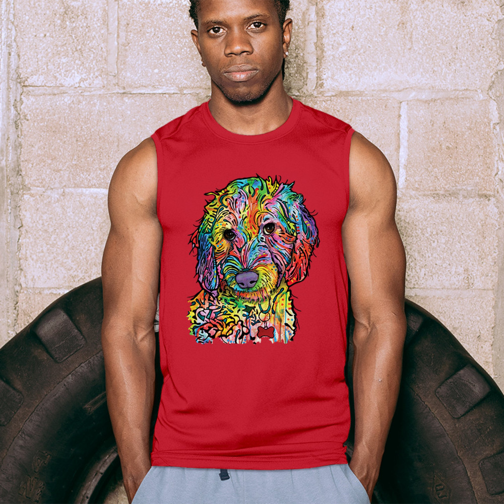 DEAN RUSSO SWEET POODLE muscle shirt dog pattern puppy adopt pet men's red