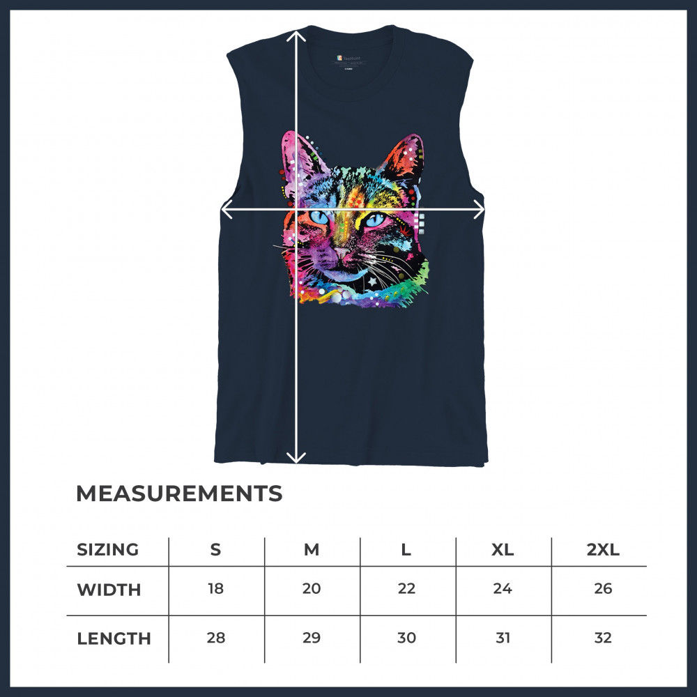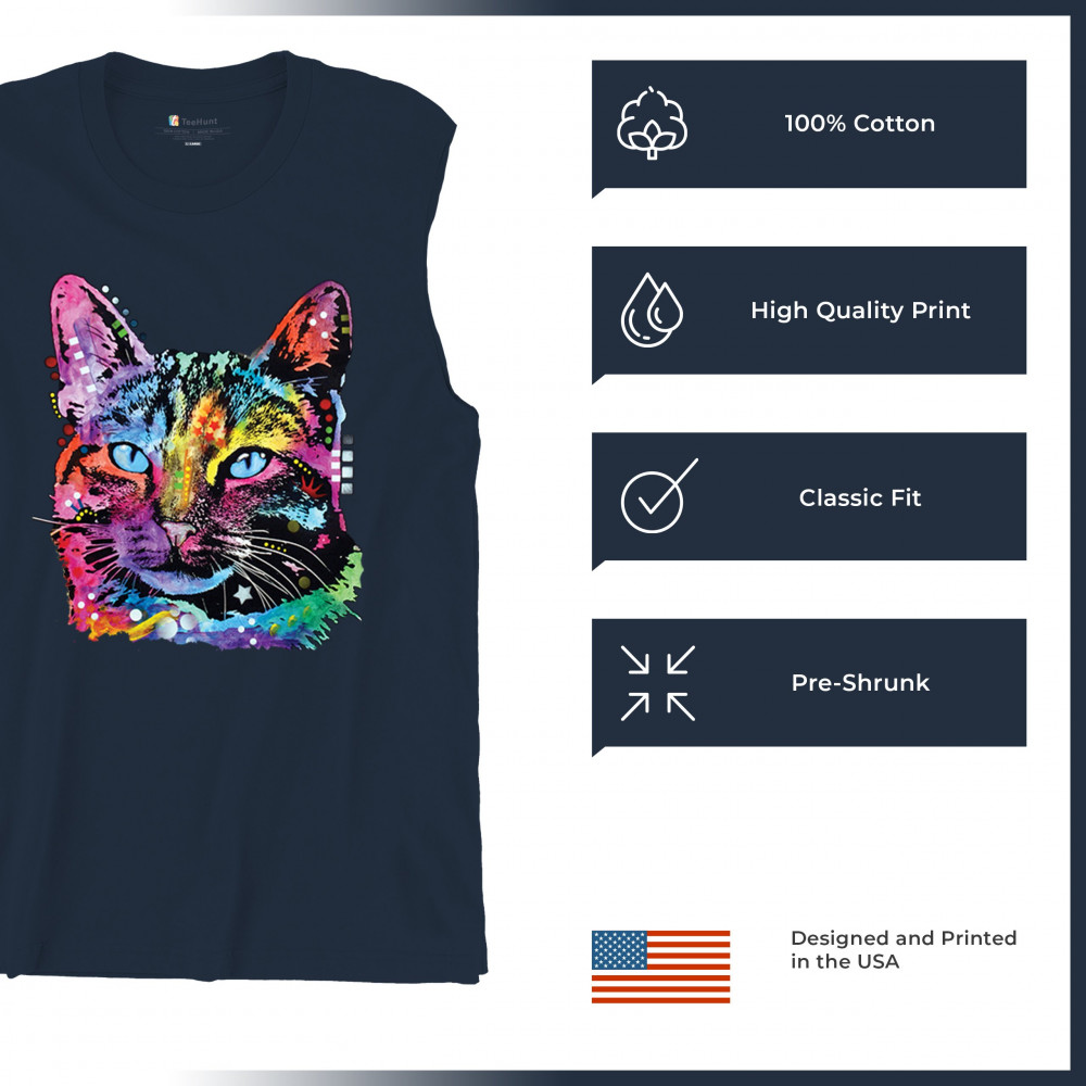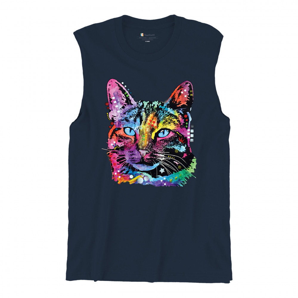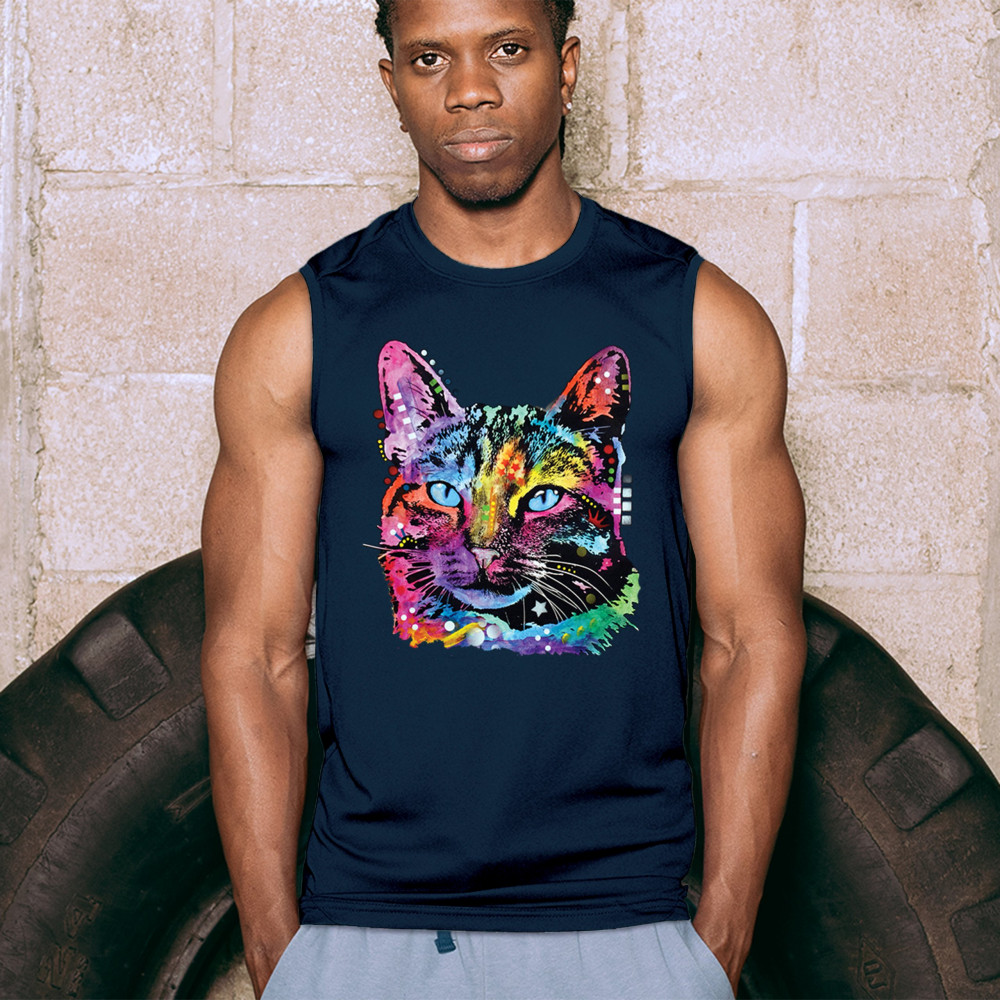 DEAN RUSSO THOUGHTFUL CAT muscle shirt colorful pet kitten eyes men's navy blue