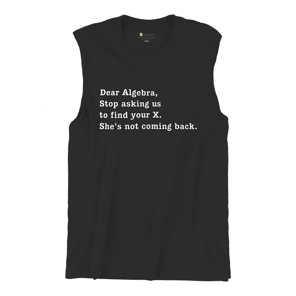 DEAR ALGEBRA STOP ASKING US TO FIND YOUR X muscle shirt funny humor men's black