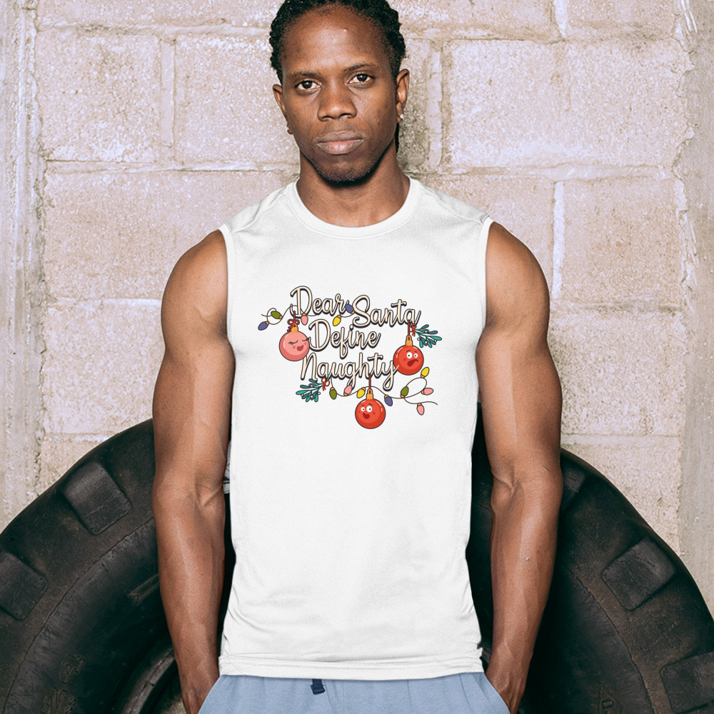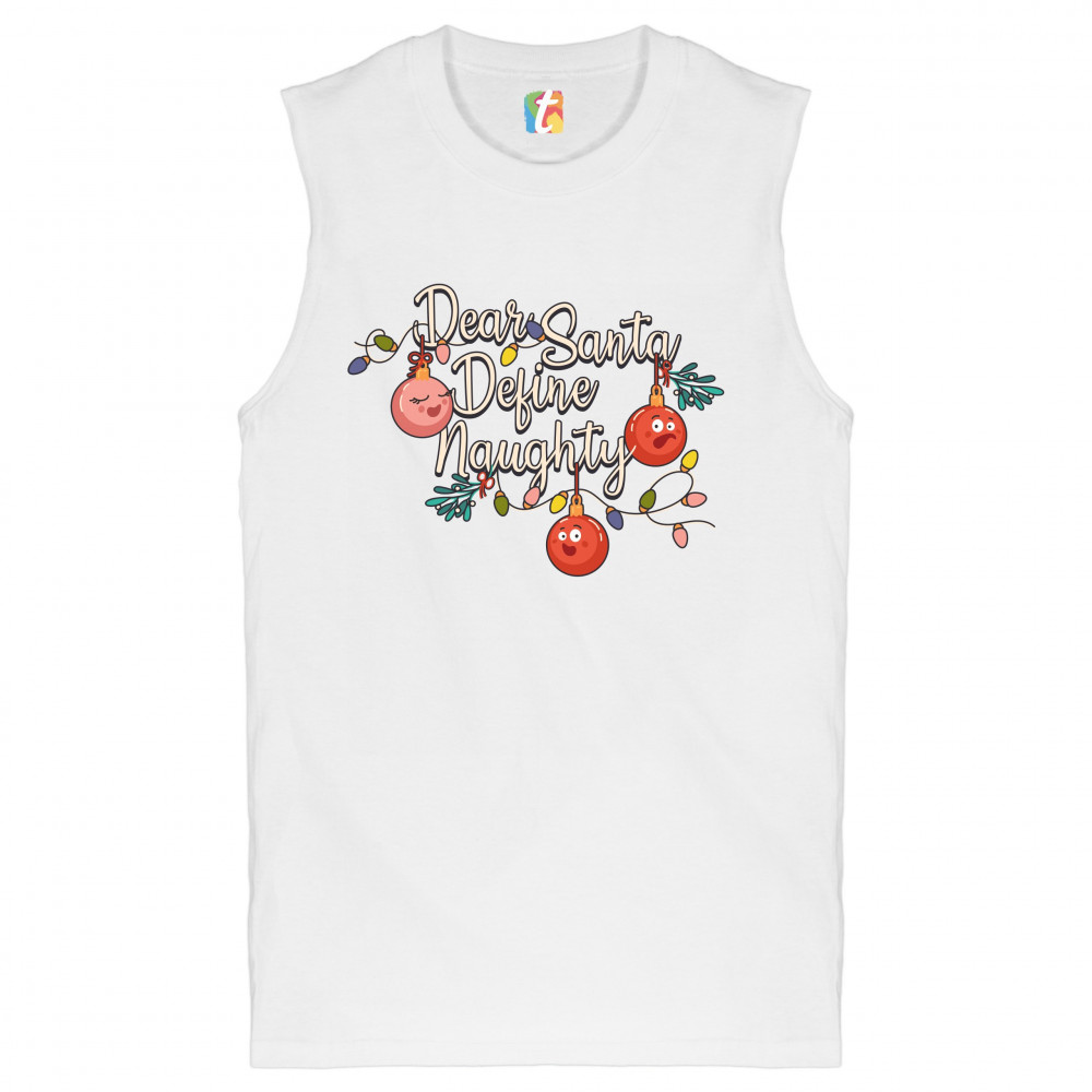 DEAR SANTA DEFINE NAUGHTY muscle shirt merry christmas naughty or nice men's white
