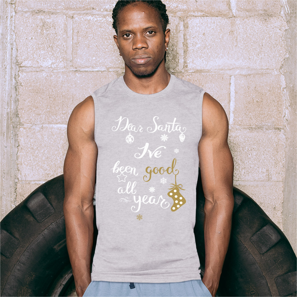 DEAR SANTA I'VE BEEN GOOD ALL YEAR muscle shirt funny christmas xmas men's gray