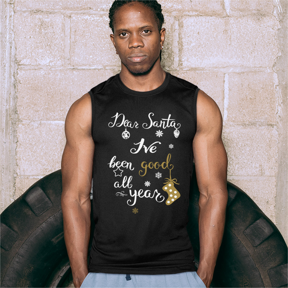 DEAR SANTA I'VE BEEN GOOD ALL YEAR muscle shirt funny christmas xmas men's black
