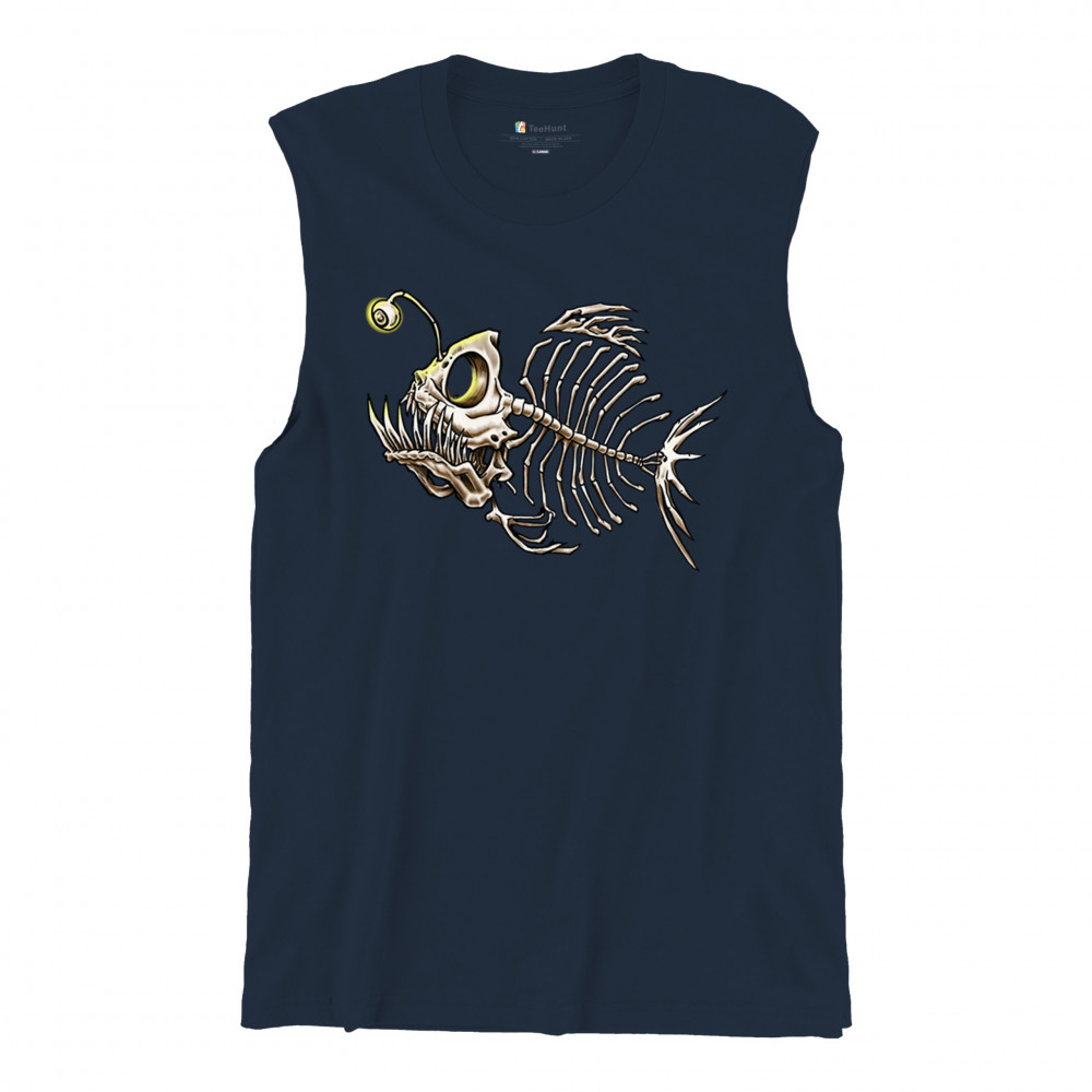 This highly detailed angler fish skeleton design features sharp bones, glowing lure eye, and deep sea terror aesthetic. Perfect for horror fans, marine biology lovers, and ocean adventurers, it combines underwater predator vibes with bone art flair. A great fit for Halloween, dive clubs, and dark sea aesthetics.