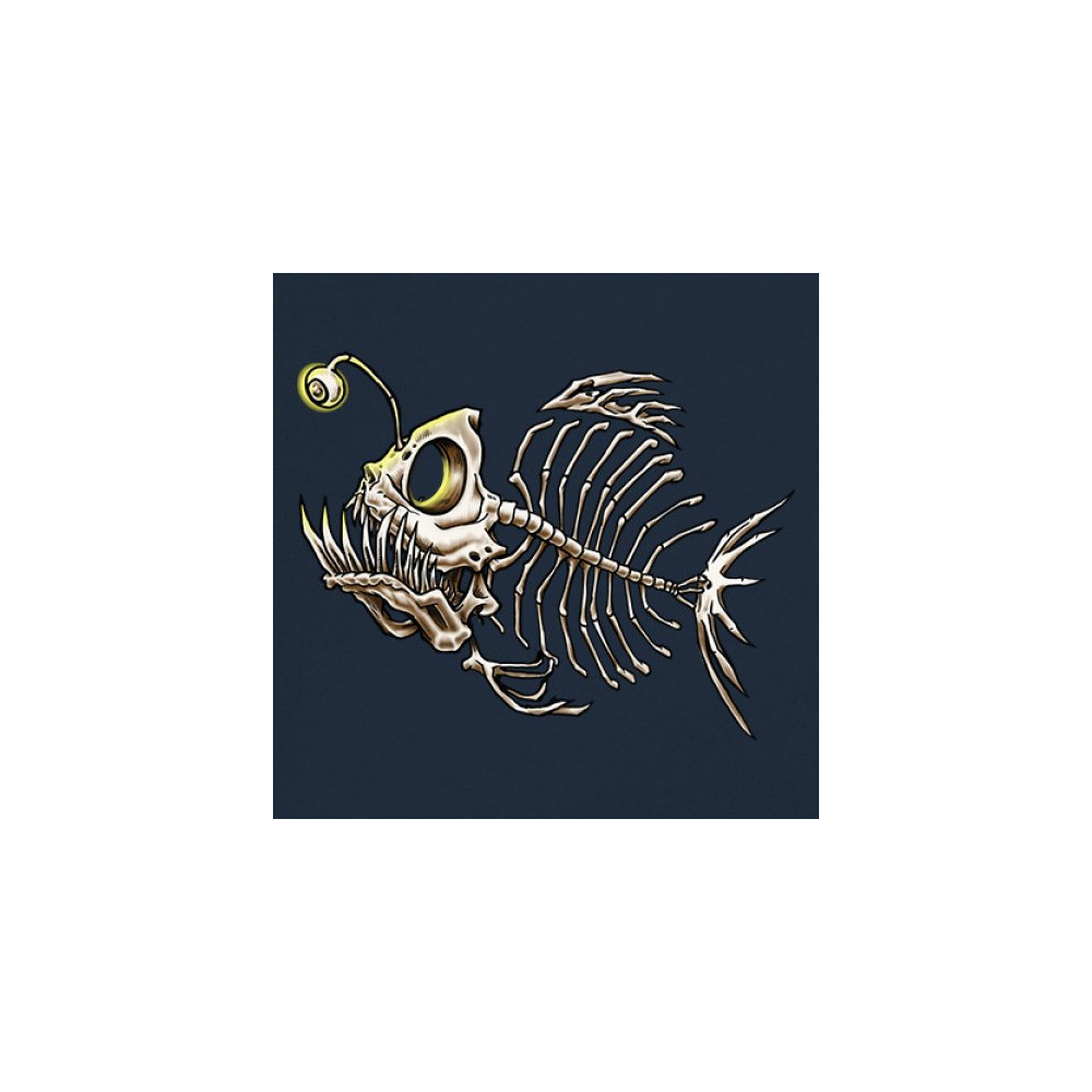 Creepy angler fish skeleton with glowing eye and horror bones. Perfect for sea lovers, divers, Halloween, and marine biology fans.