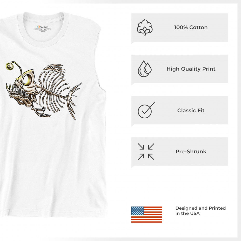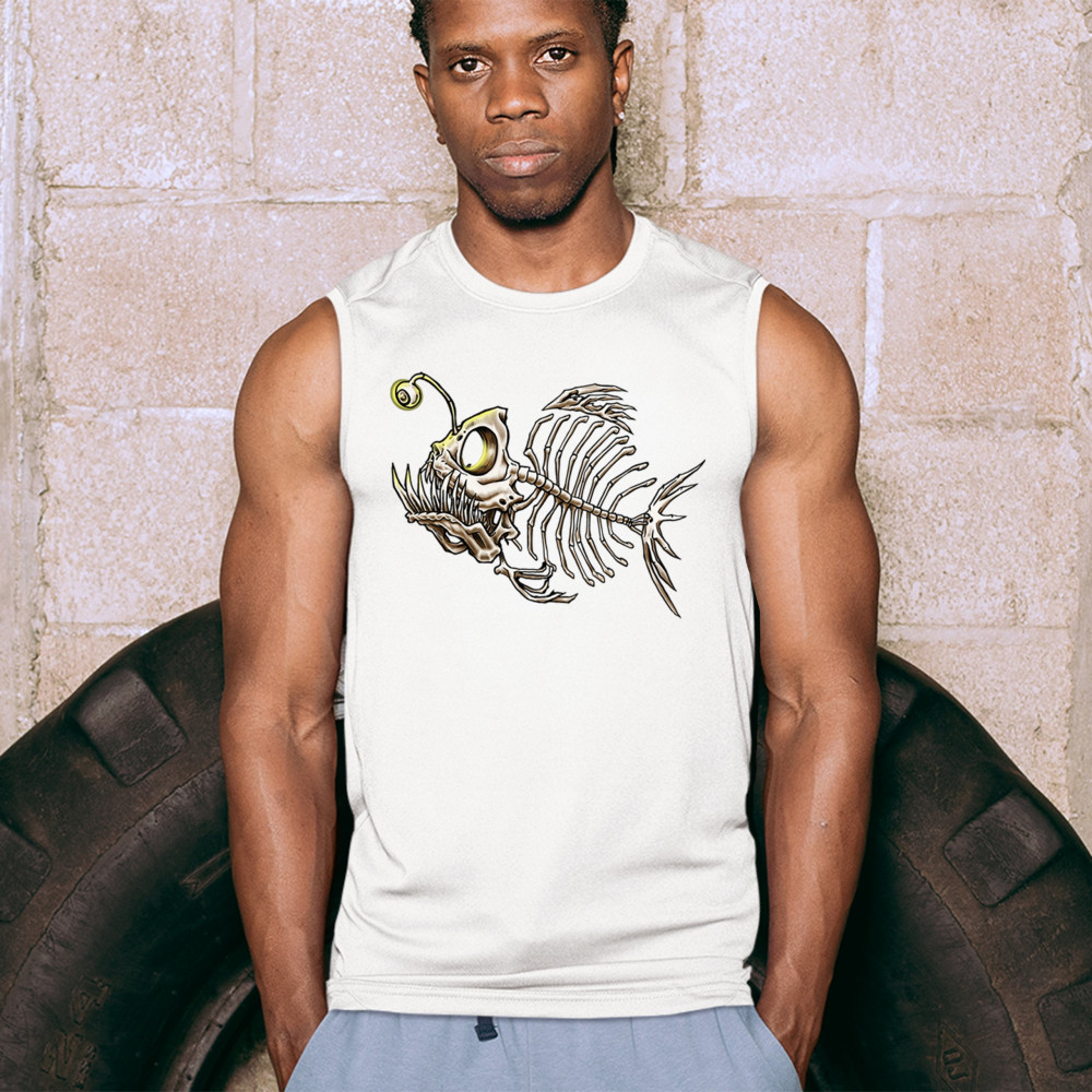 Creepy angler fish skeleton with glowing eye and horror bones. Perfect for sea lovers, divers, Halloween, and marine biology fans.