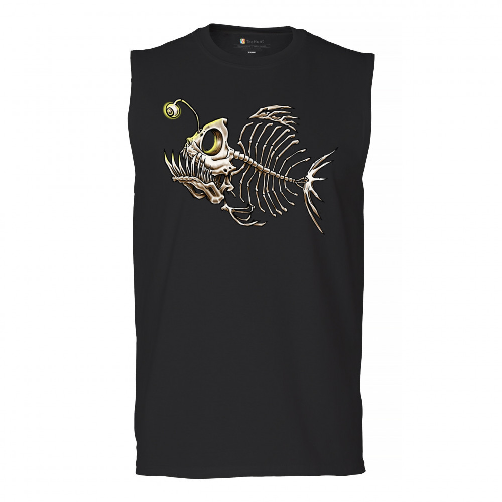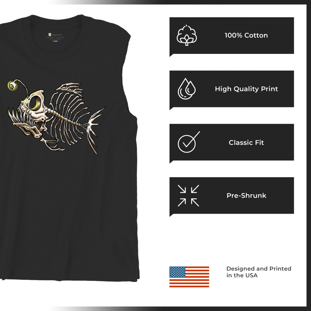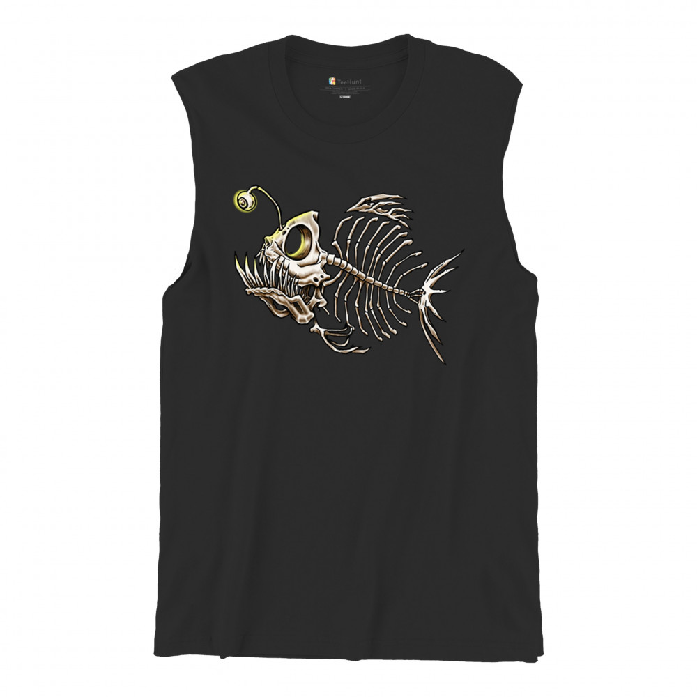 Creepy angler fish skeleton with glowing eye and horror bones. Perfect for sea lovers, divers, Halloween, and marine biology fans.