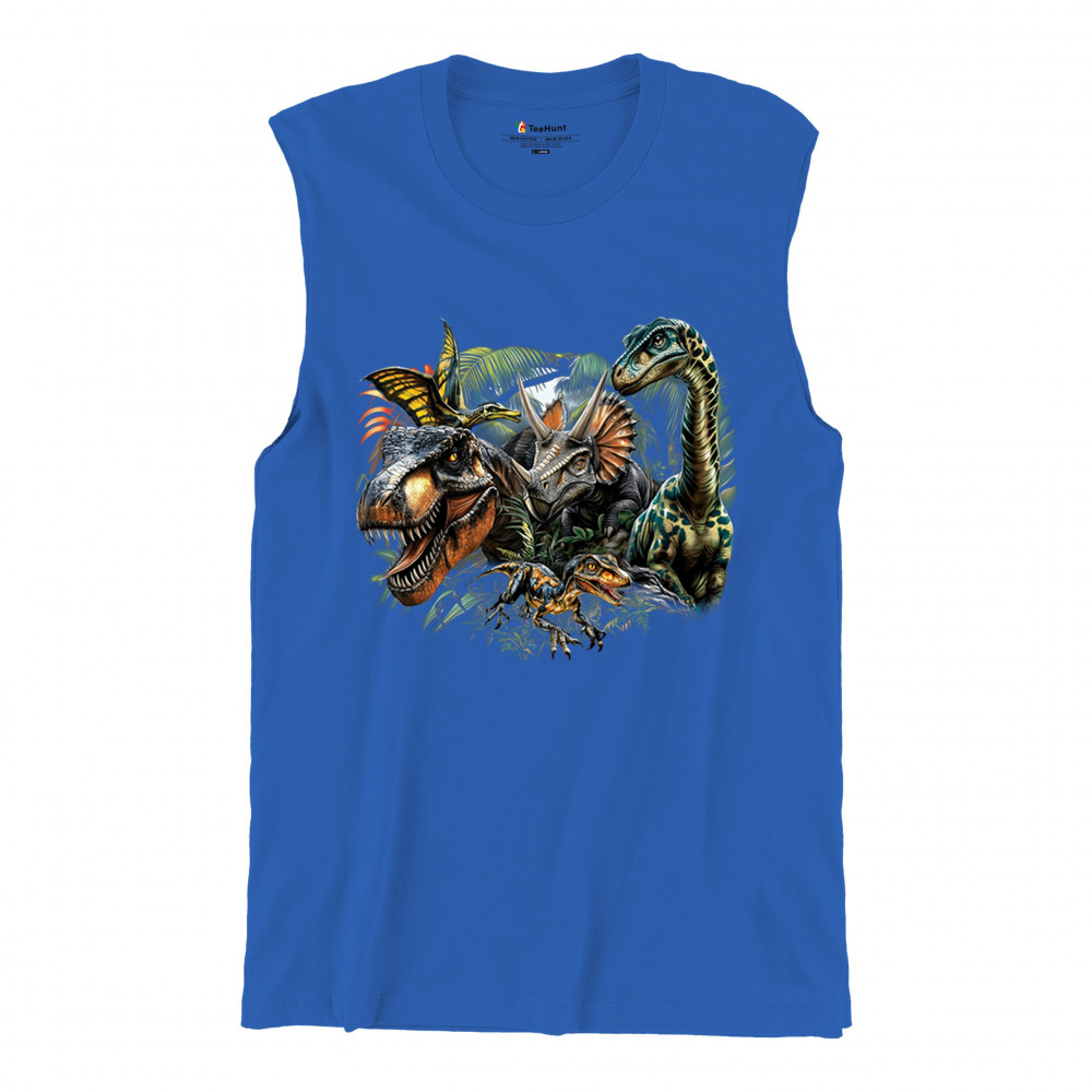 Get prehistoric with this electrifying design featuring a full dino squad in vibrant jungle detail. Includes t rex, triceratops, raptor, brachiosaurus, and pteranodon, all surrounded by tropical foliage. A perfect pick for dinosaur fans, fossil hunters, Jurassic birthday parties, or anyone who loves bold, wild, nature-themed art.